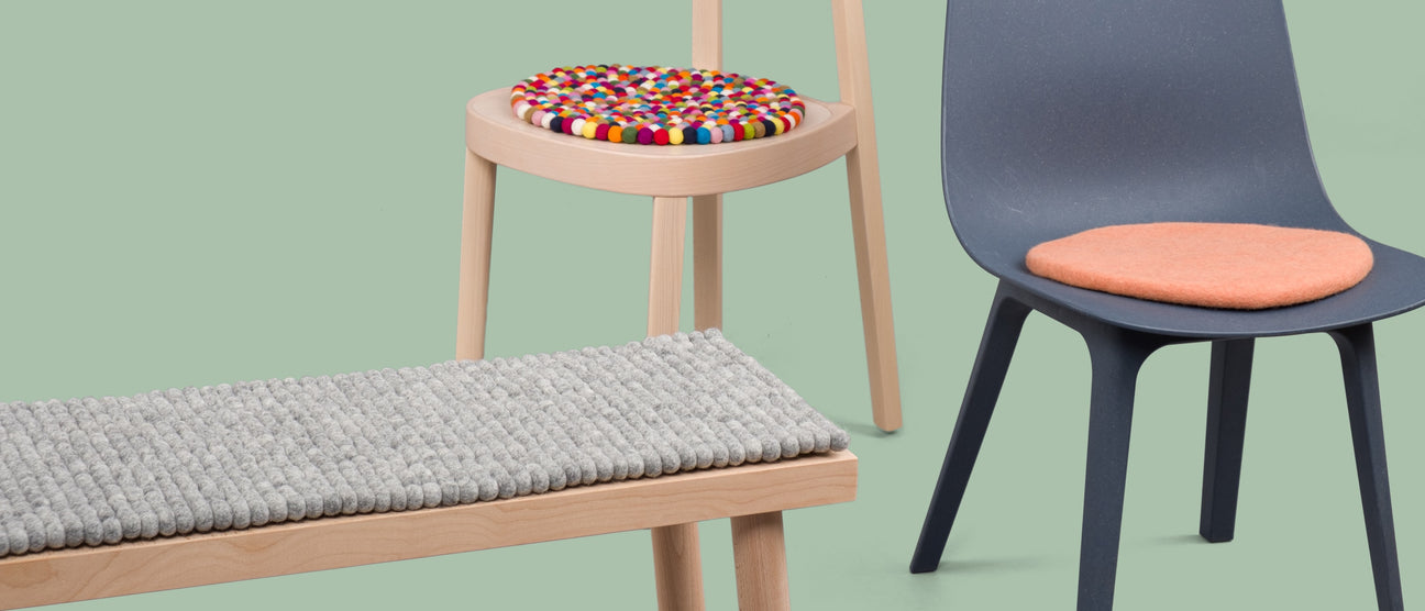 Con las cómodas fundas para asientos de myfelt, las sillas y los asientos se pueden mejorar de forma sostenible. Tanto planas como con un atractivo diseño de bolas de fieltro, son un complemento práctico para las clásicas sillas de oficina. Como ocurre con todos los demás productos myfelt, el diseño y la mano de obra cumplen con los más altos estándares. Con los suaves cojines del asiento se pueden embellecer de forma práctica grupos de sillas en el estudio o en una pequeña sala de reuniones. Además de las dimensiones estándar, las fundas de los asientos de bolas de fieltro también se pueden adaptar al tamaño que desee.