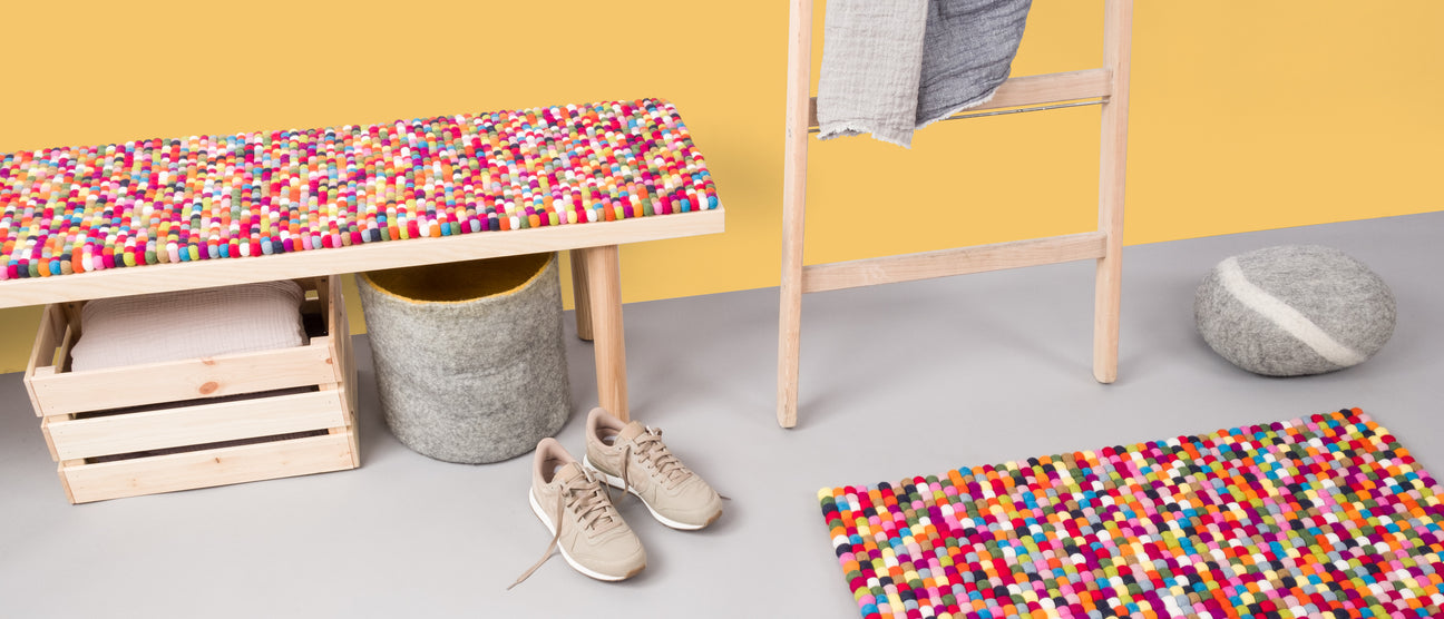 Los cojines de fieltro para asientos y bancos myfelt enriquecen el pasillo con su tacto suave y su especial comodidad. Los asientos en el pasillo realzan visualmente los atractivos cojines de fieltro. Disponibles en muchos colores y tamaños diferentes, los cojines de fieltro para asiento y banco se pueden combinar con estilo. Ya sea en un color cálido natural o en tonos fuertes para llamar la atención: las almohadillas de fieltro también convencen por su larga durabilidad y su elaboración tradicional. Además de las dimensiones estándar, myfelt también permite cualquier tamaño individual deseado para las fundas de los asientos de bolas de fieltro para una experiencia de asiento que se ajuste perfectamente.