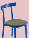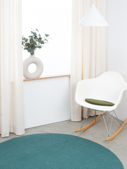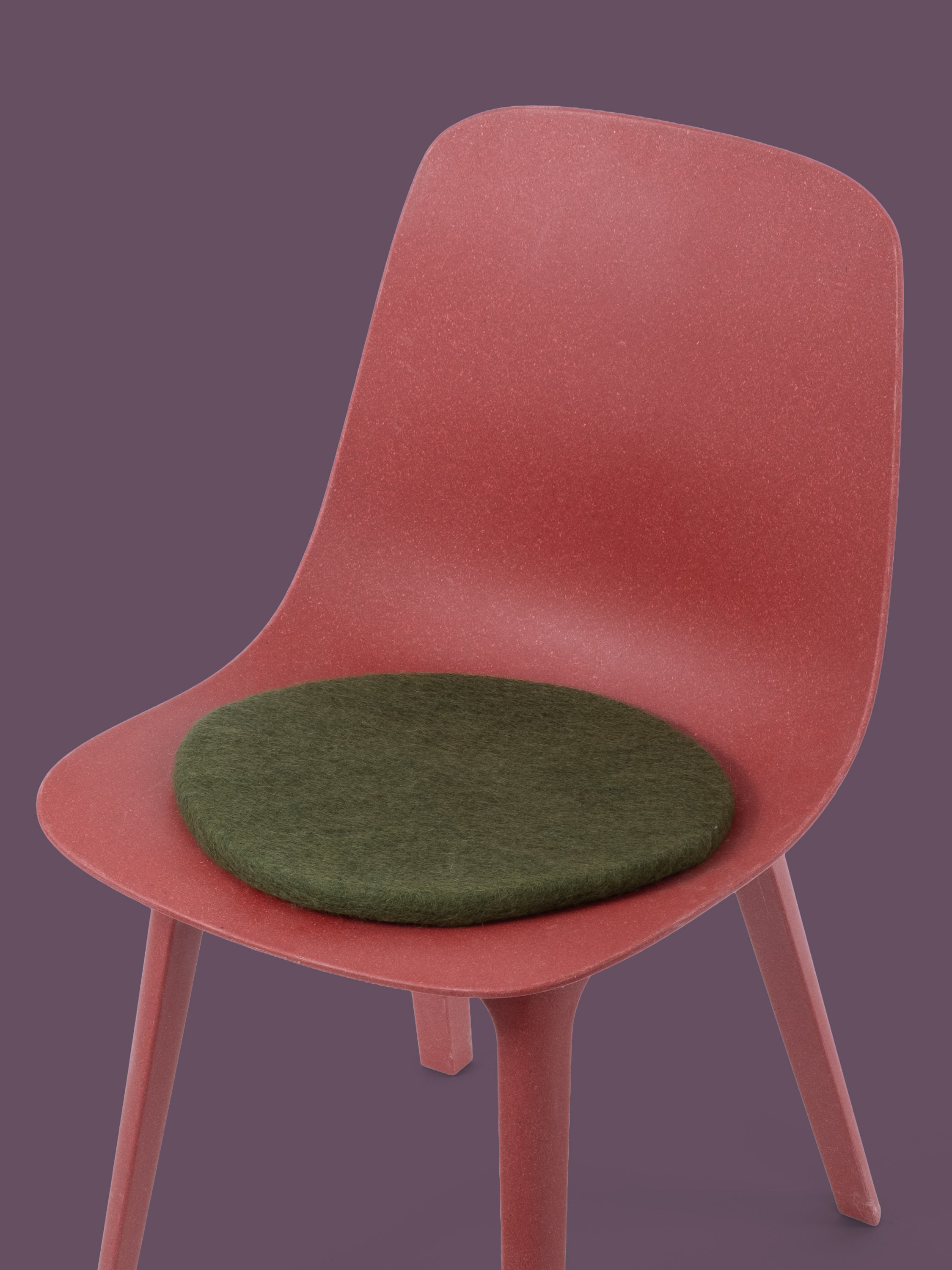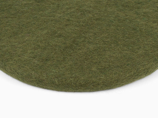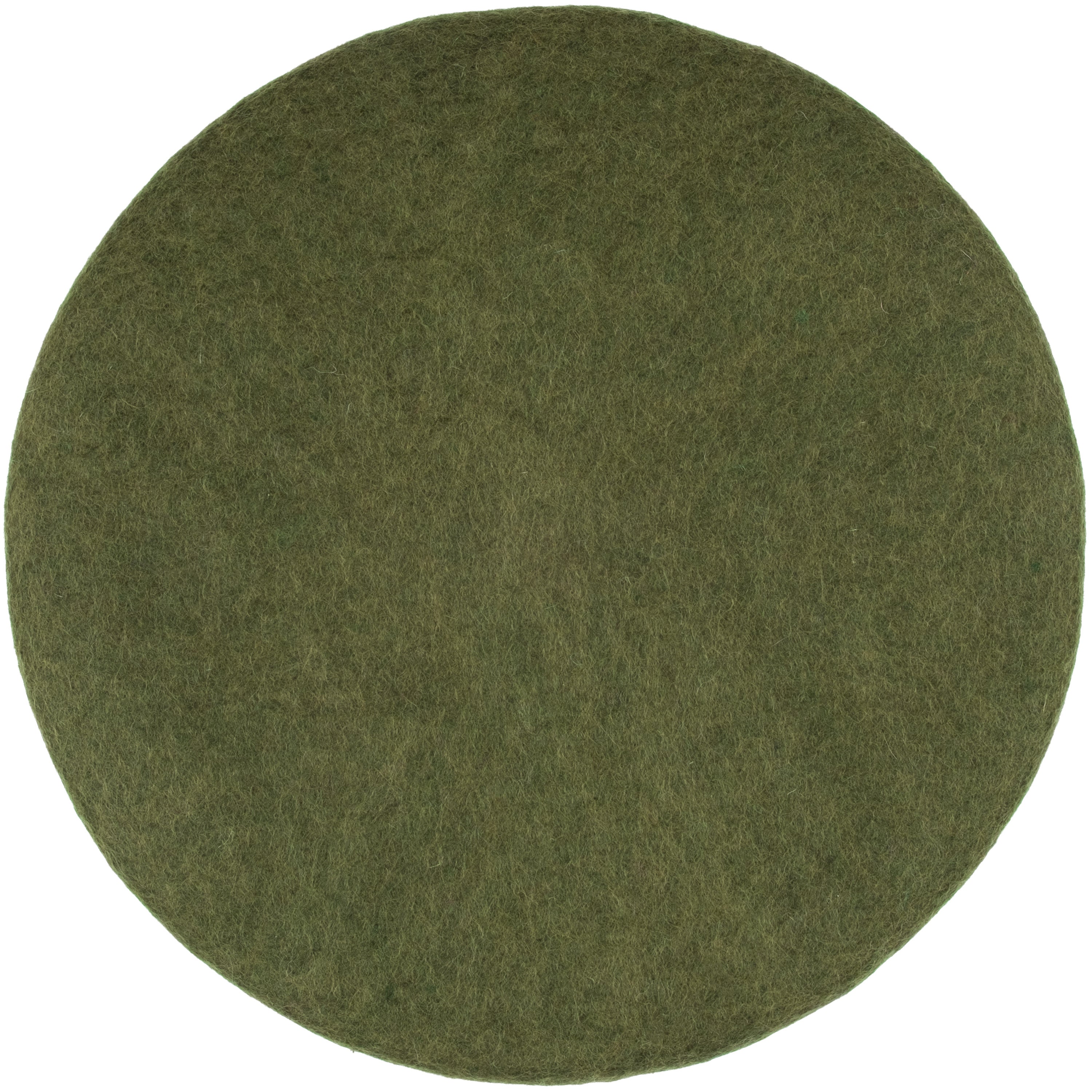 Redondo, cojín de asiento plano verde oscuro de lana virgen pura.