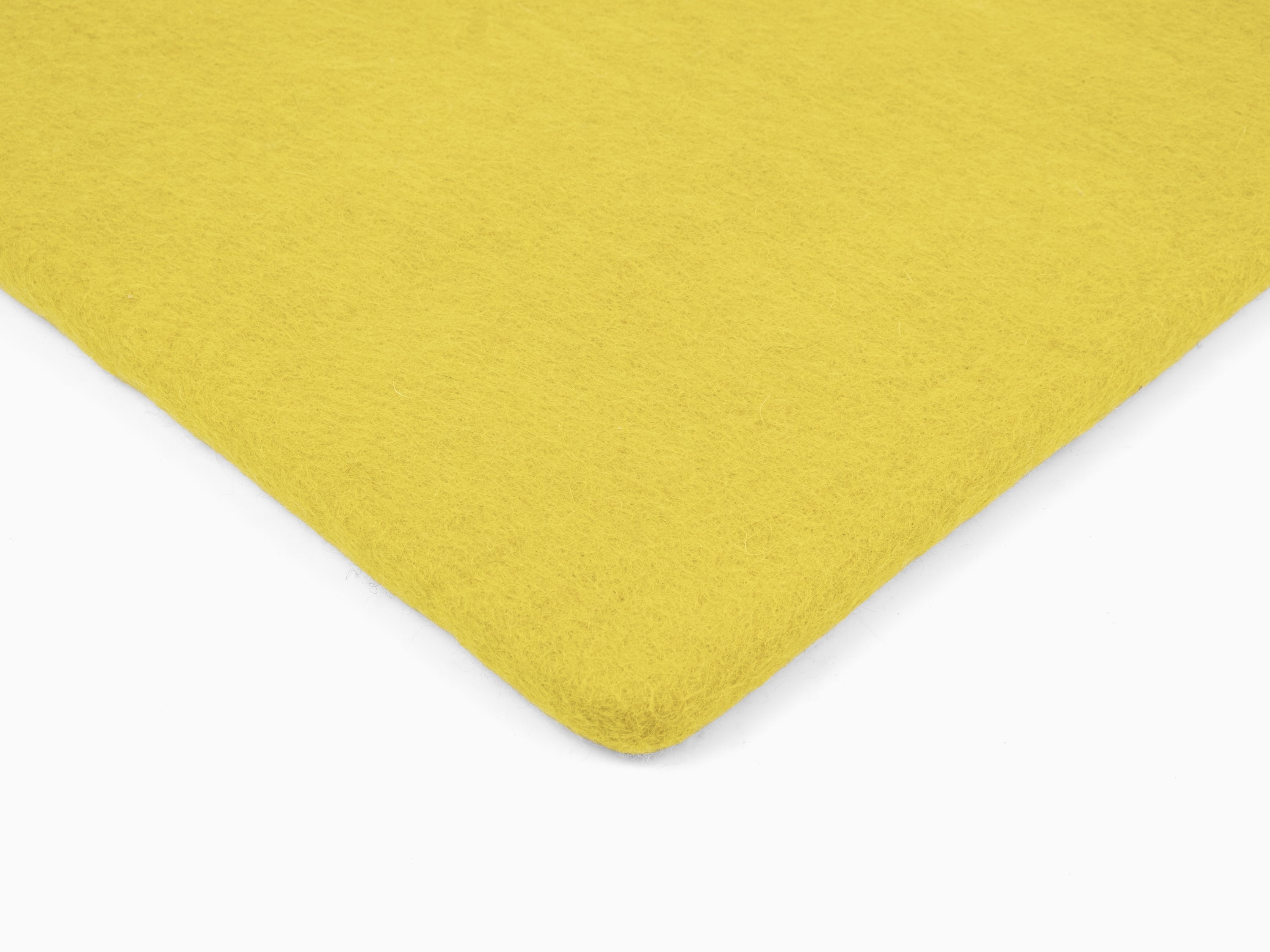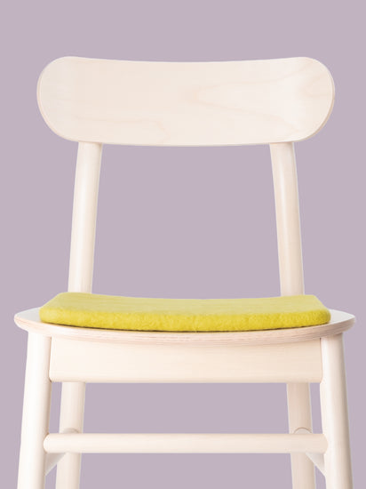 Cuadrado, cojín de asiento plano verde amarillento de lana virgen pura.