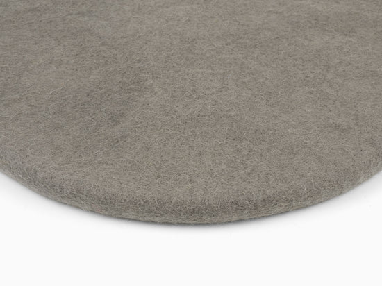 Redondo, cojín de asiento plano gris de lana virgen pura.