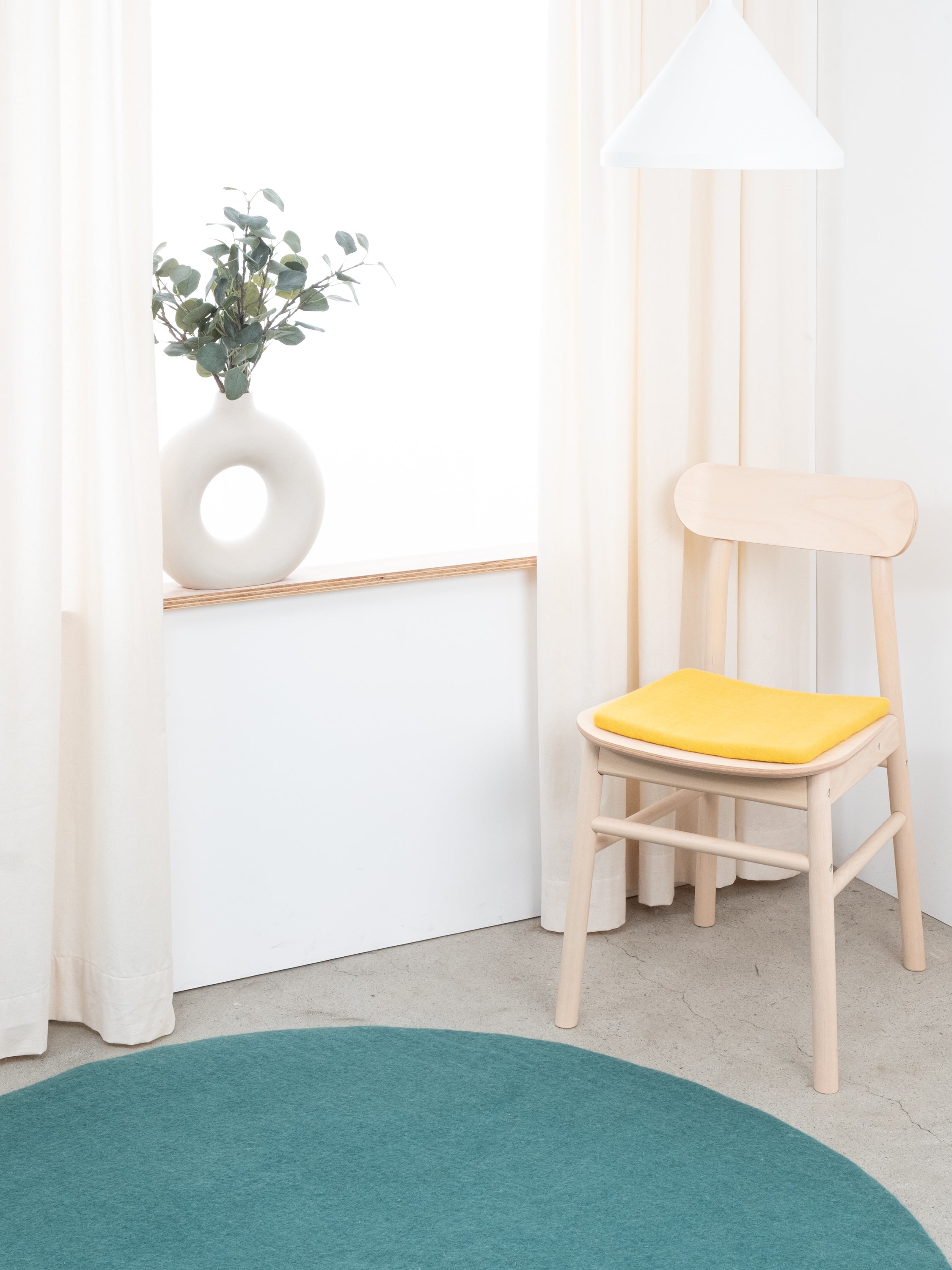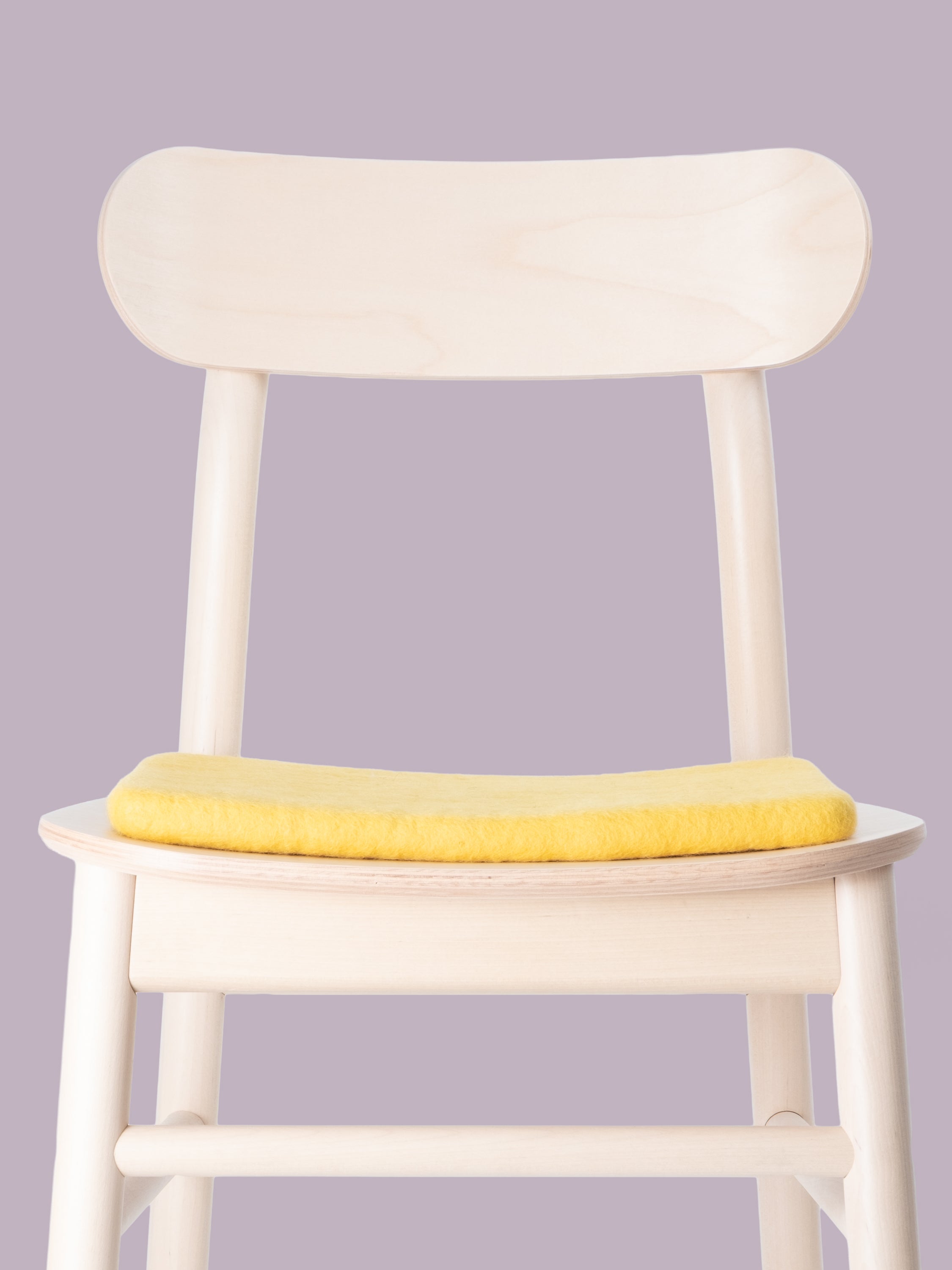 El cojín de asiento plano amarillo Kira aporta calidez y suavidad a tu silla favorita. Fabricado con lana virgen pura, hecho a mano en Nepal y producido en condiciones justas. Los cojines de asiento myfelt son repelentes al agua y la suciedad y se pueden utilizar por ambos lados.