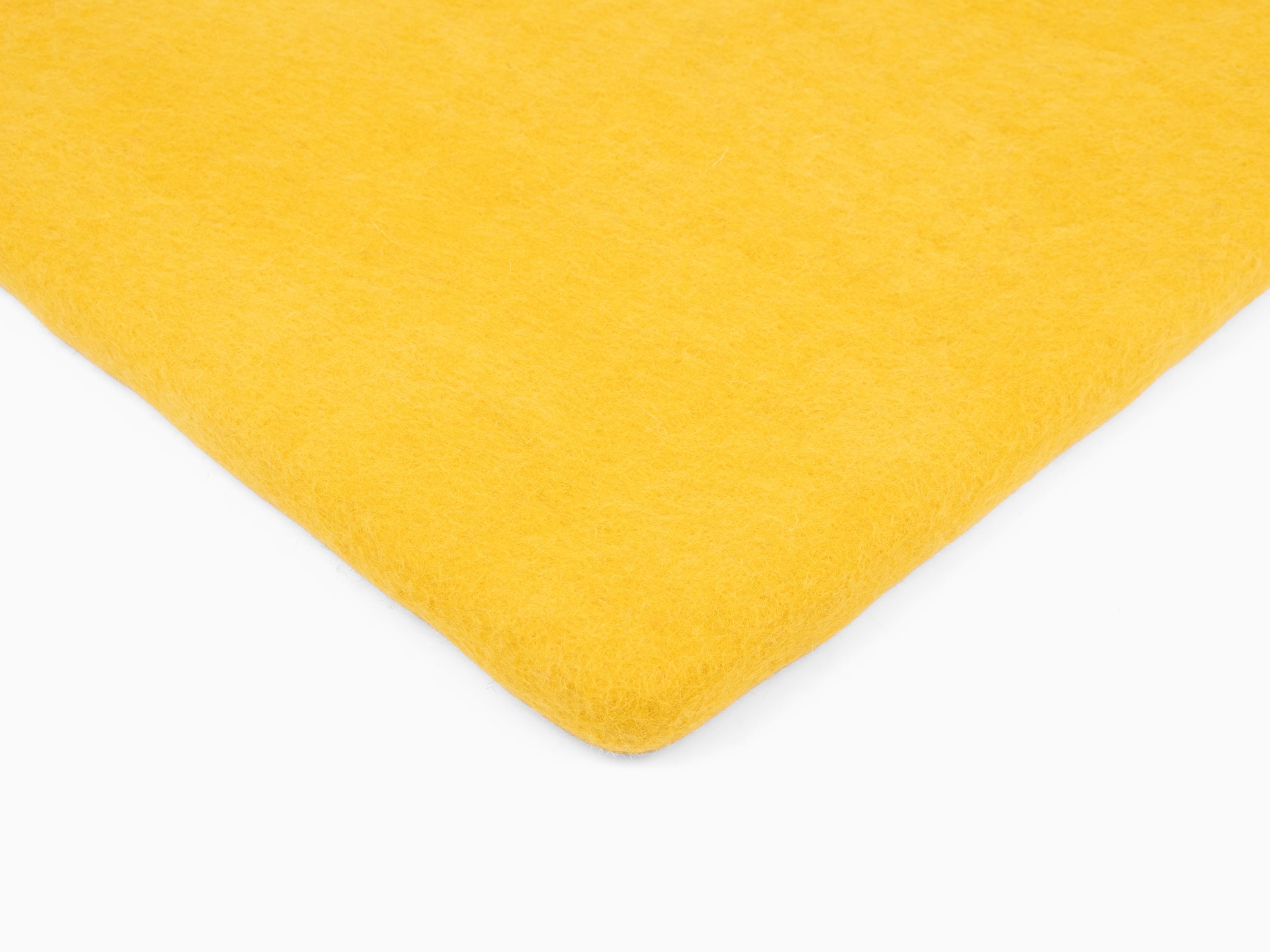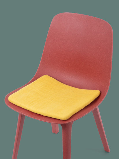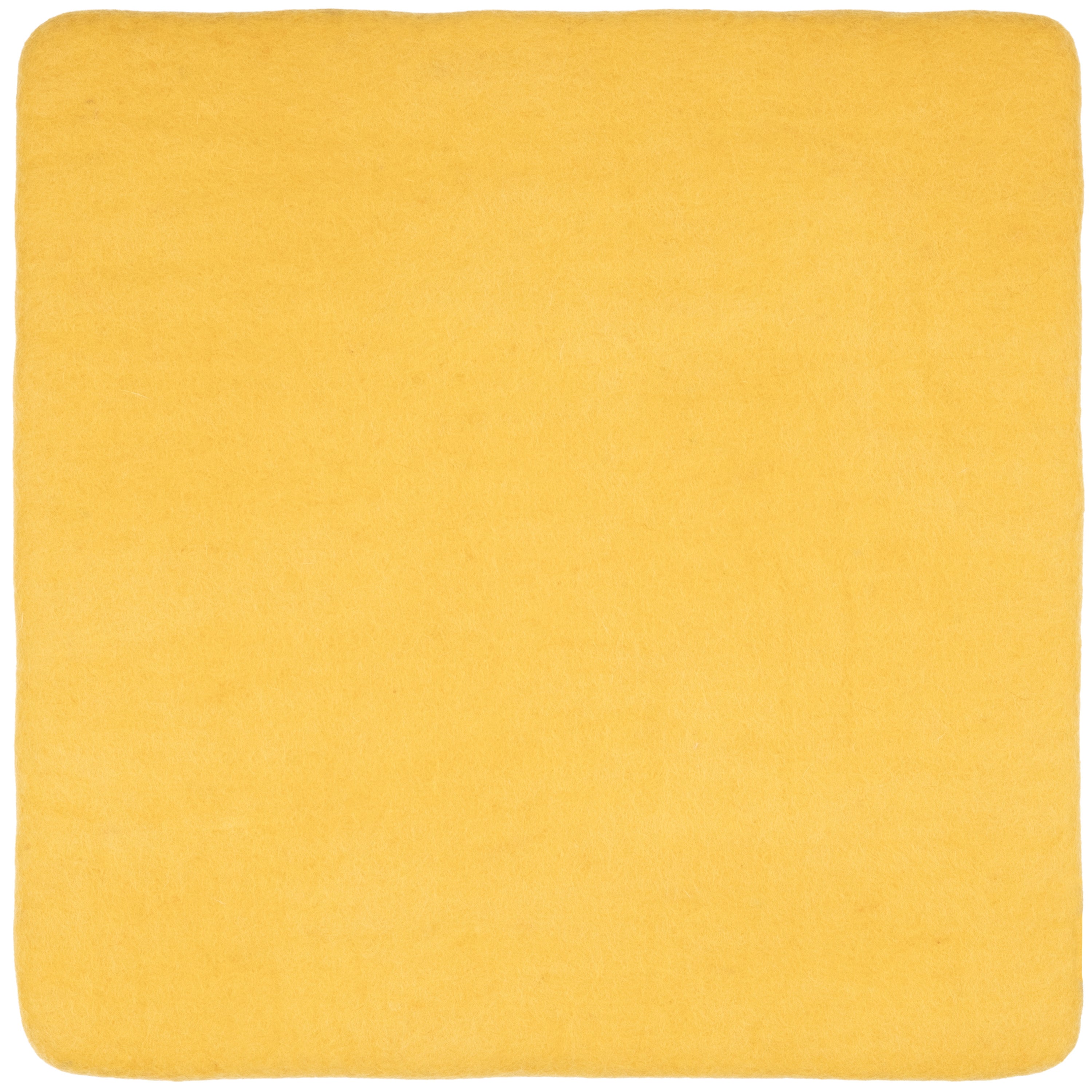 Cuadrado, cojín de asiento plano amarillo de lana virgen pura.