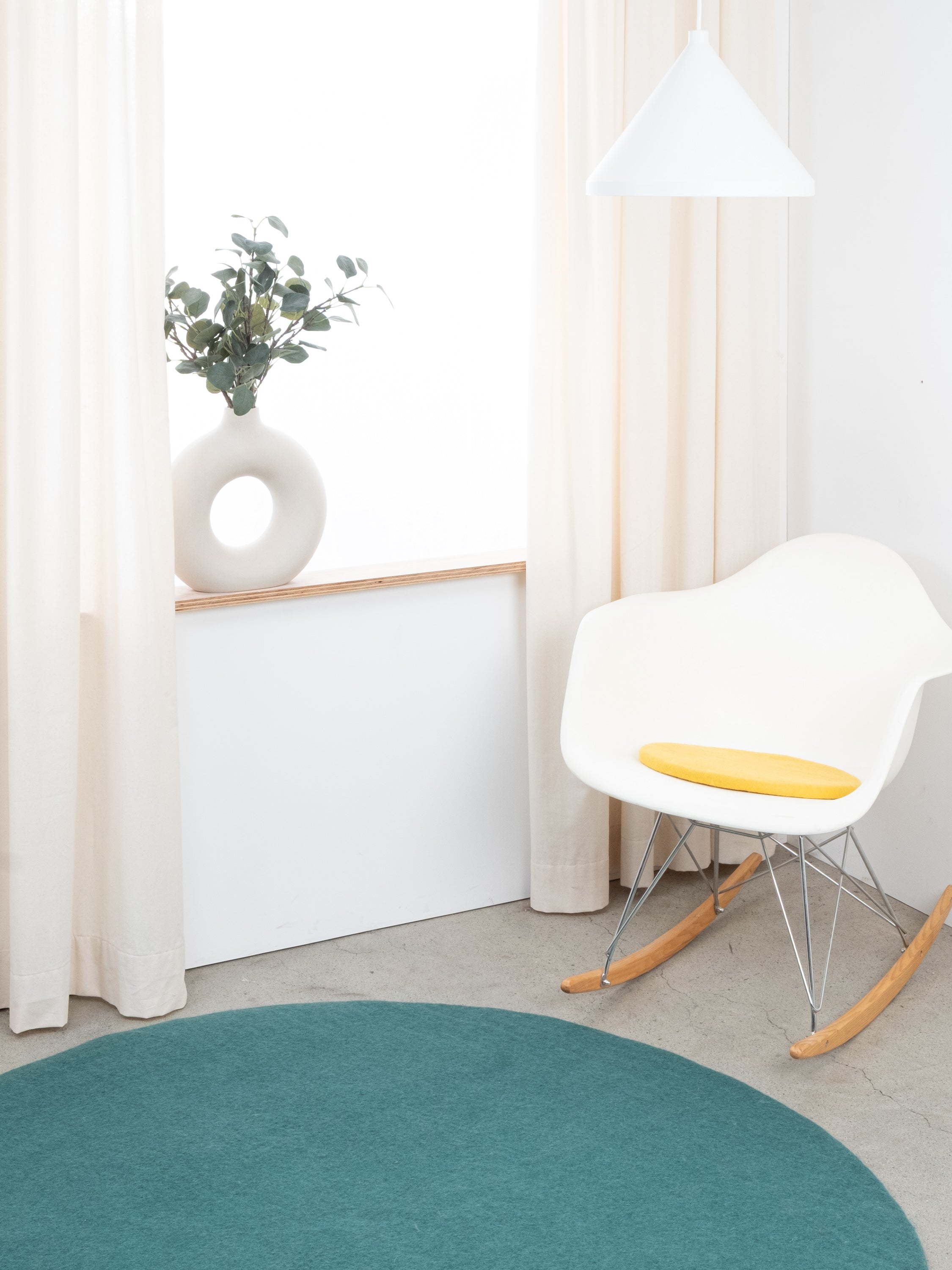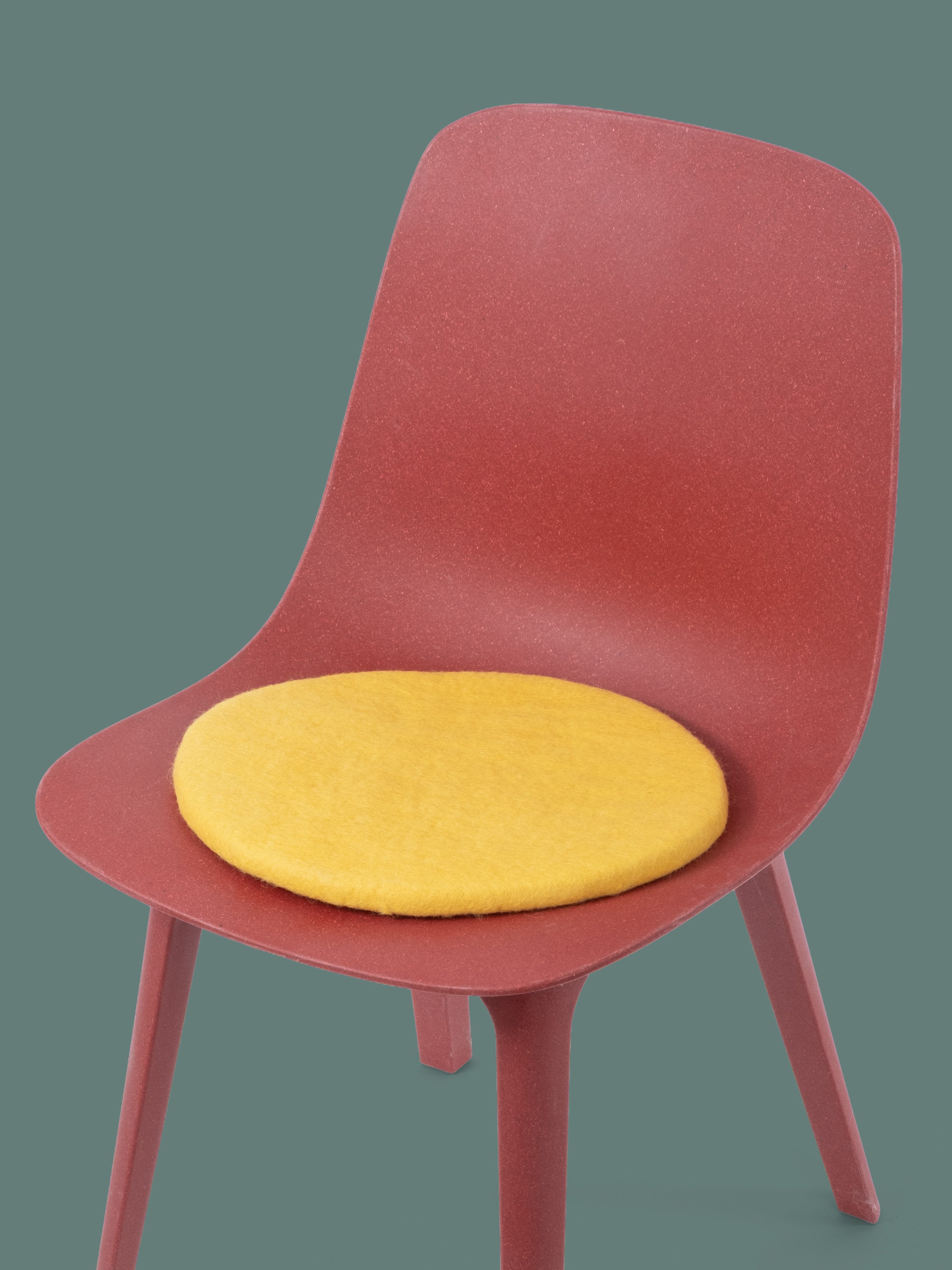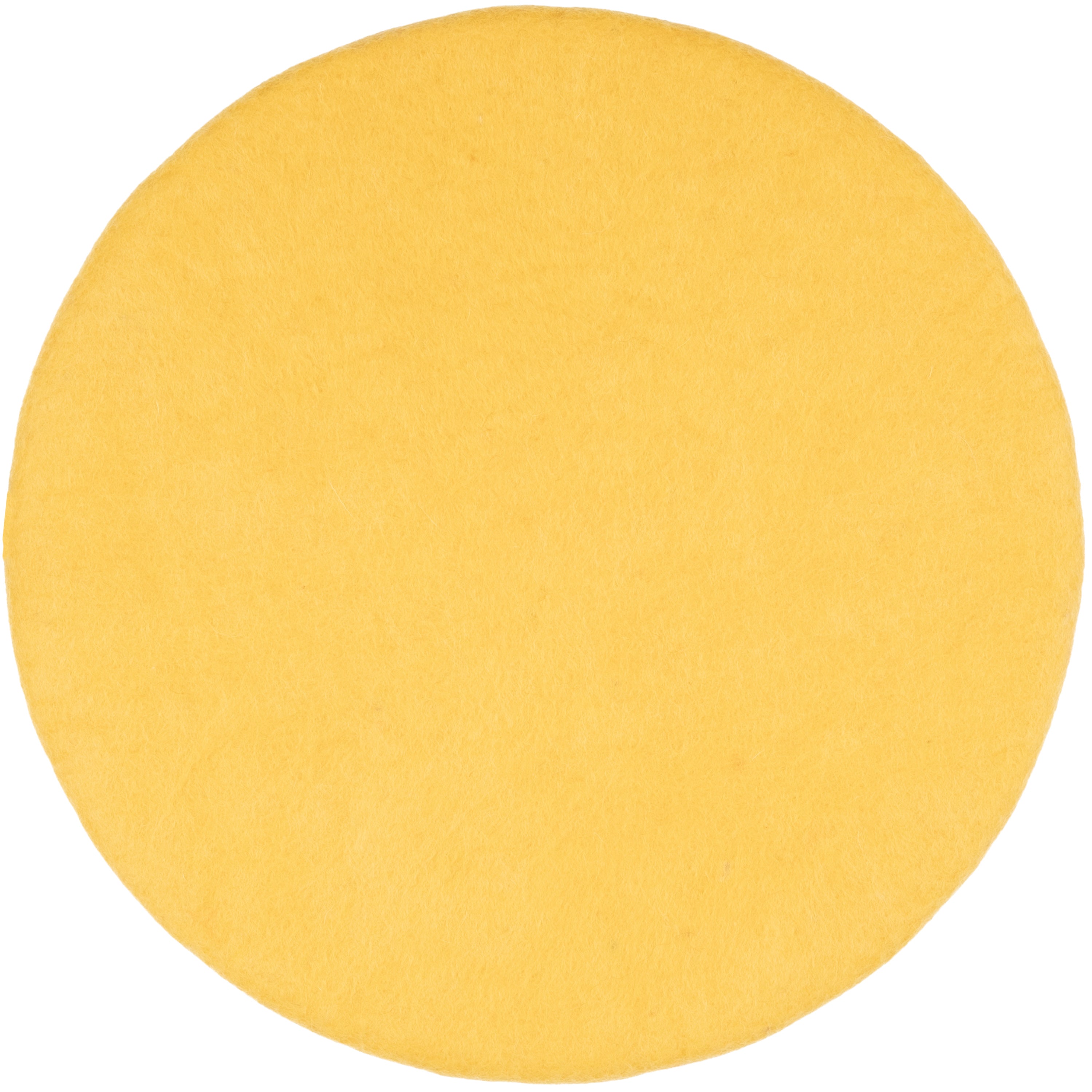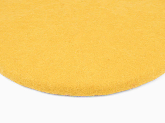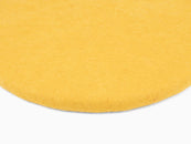 Redondo, cojín de asiento plano amarillo de lana virgen pura.