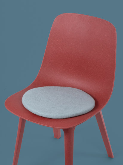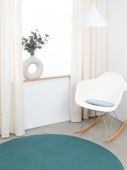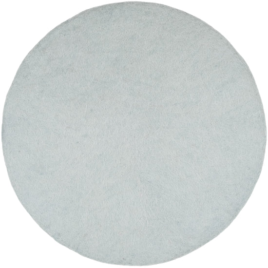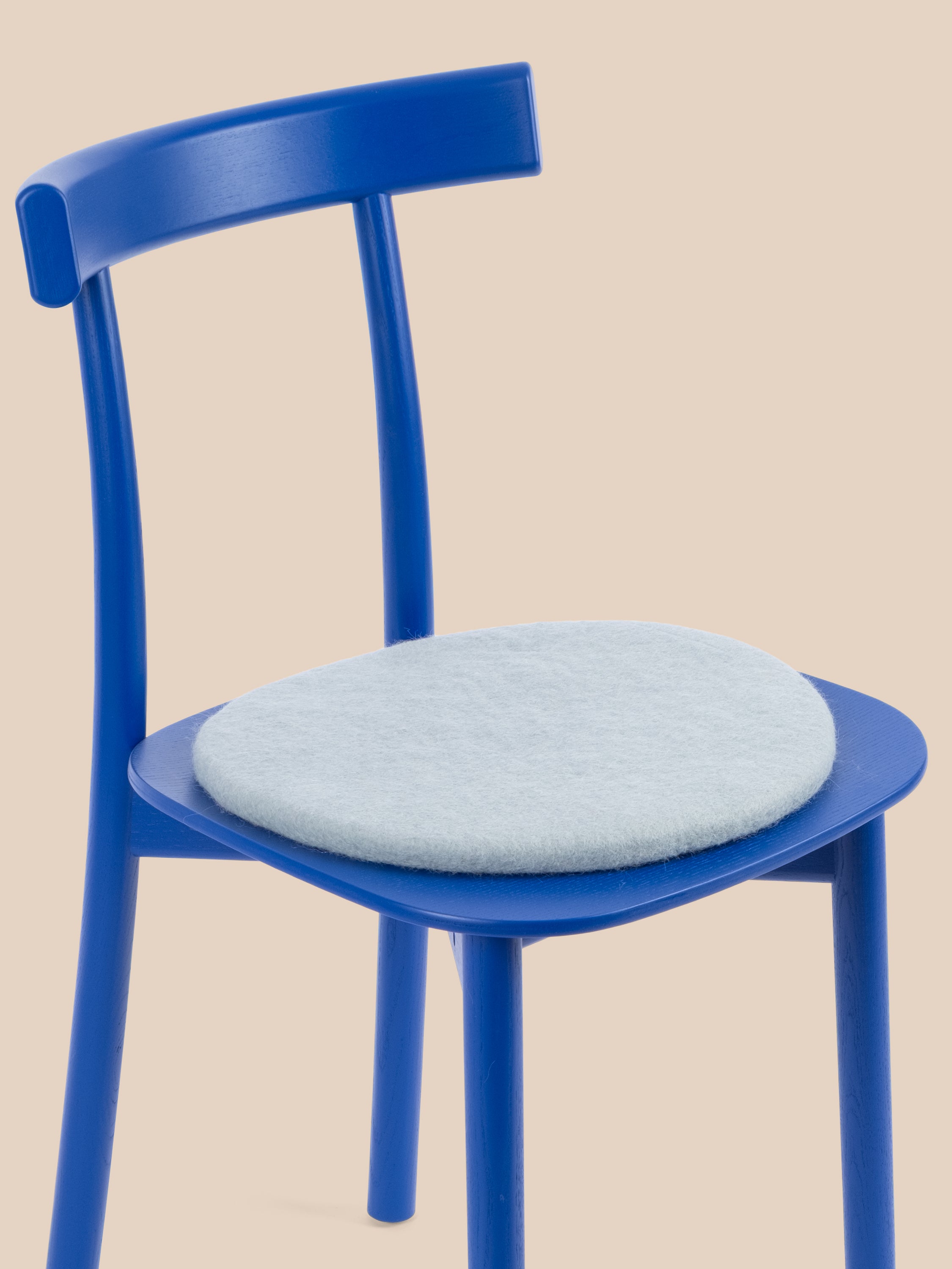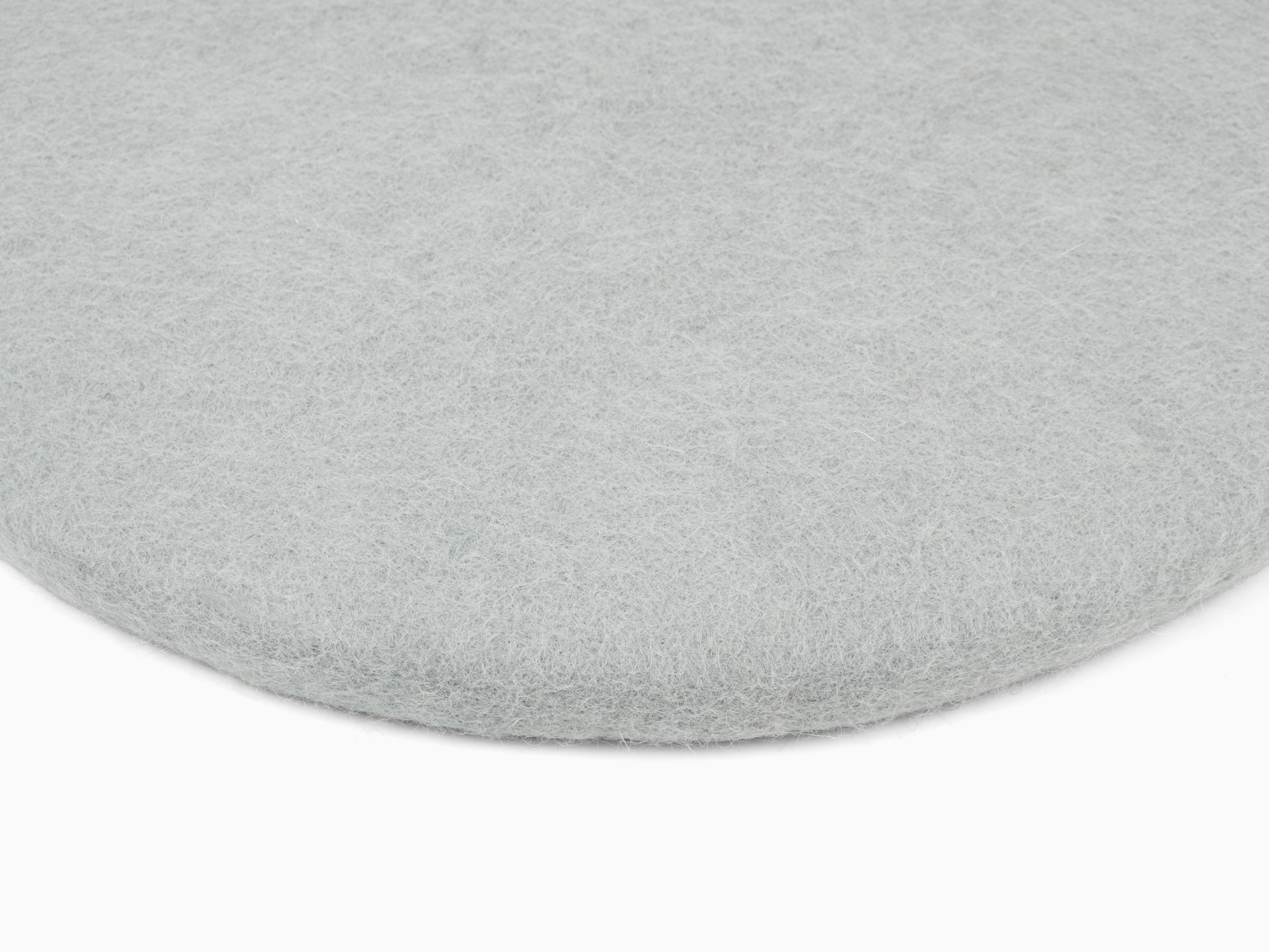 Redondo, cojín de asiento plano azul claro de lana virgen pura.