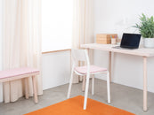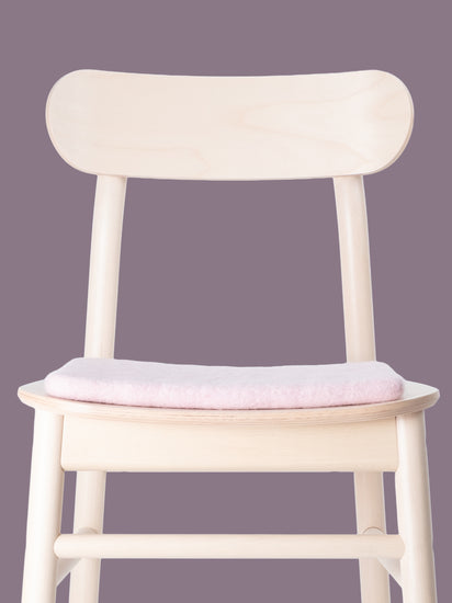 Cuadrado, cojín de asiento plano rosa claro de lana virgen pura.