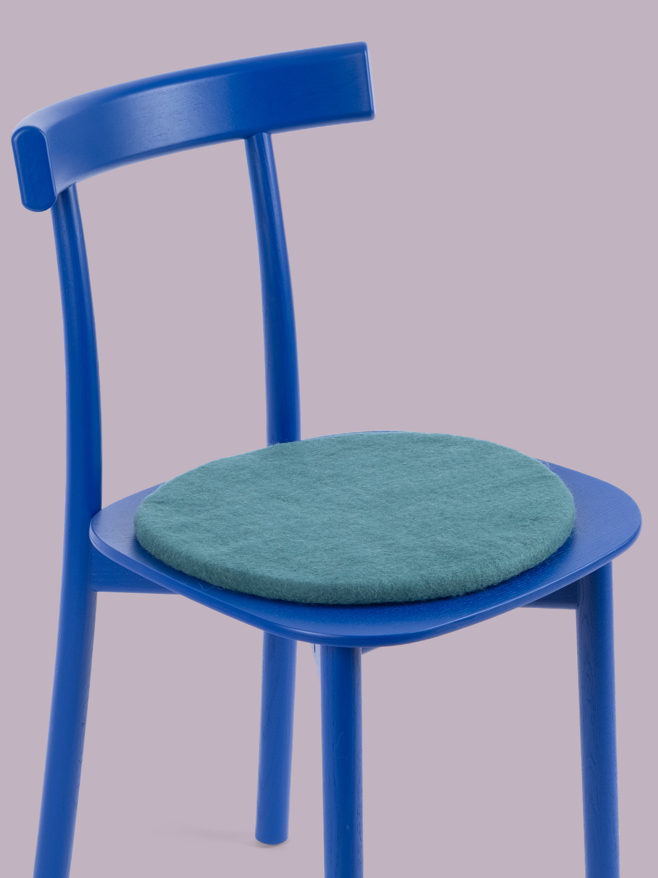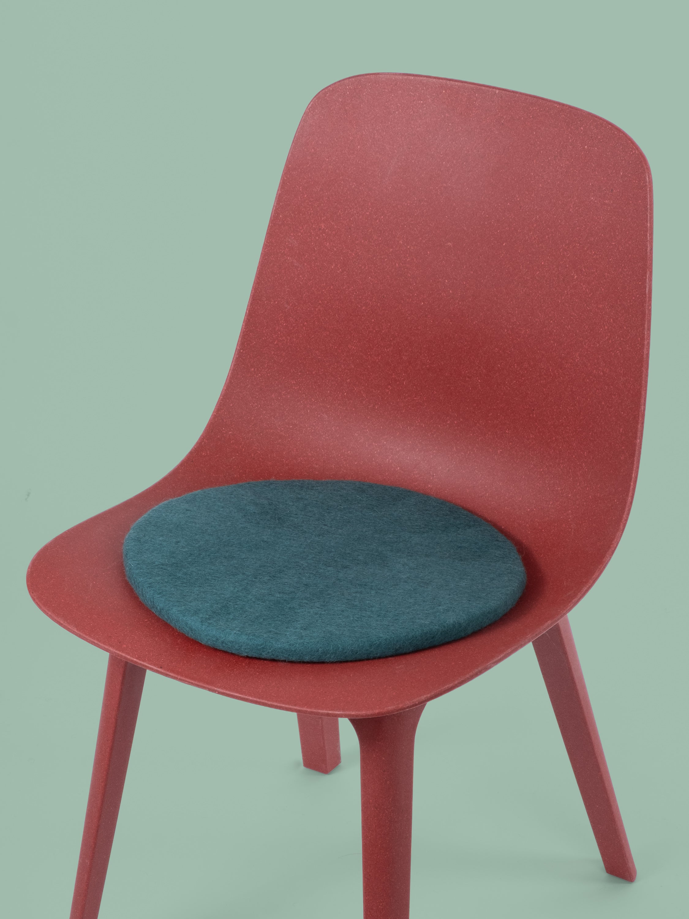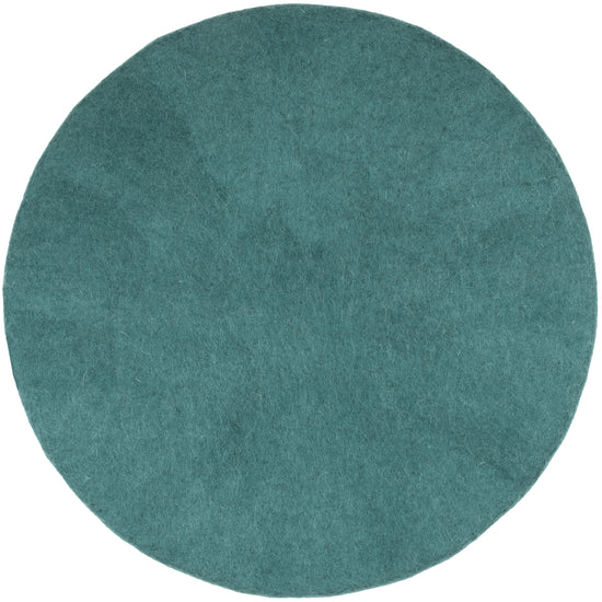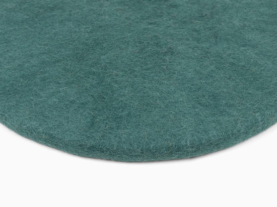 Redondo, cojín de asiento plano azul petróleo de lana virgen pura.