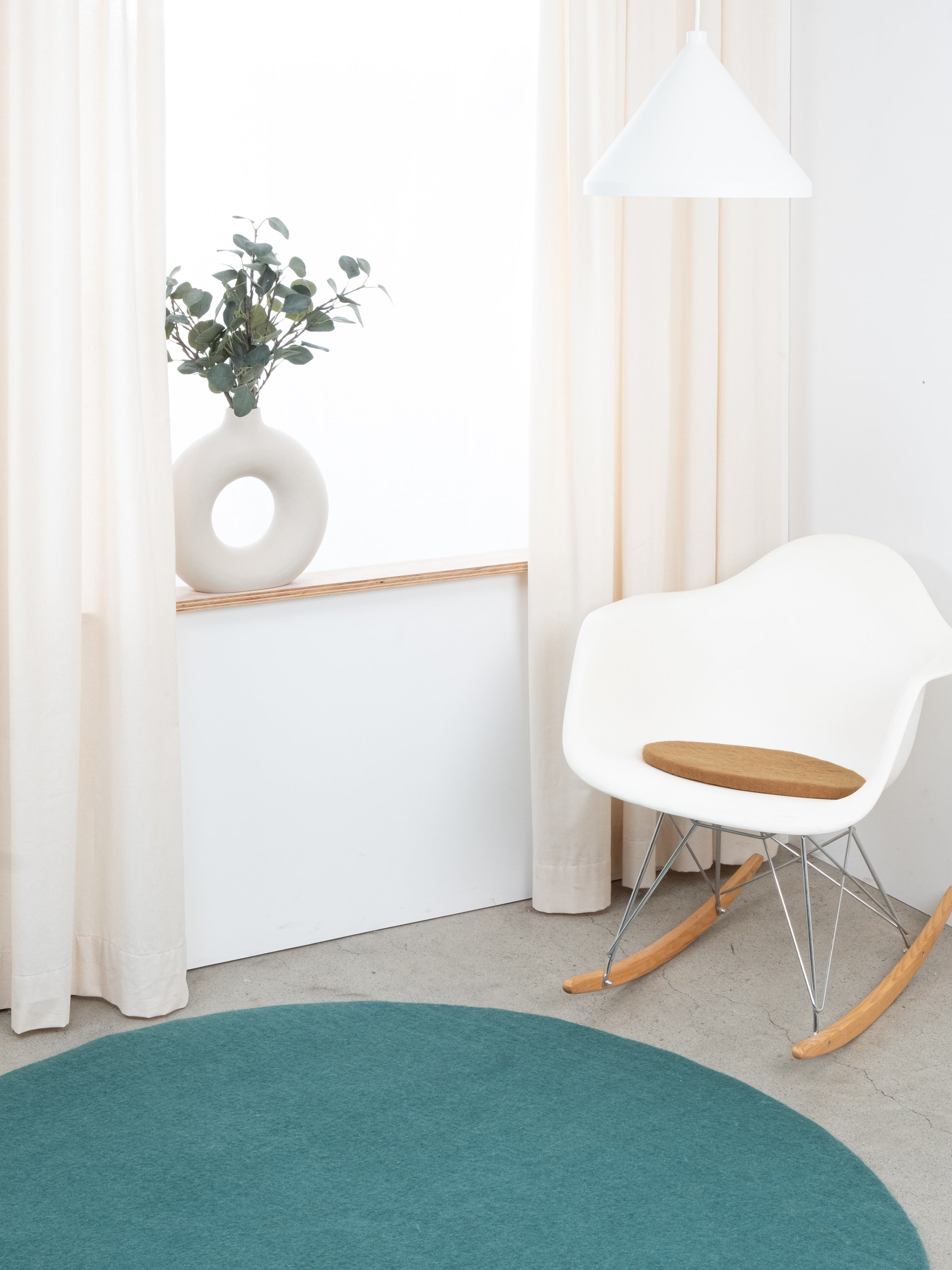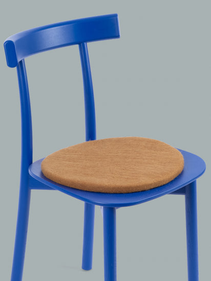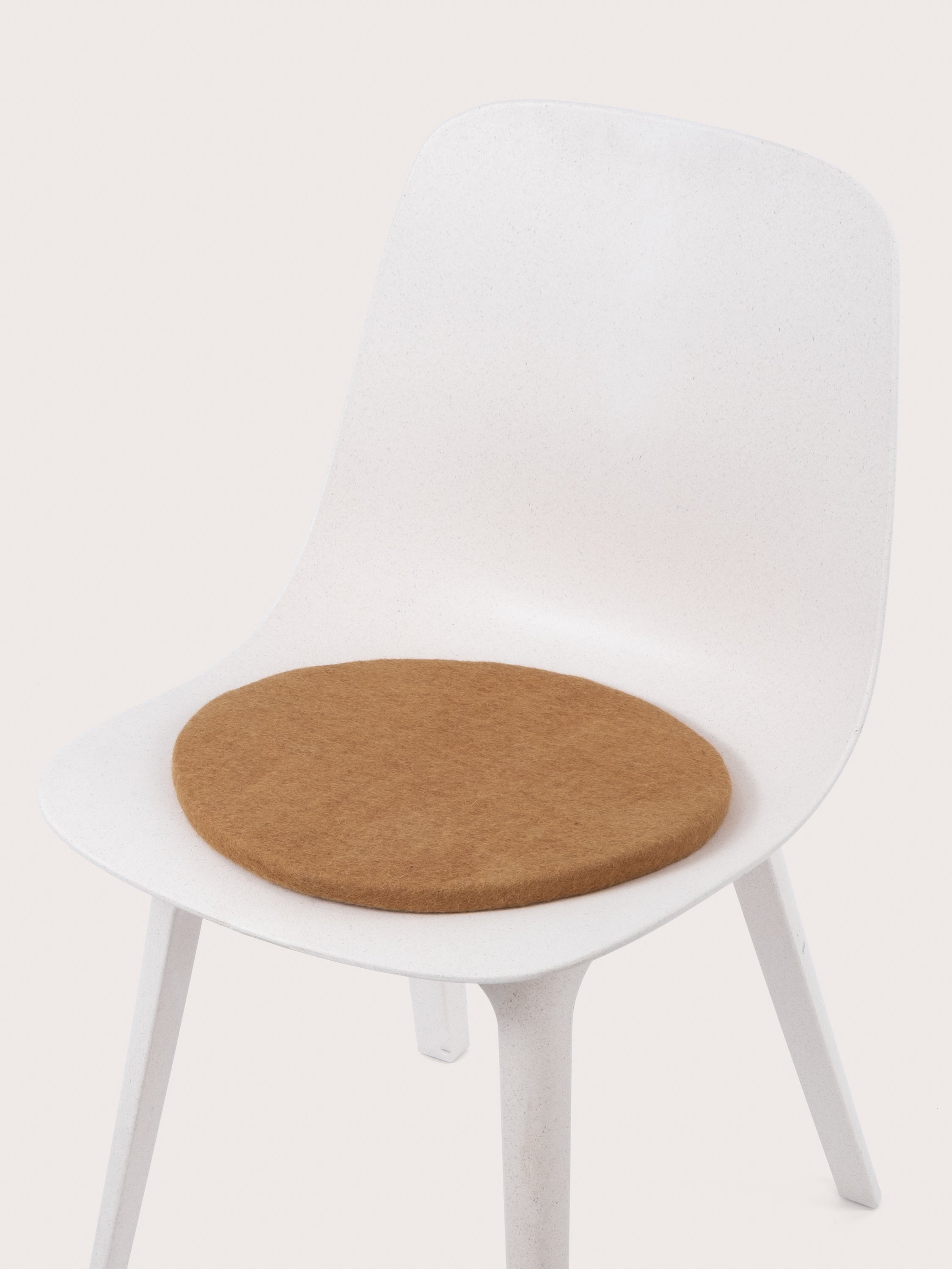 Redondo, cojín de asiento plano color caramelo de lana virgen pura.