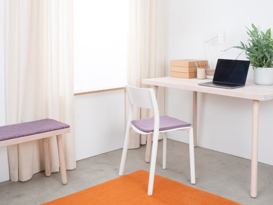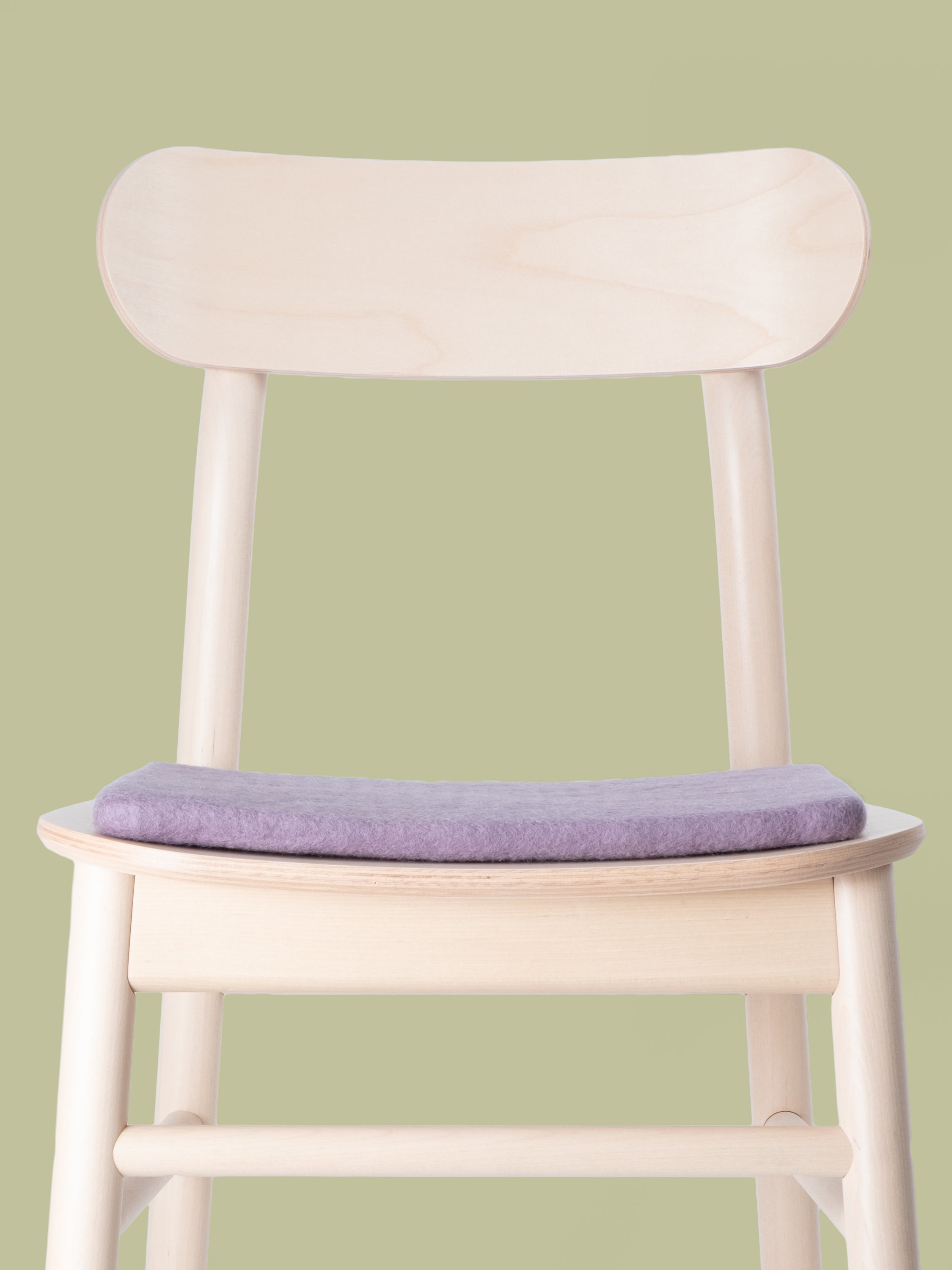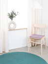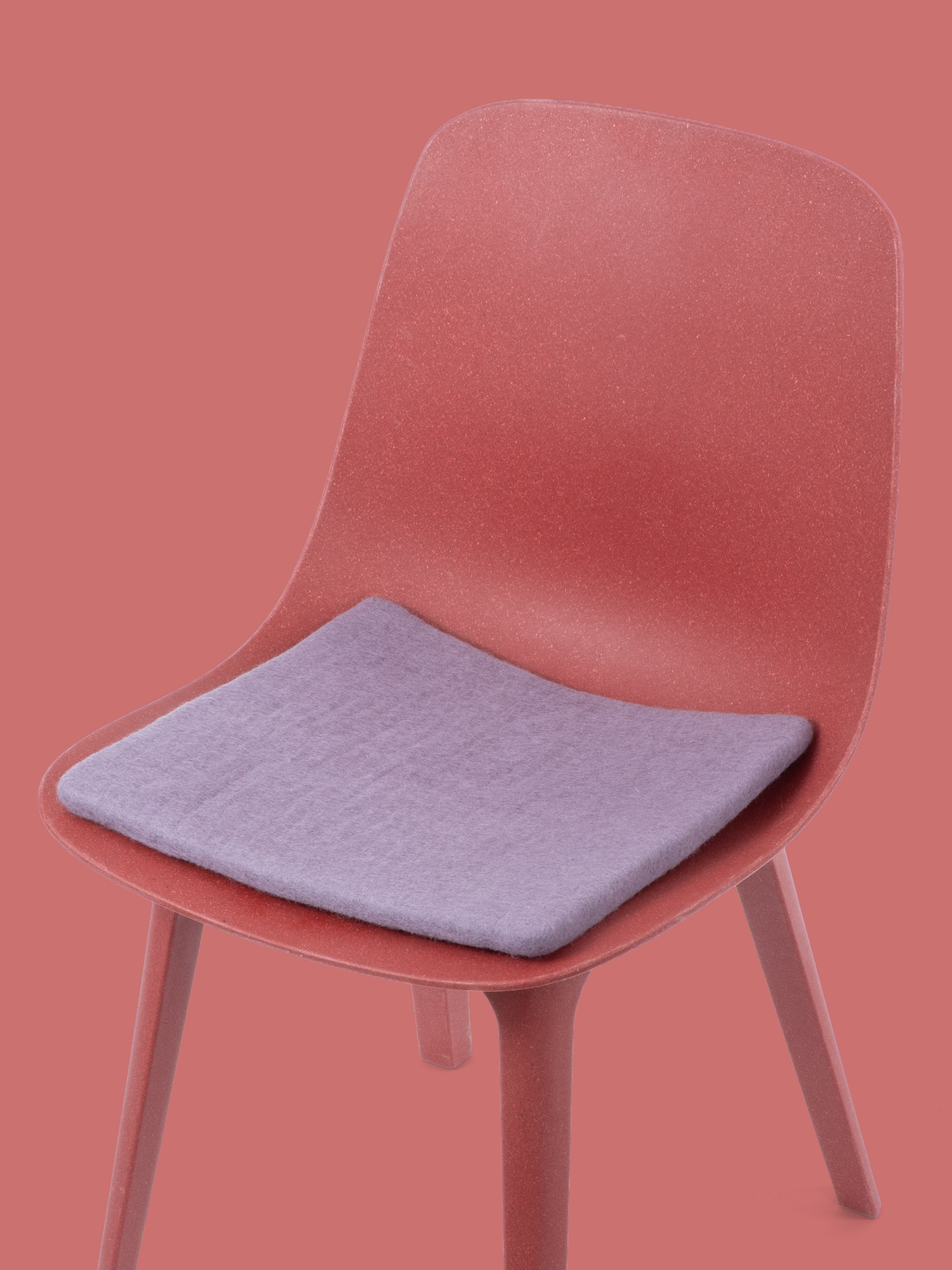 Cuadrado, cojín de asiento plano gris lila de lana virgen pura.
