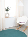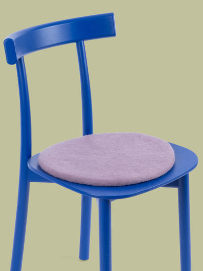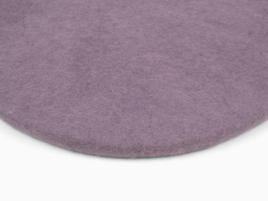 Redondo, cojín de asiento plano gris lila de lana virgen pura.