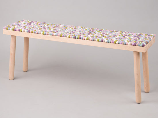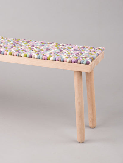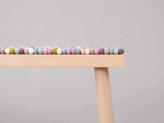 Cojín para banco de bolas de fieltro multicolor fabricado en lana virgen del tamaño deseado.