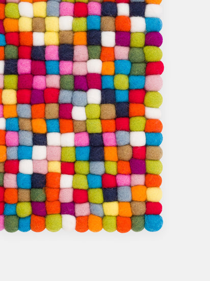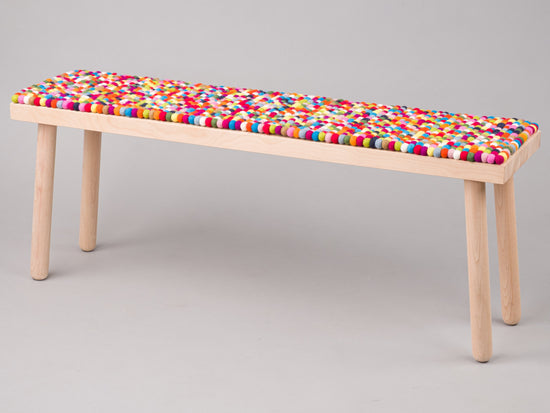 Cojín para banco de bolas de fieltro multicolor fabricado en lana virgen del tamaño deseado.