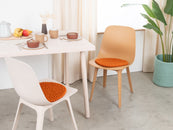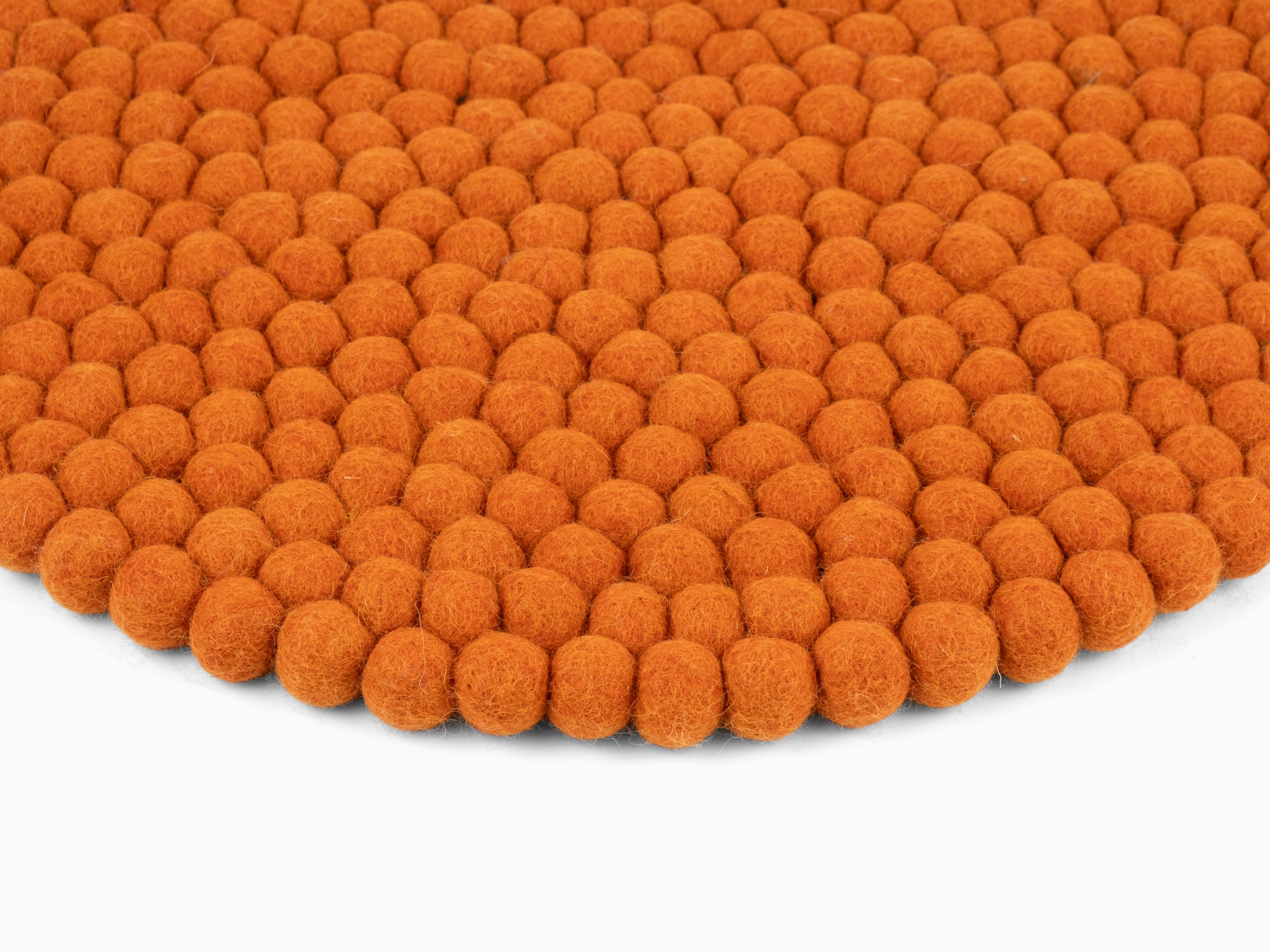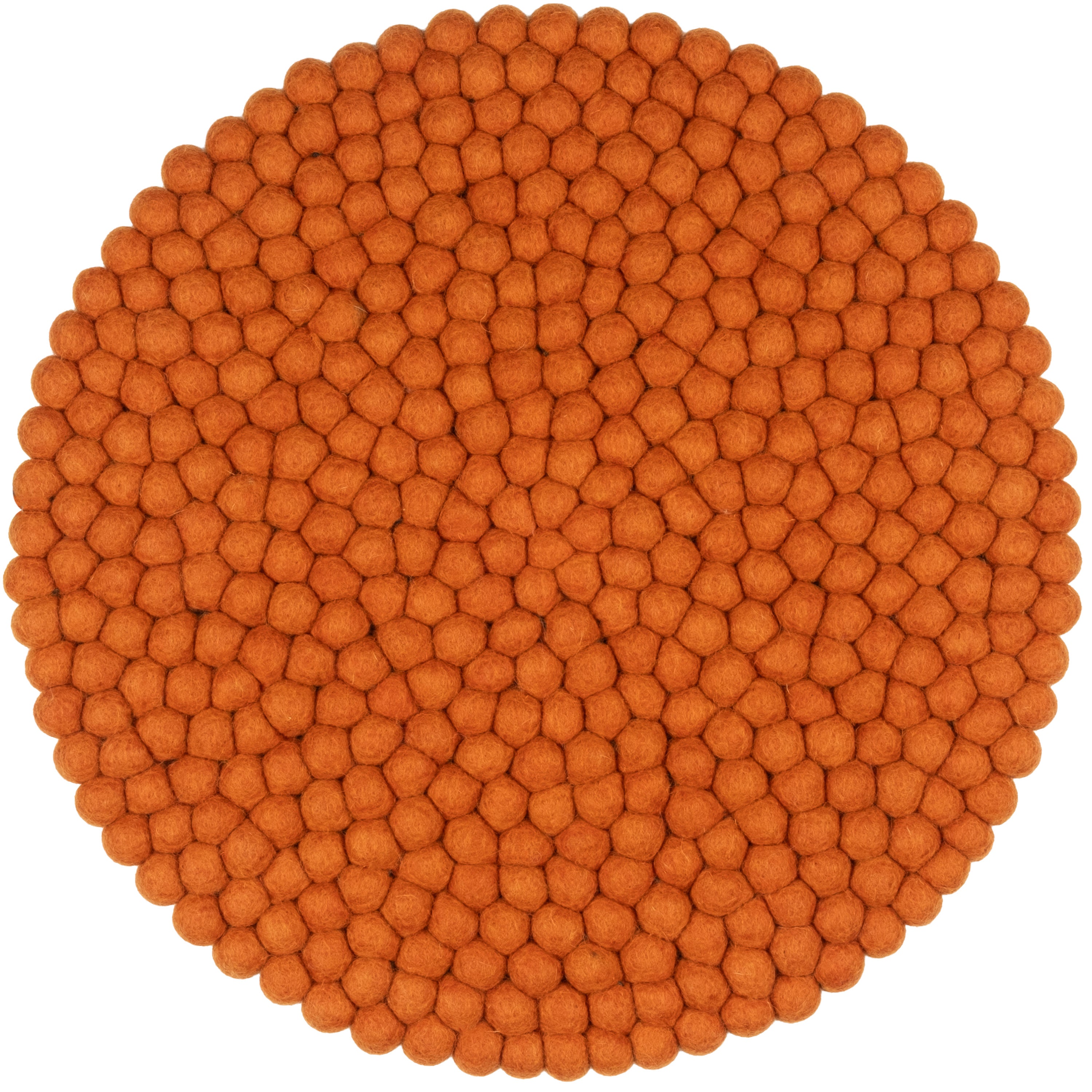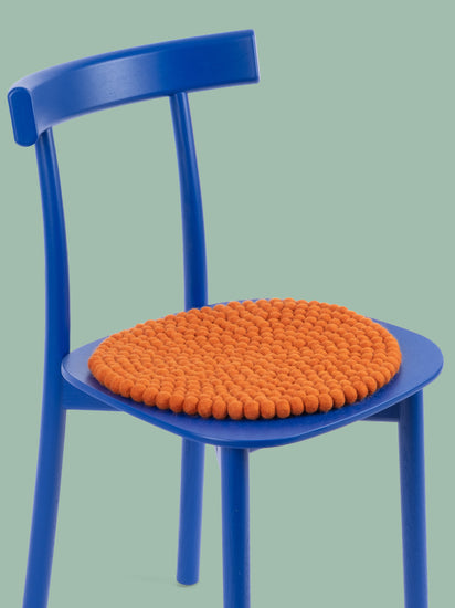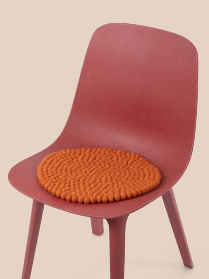 Redondo, cojín de asiento naranja de lana virgen pura.