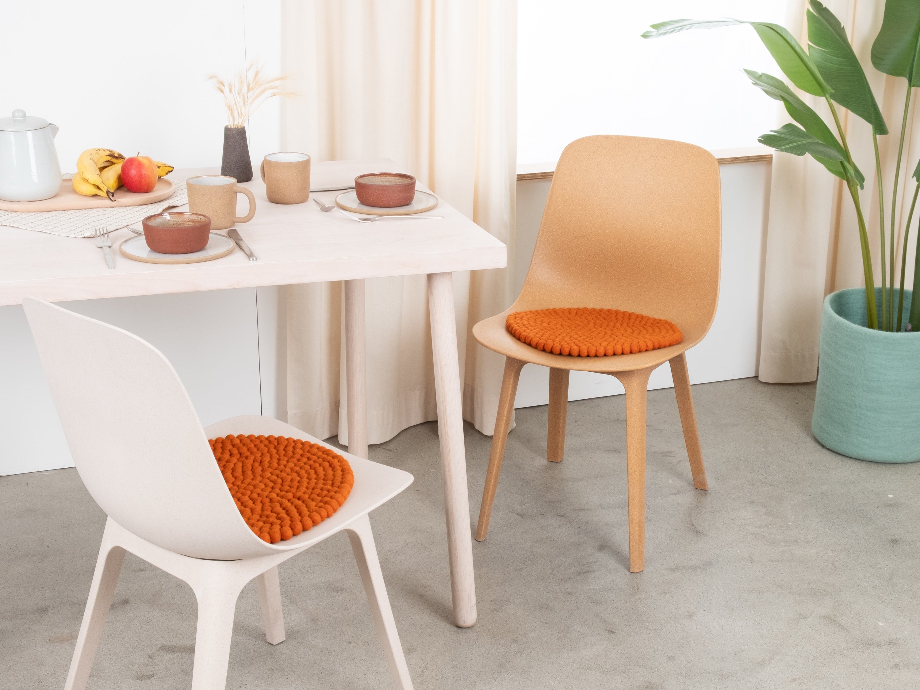 El cojín de asiento naranja Afra aporta calidez y suavidad a tu silla favorita. Fabricado con lana virgen pura, hecho a mano en Nepal y producido en condiciones justas. Los cojines de asiento myfelt son repelentes al agua y la suciedad y se pueden utilizar por ambos lados.