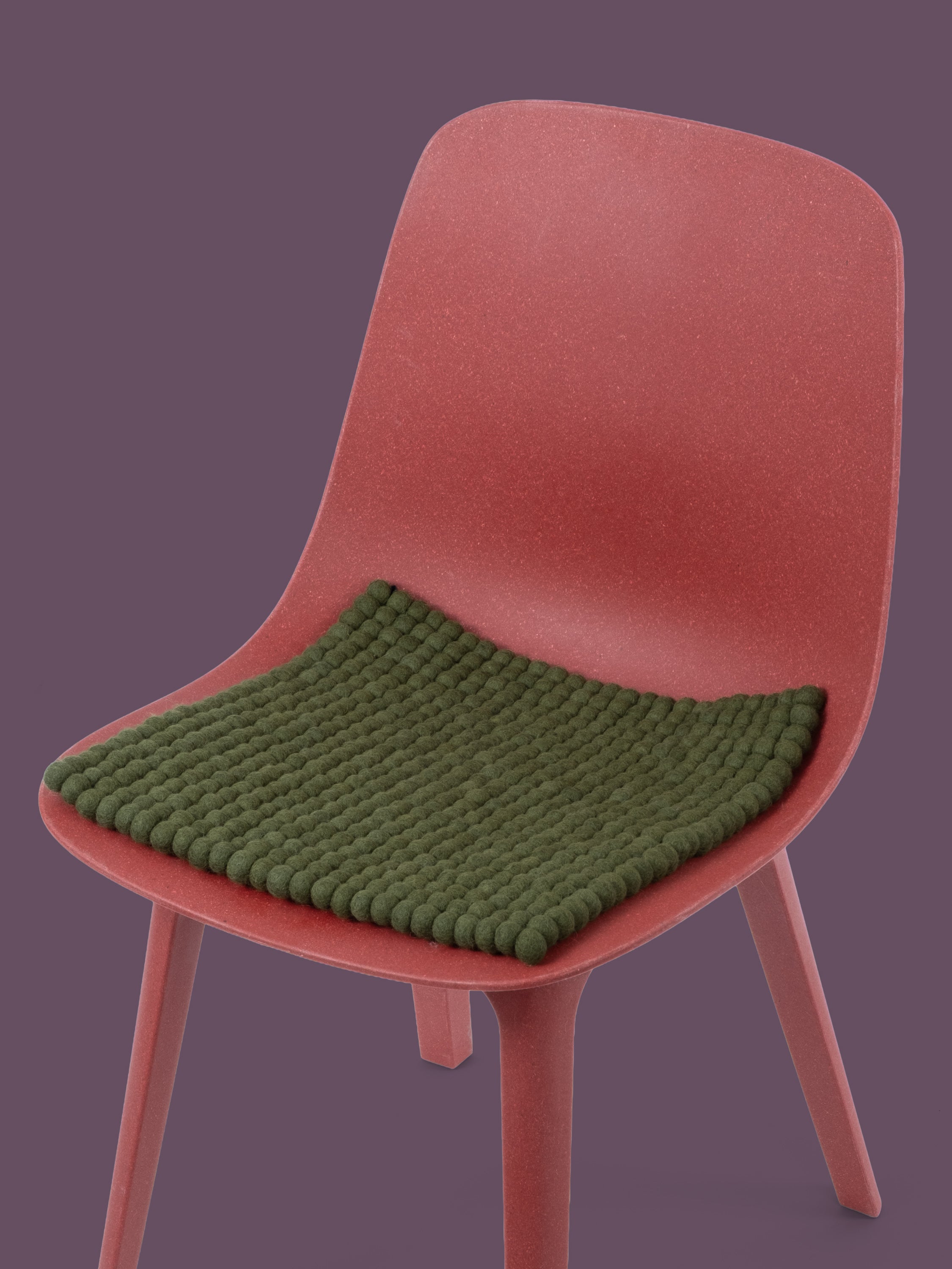 Cuadrado, cojín de asiento verde oscuro de lana virgen pura.