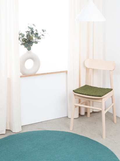 El cojín de asiento verde oscuro Jost aporta calidez y suavidad a tu silla favorita. Fabricado con lana virgen pura, hecho a mano en Nepal y producido en condiciones justas. Los cojines de asiento myfelt son repelentes al agua y la suciedad y se pueden utilizar por ambos lados.