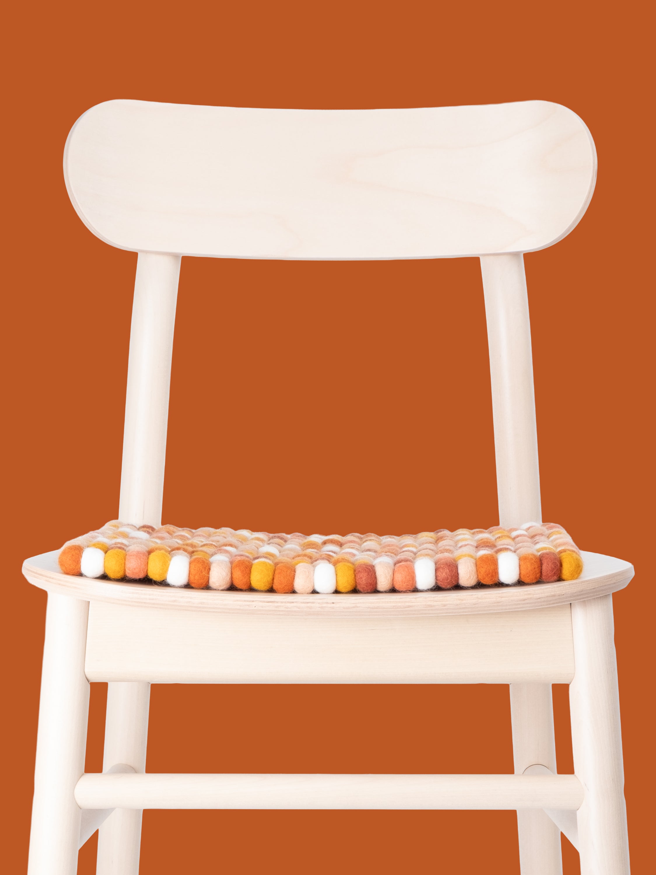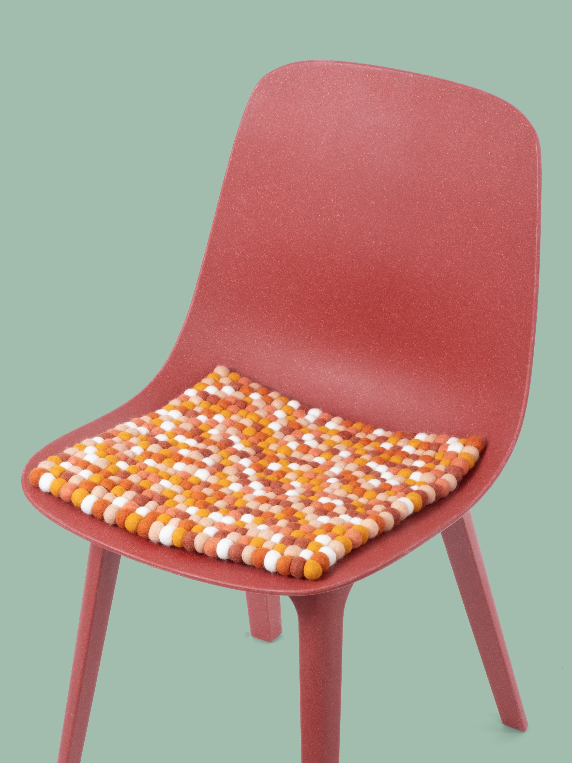 El cojín de asiento vistoso Juna aporta calidez y suavidad a tu silla favorita. Fabricado con lana virgen pura, hecho a mano en Nepal y producido en condiciones justas. Los cojines de asiento myfelt son repelentes al agua y la suciedad y se pueden utilizar por ambos lados.