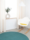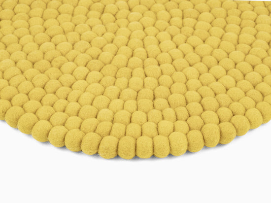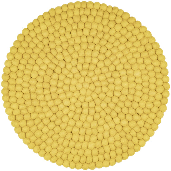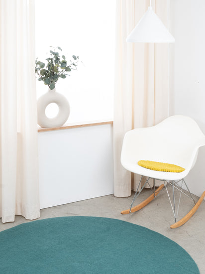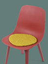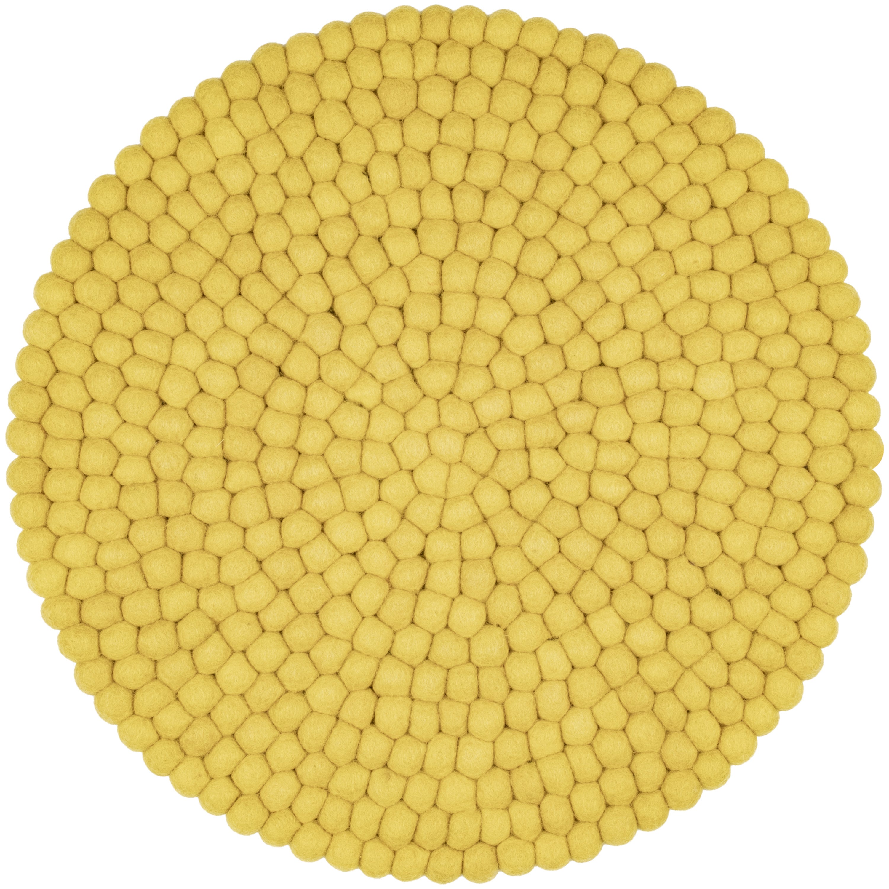 Redondo, cojín de asiento verde amarillento de lana virgen pura.