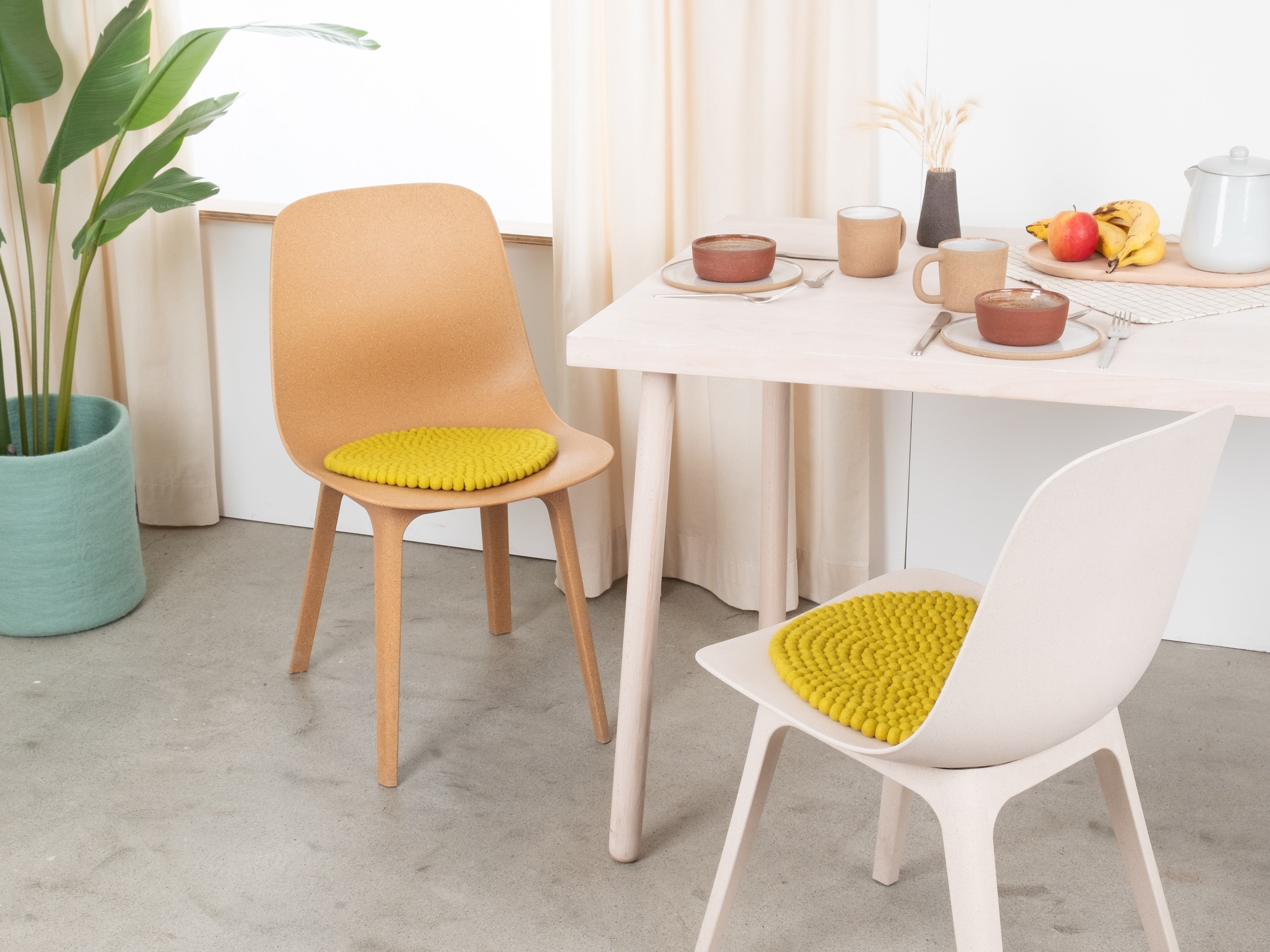 El cojín de asiento verde amarillento Kata aporta calidez y suavidad a tu silla favorita. Fabricado con lana virgen pura, hecho a mano en Nepal y producido en condiciones justas. Los cojines de asiento myfelt son repelentes al agua y la suciedad y se pueden utilizar por ambos lados.
