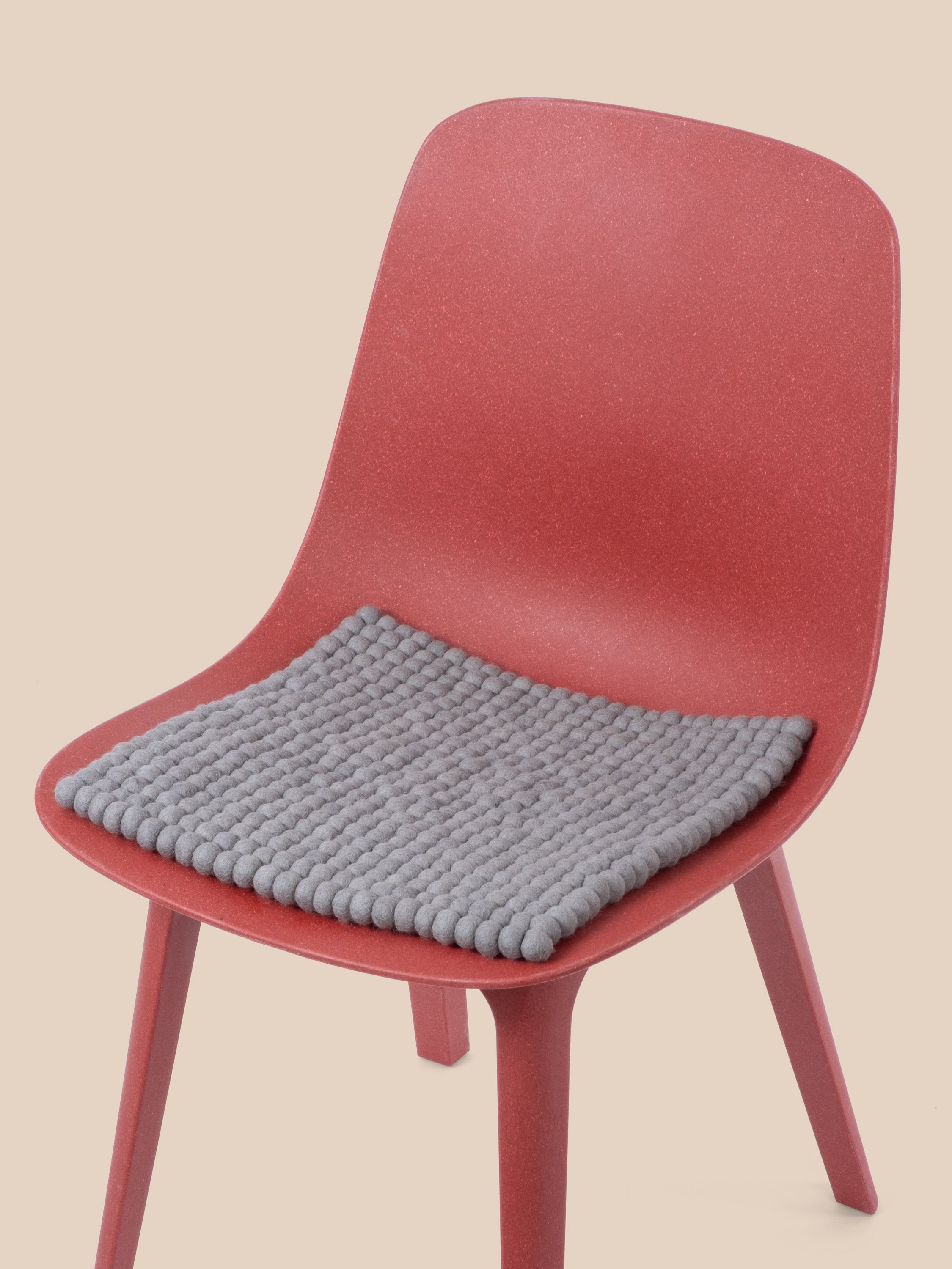 Cuadrado, cojín de asiento gris de lana virgen pura.