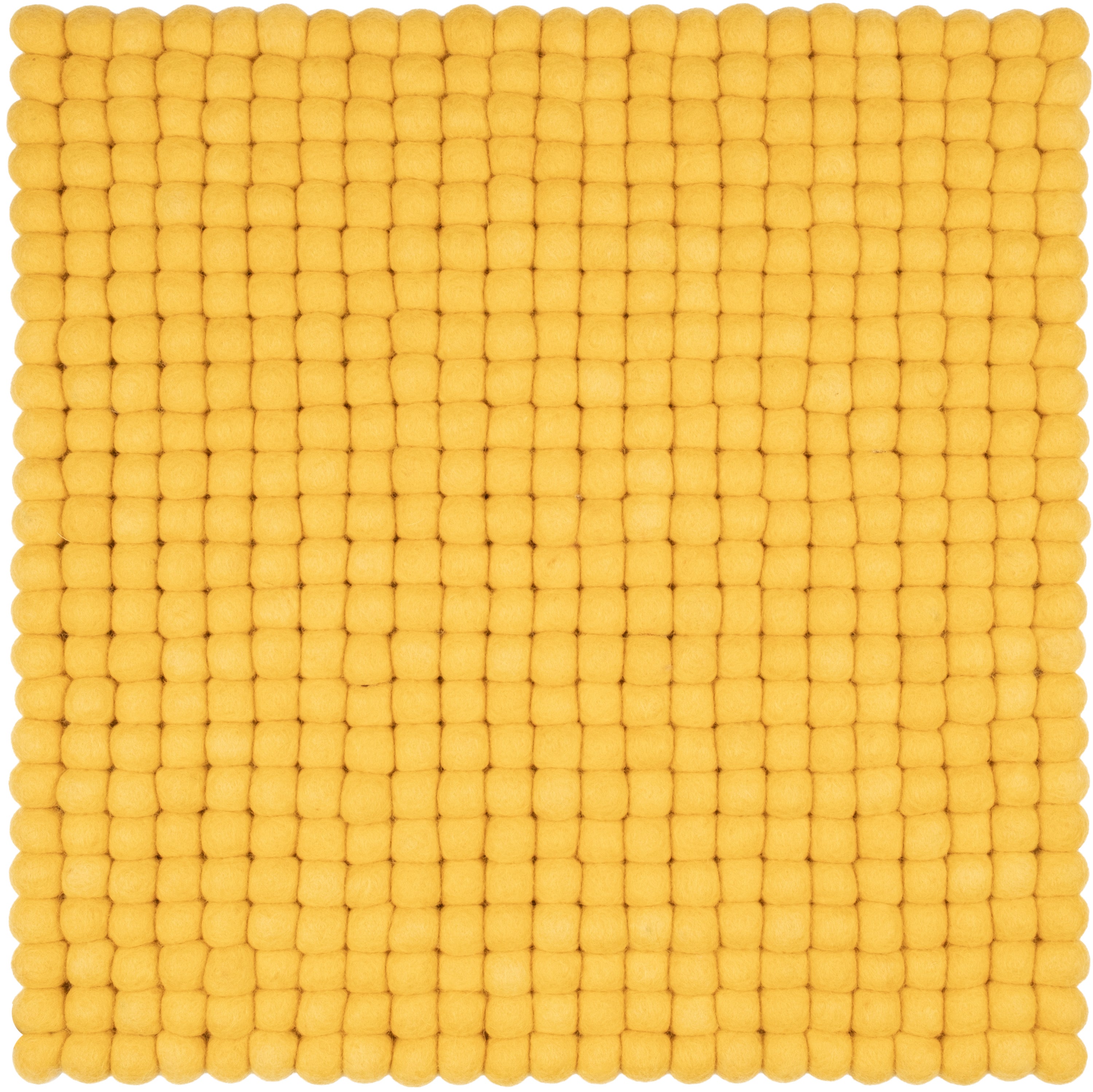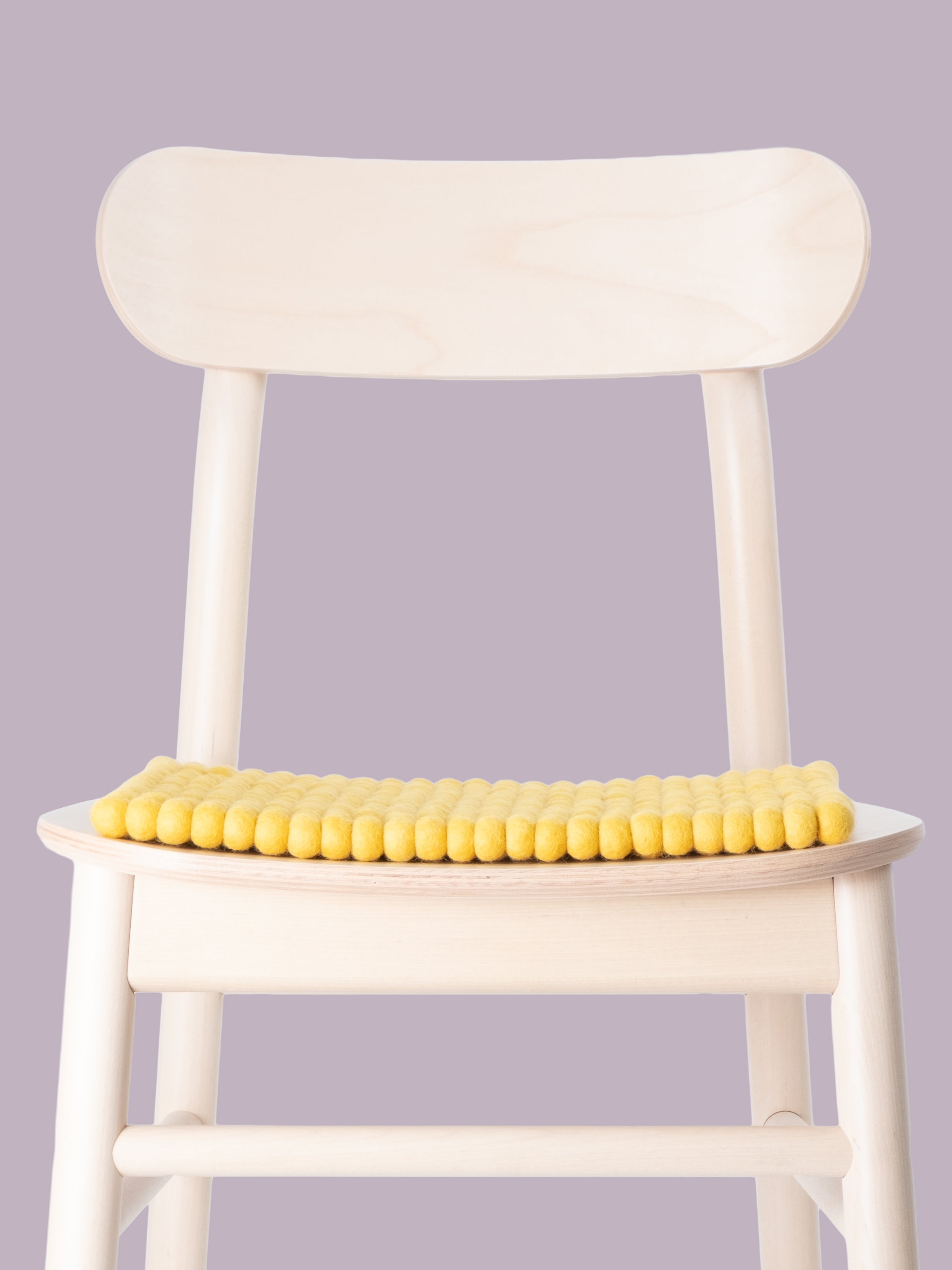Cuadrado, cojín de asiento amarillo de lana virgen pura.