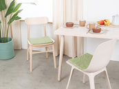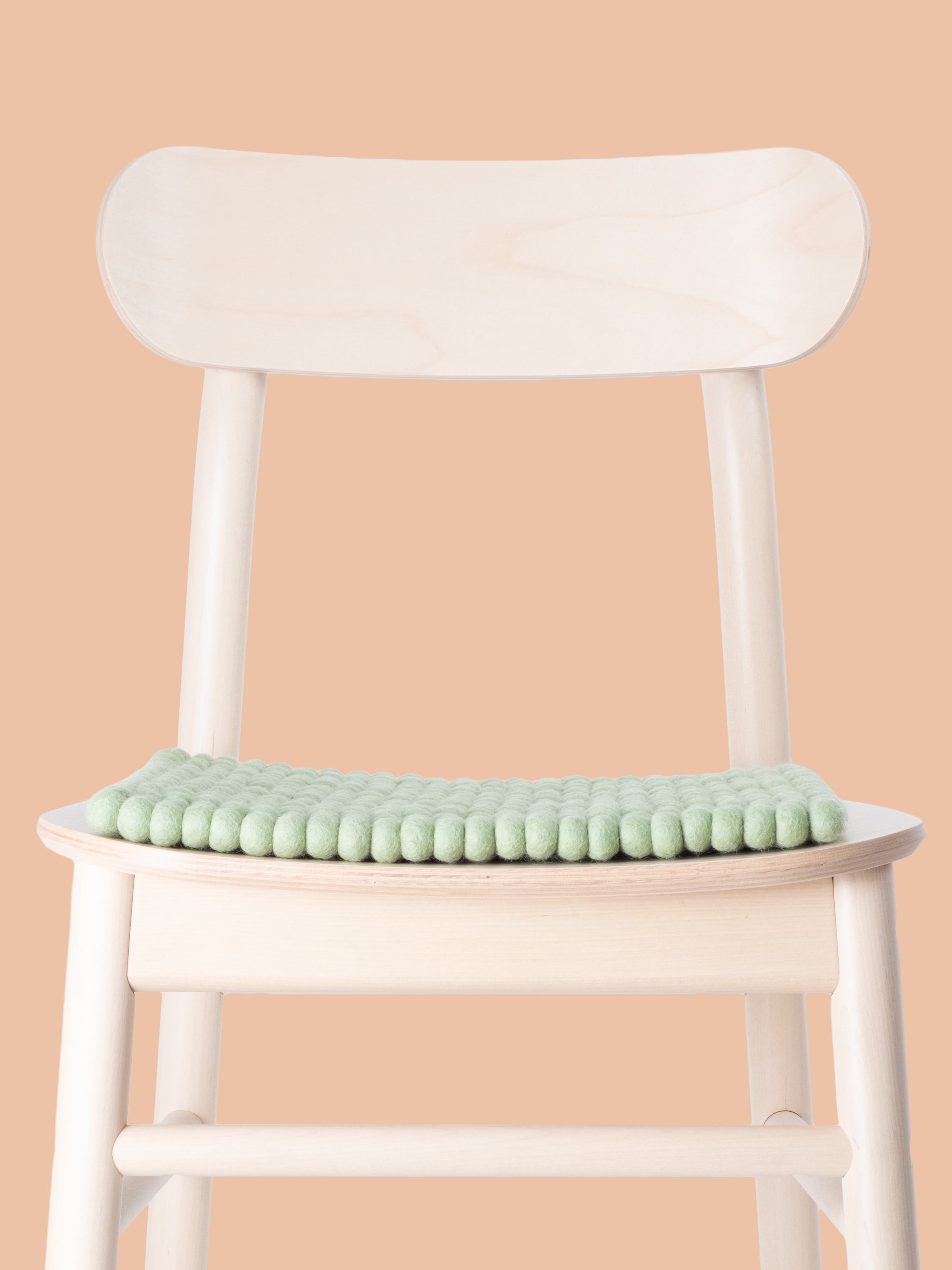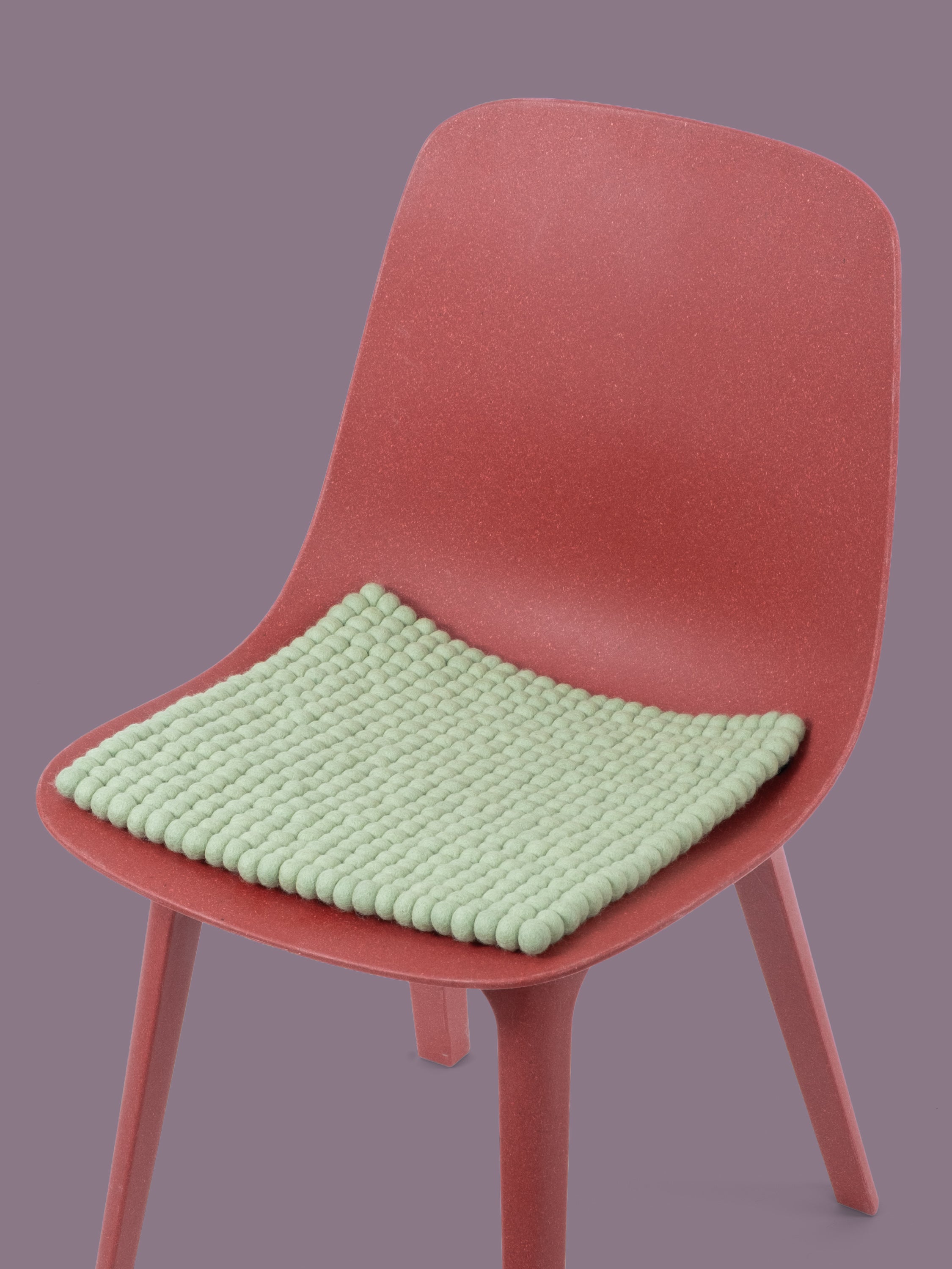 Cuadrado, cojín de asiento verde claro de lana virgen pura.