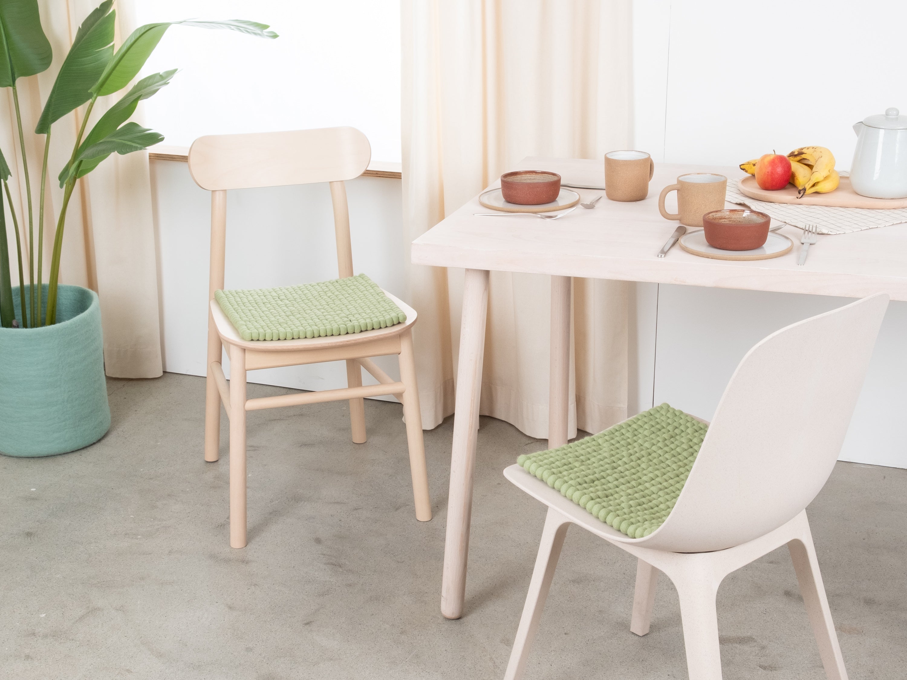 El cojín de asiento verde claro Lasse aporta calidez y suavidad a tu silla favorita. Fabricado con lana virgen pura, hecho a mano en Nepal y producido en condiciones justas. Los cojines de asiento myfelt son repelentes al agua y la suciedad y se pueden utilizar por ambos lados.