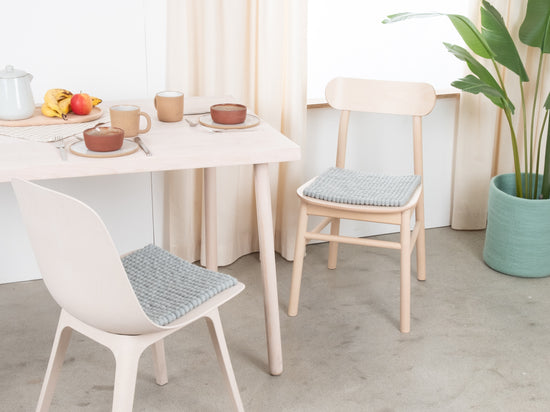 El cojín de asiento azul claro Liv aporta calidez y suavidad a tu silla favorita. Fabricado con lana virgen pura, hecho a mano en Nepal y producido en condiciones justas. Los cojines de asiento myfelt son repelentes al agua y la suciedad y se pueden utilizar por ambos lados.