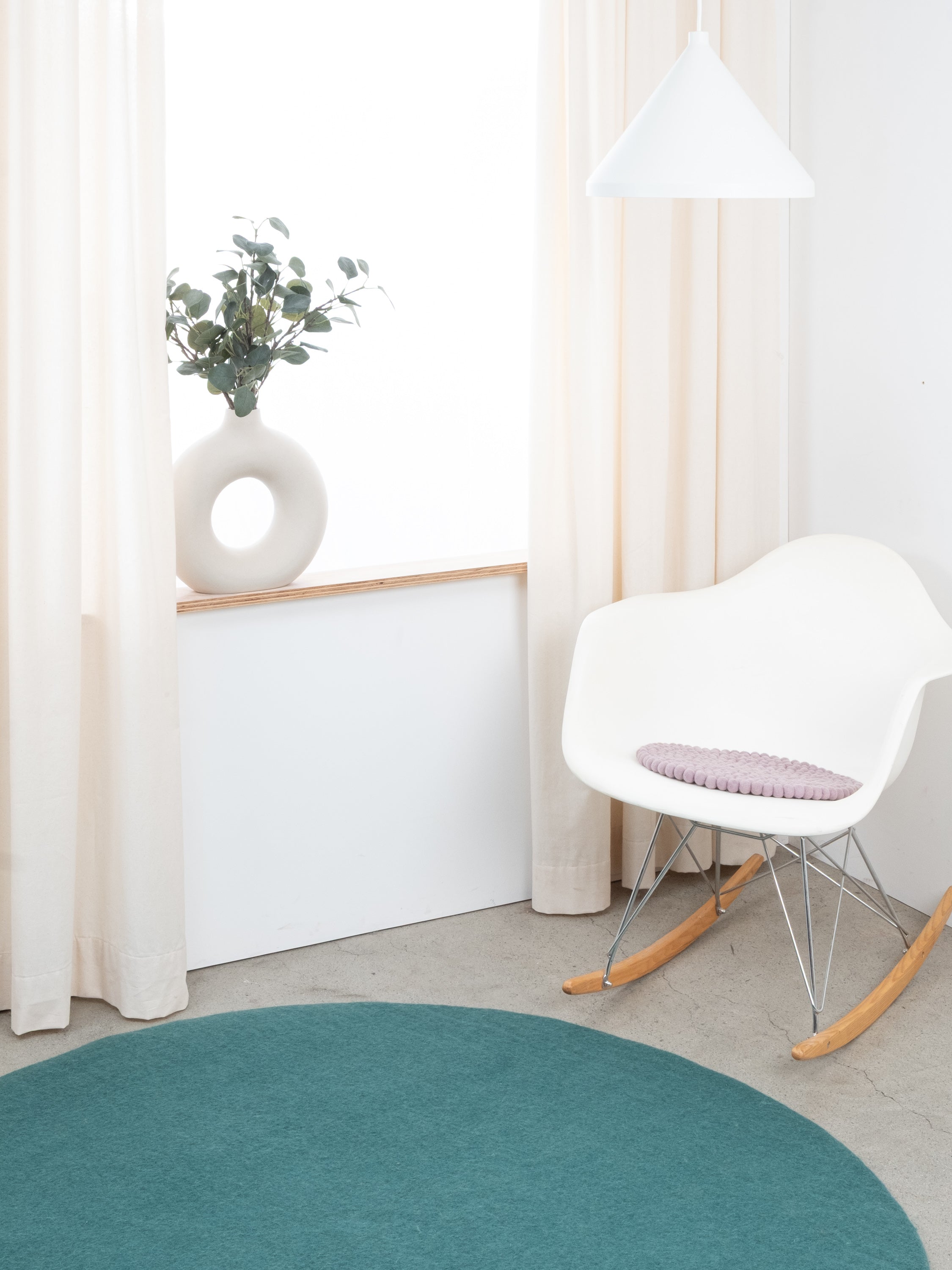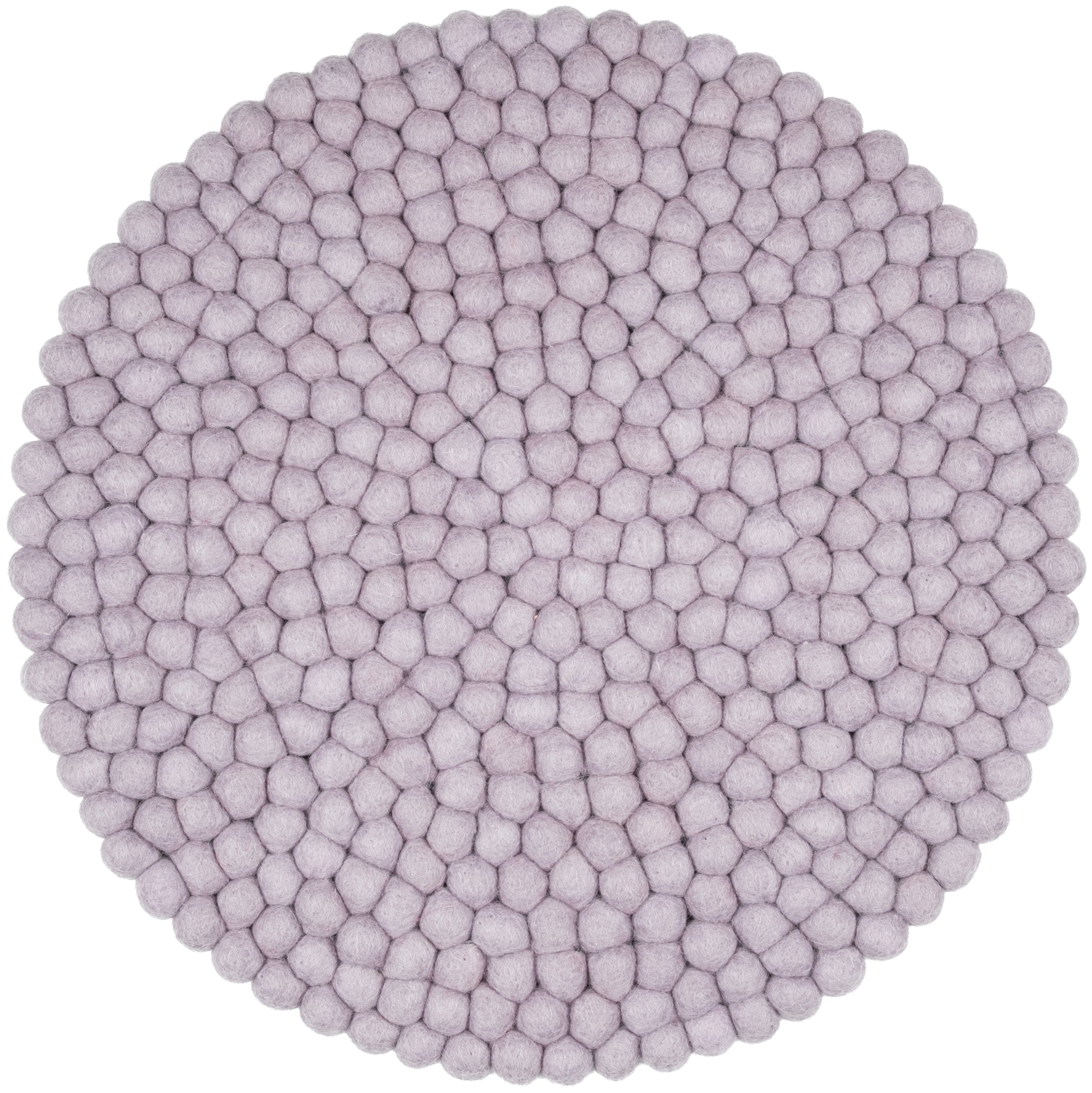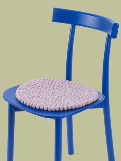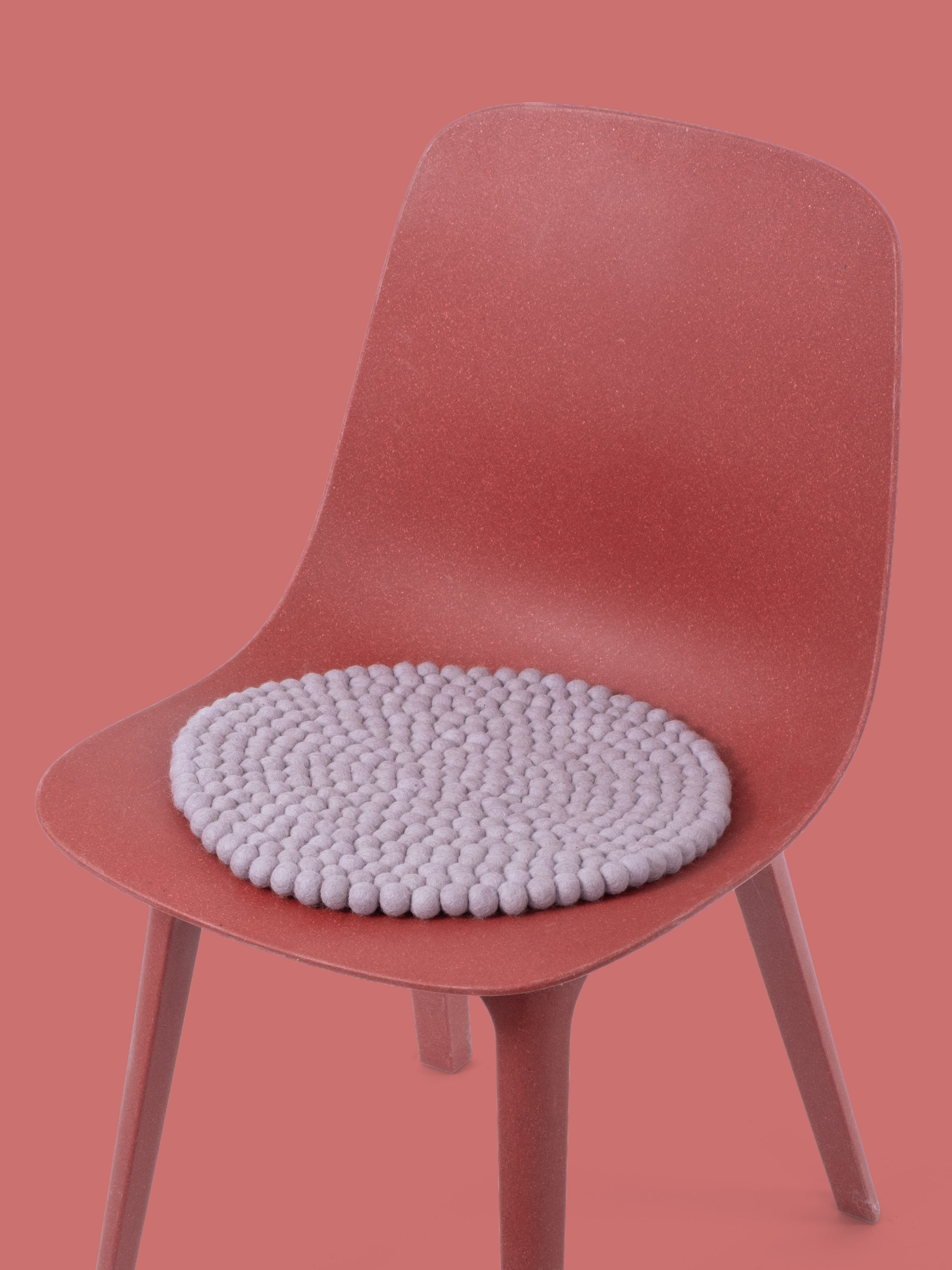Redondo, cojín de asiento violeta claro de lana virgen pura.