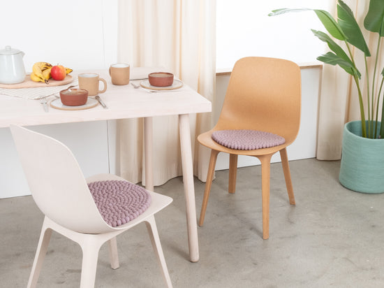 El cojín de asiento violeta claro Marla aporta calidez y suavidad a tu silla favorita. Fabricado con lana virgen pura, hecho a mano en Nepal y producido en condiciones justas. Los cojines de asiento myfelt son repelentes al agua y la suciedad y se pueden utilizar por ambos lados.