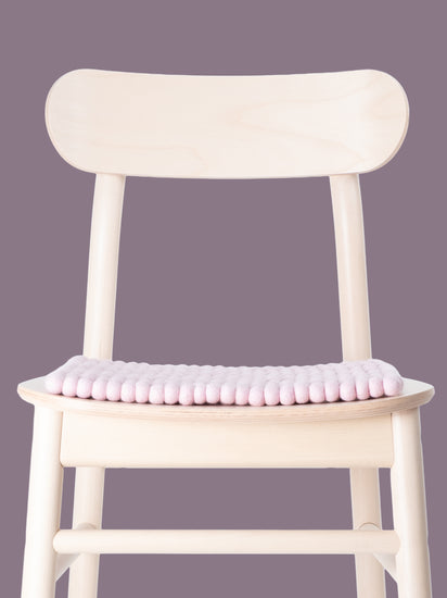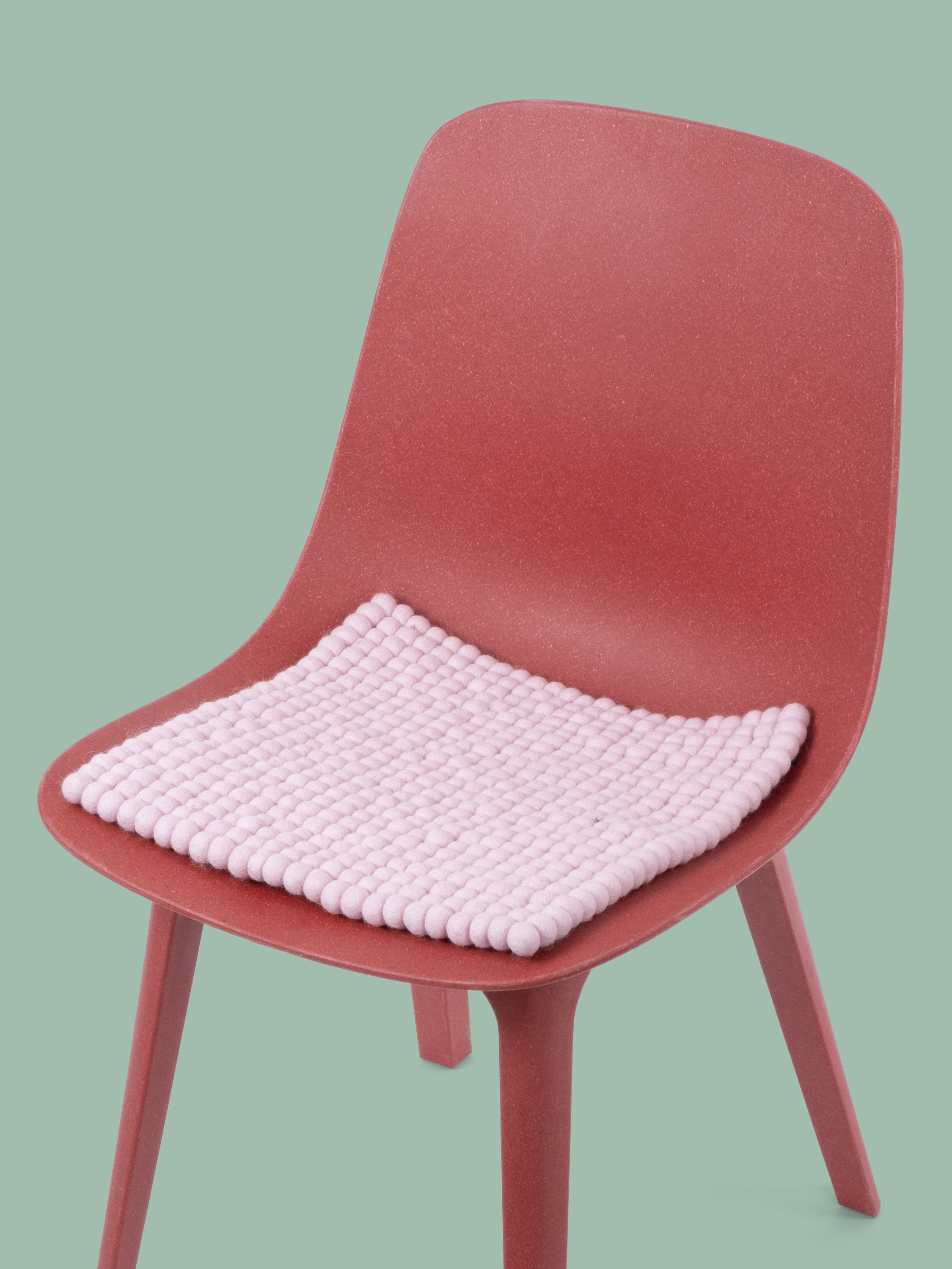 Cuadrado, cojín de asiento rosa claro de lana virgen pura.