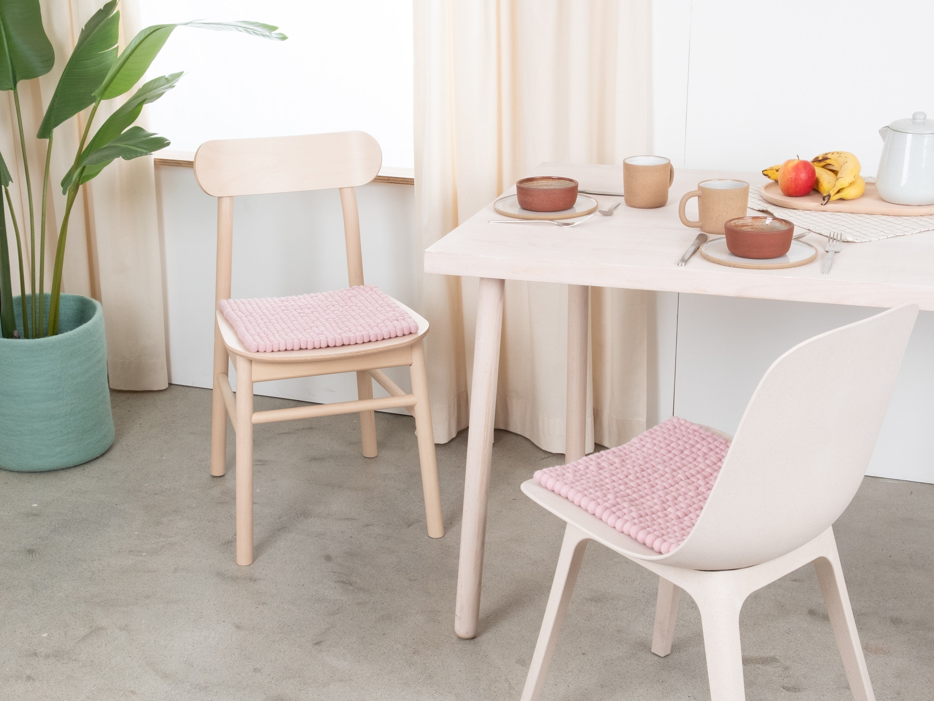 El cojín de asiento rosa suave Mona aporta calidez y suavidad a tu silla favorita. Fabricado con lana virgen pura, hecho a mano en Nepal y producido en condiciones justas. Los cojines de asiento myfelt son repelentes al agua y la suciedad y se pueden utilizar por ambos lados.