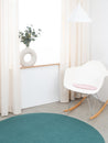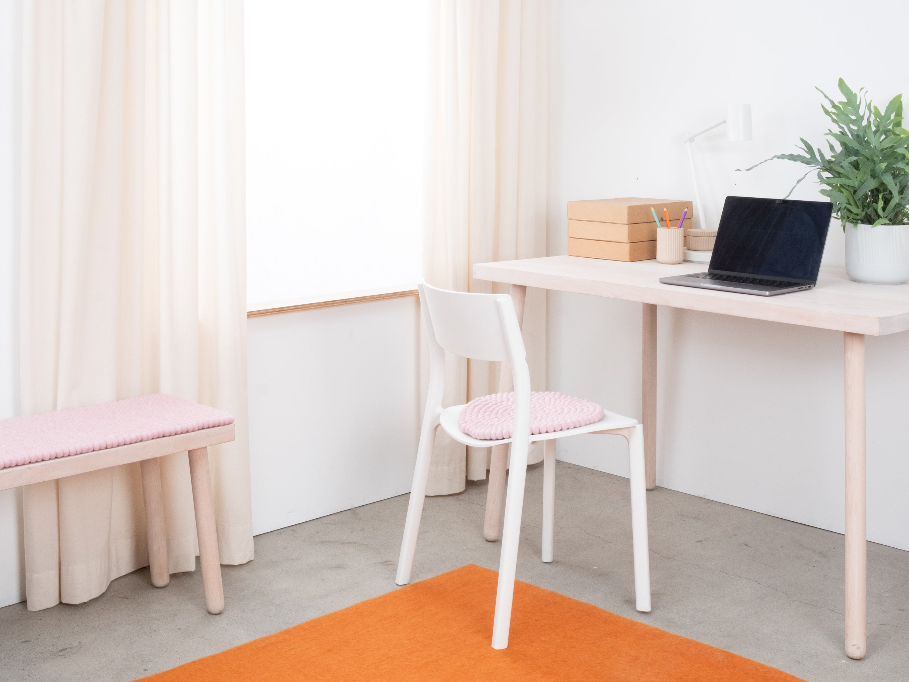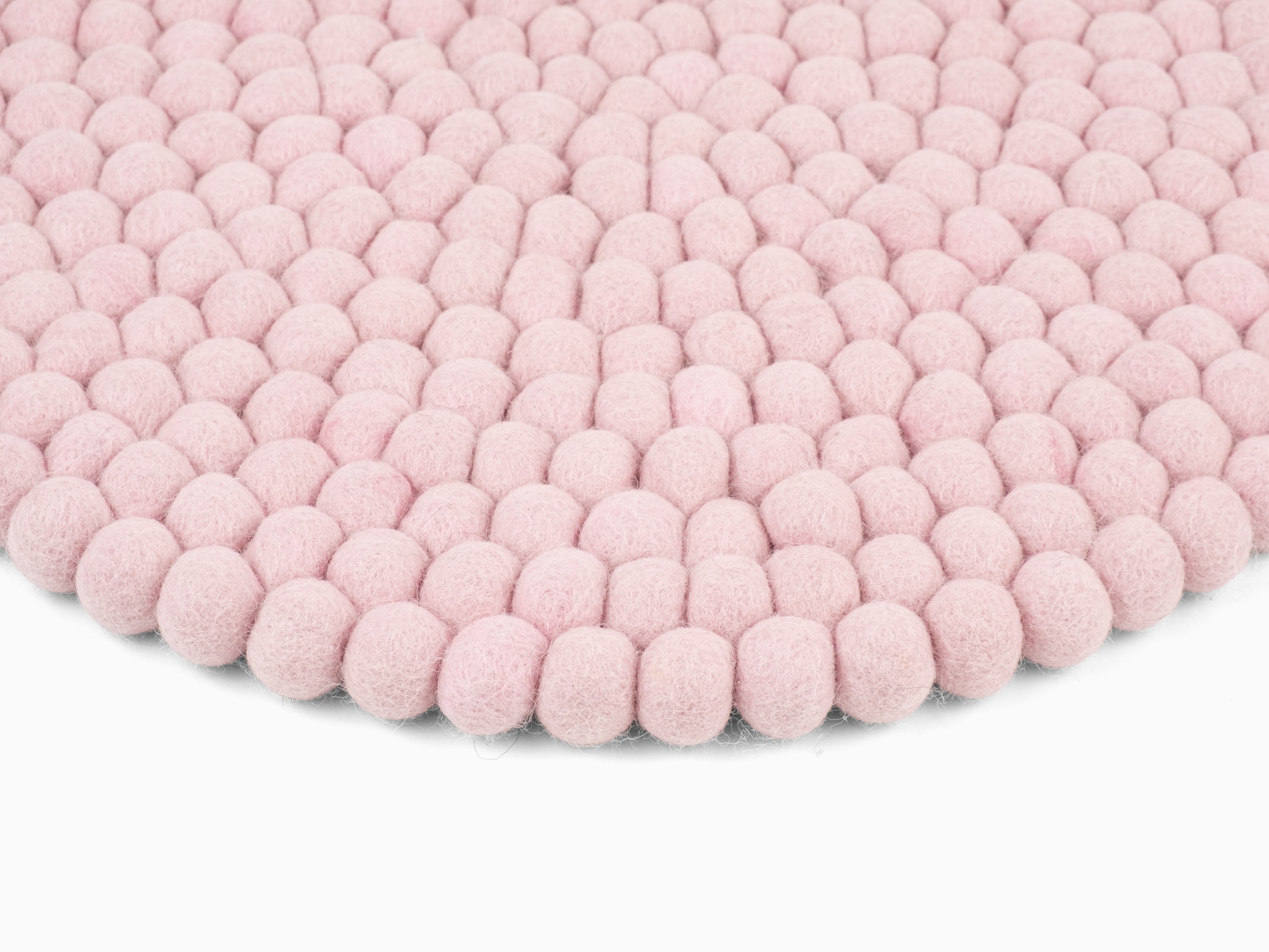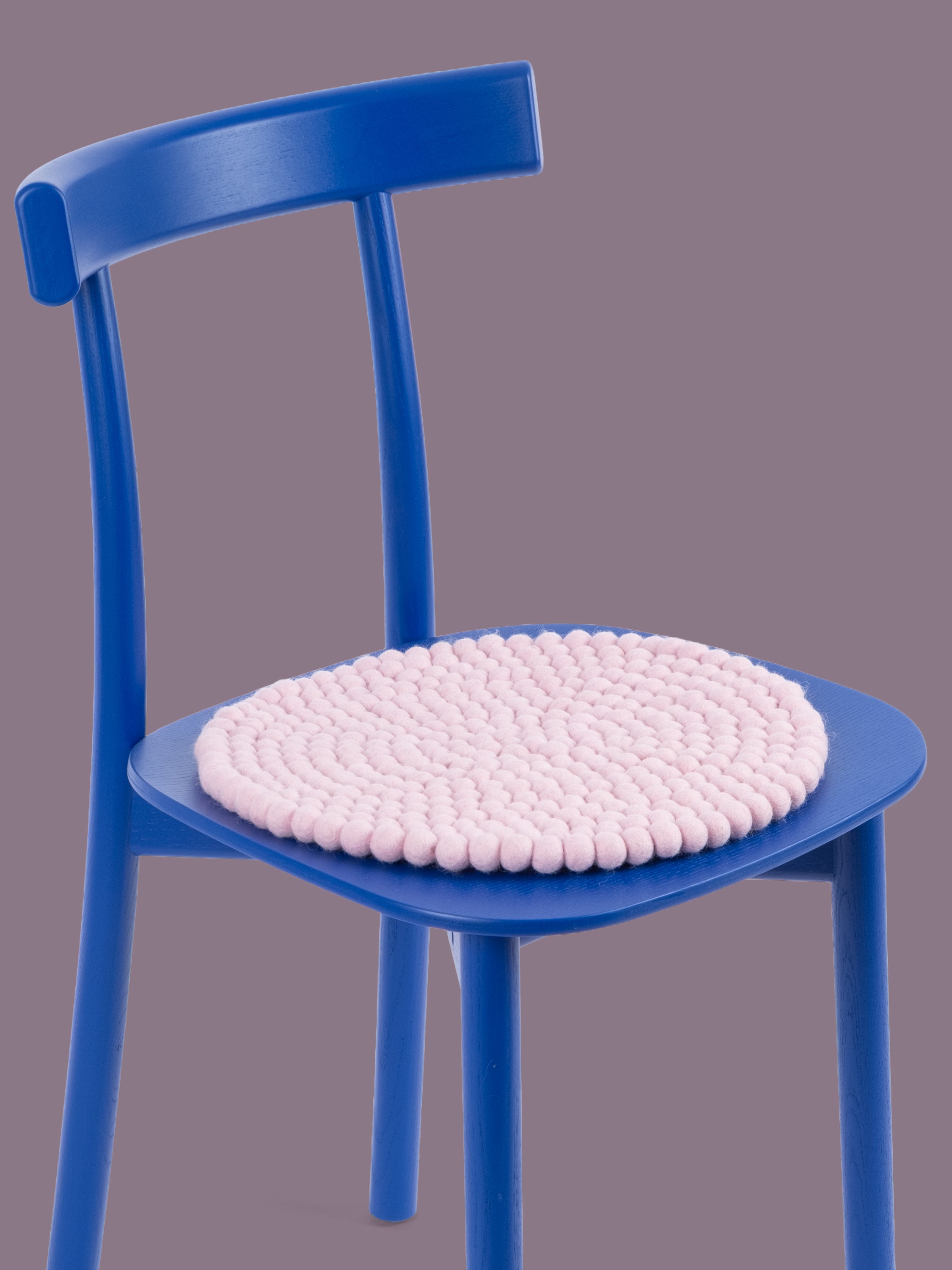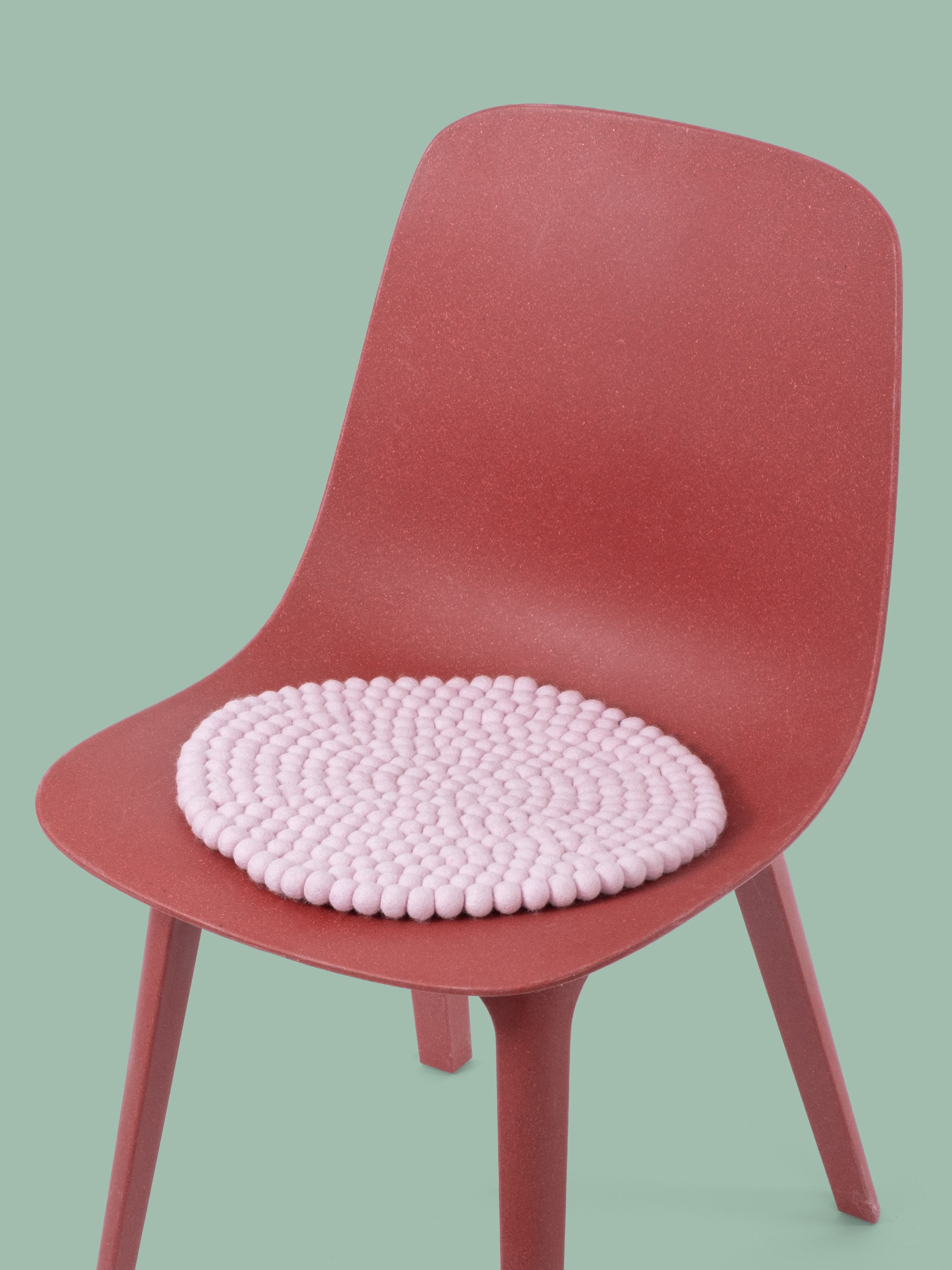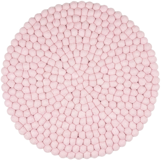 Redondo, cojín de asiento rosa claro de lana virgen pura.