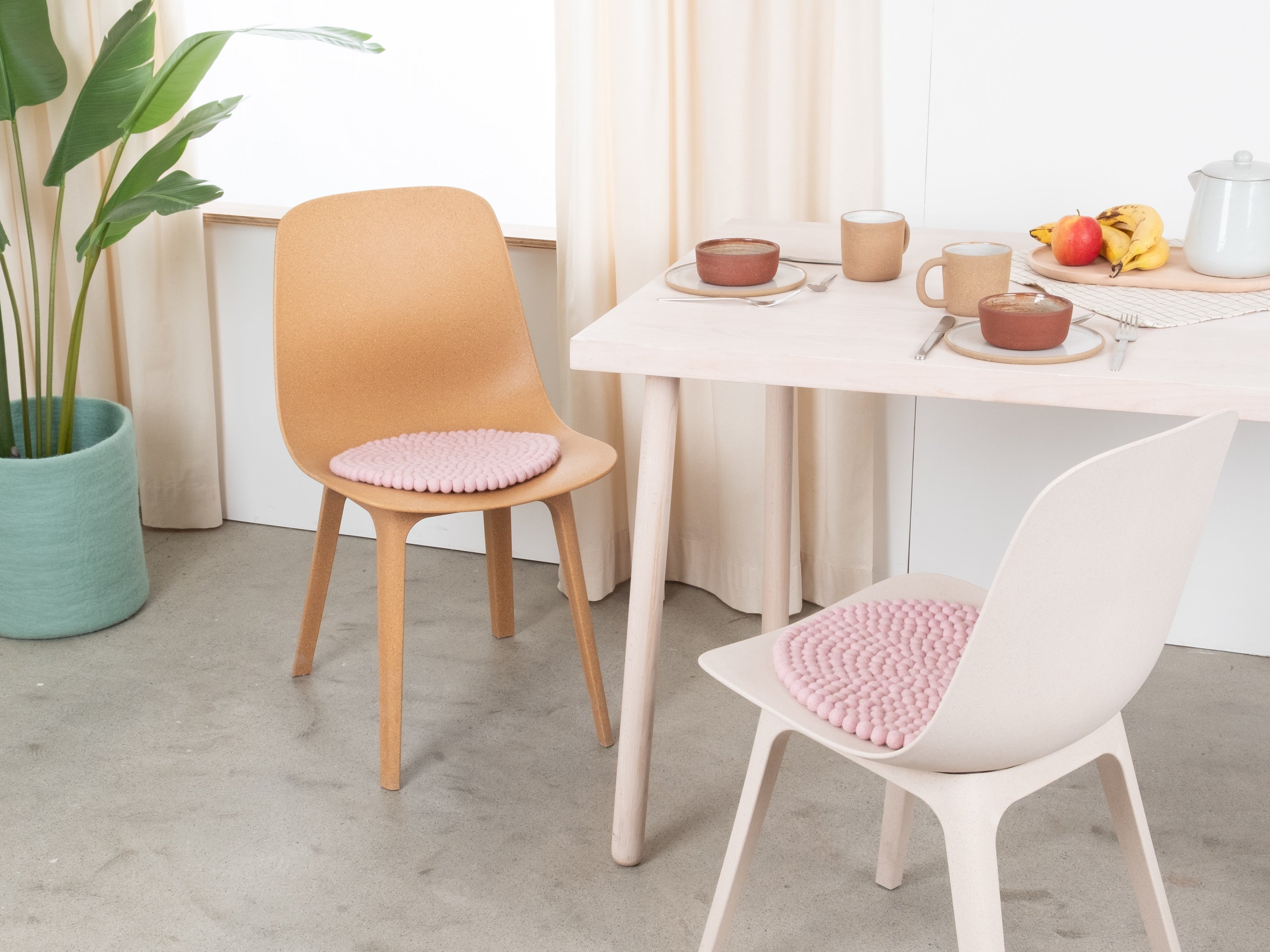 El cojín de asiento rosa suave Mona aporta calidez y suavidad a tu silla favorita. Fabricado con lana virgen pura, hecho a mano en Nepal y producido en condiciones justas. Los cojines de asiento myfelt son repelentes al agua y la suciedad y se pueden utilizar por ambos lados.