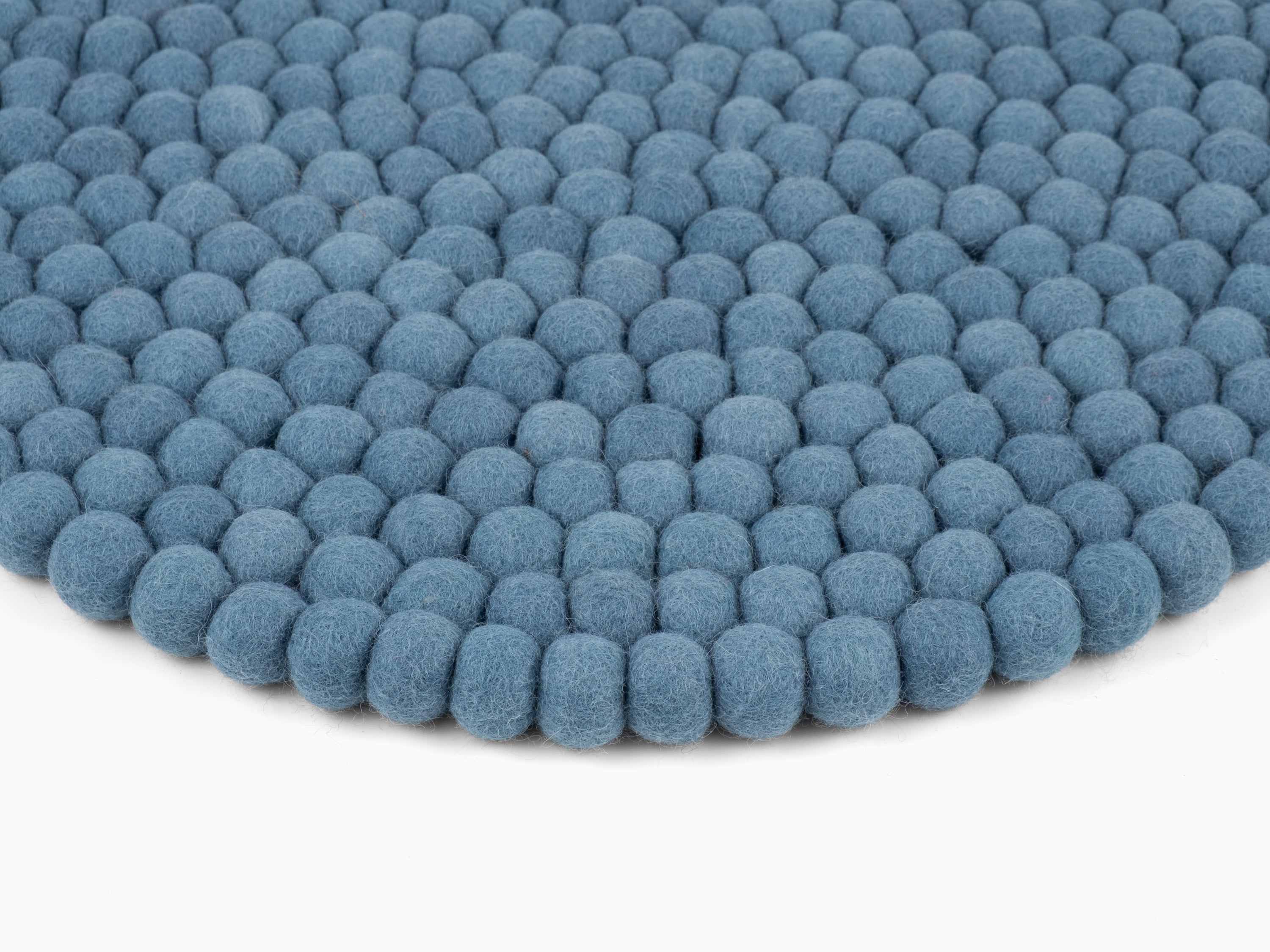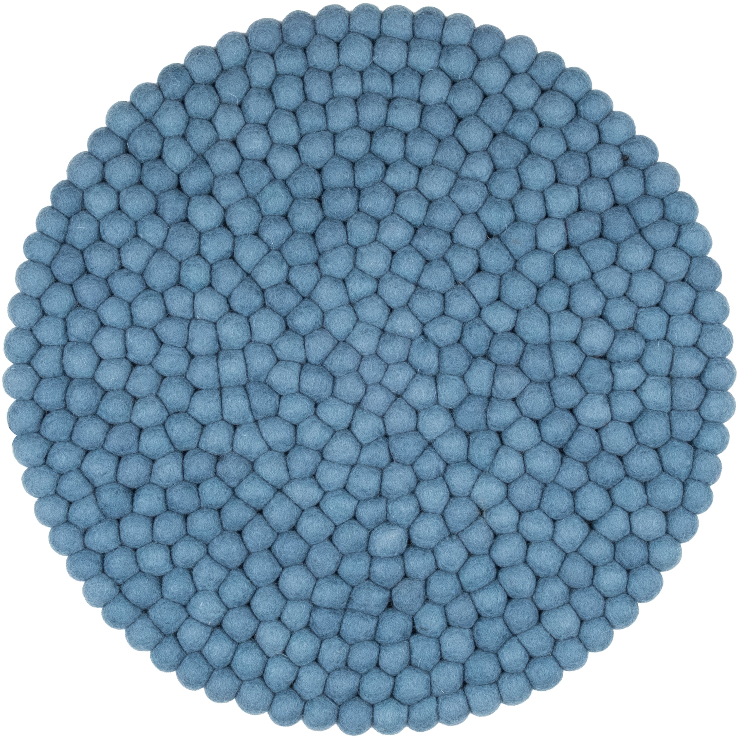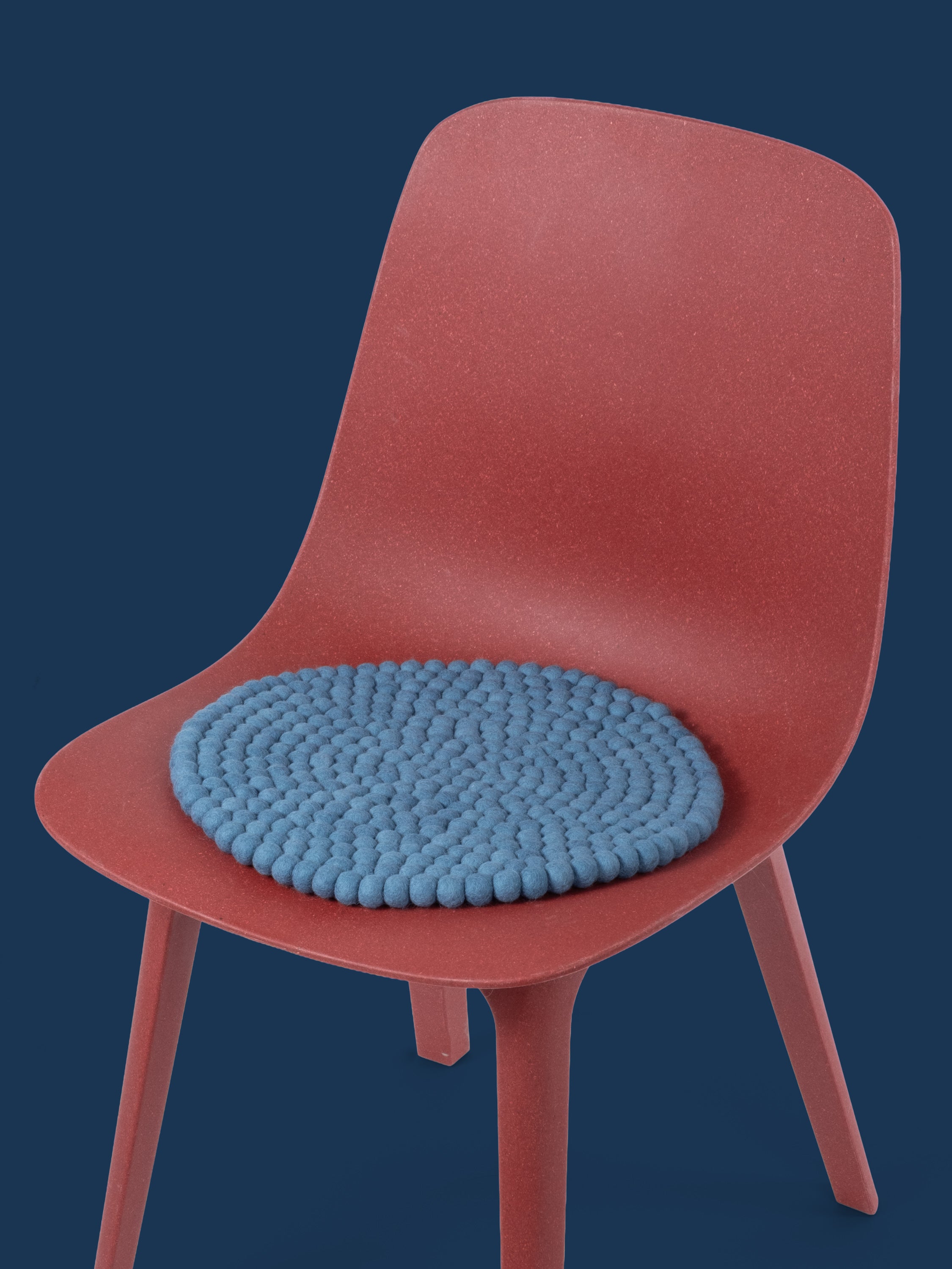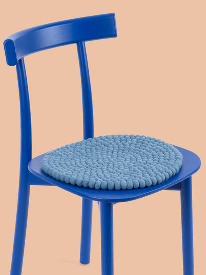 Redondo, cojín de asiento azul de lana virgen pura.