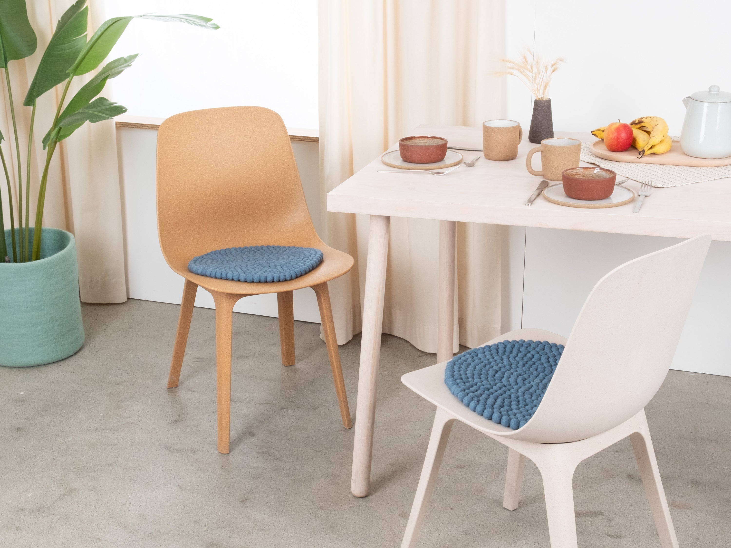 El cojín de asiento azul Nilo aporta calidez y suavidad a tu silla favorita. Fabricado con lana virgen pura, hecho a mano en Nepal y producido en condiciones justas. Los cojines de asiento myfelt son repelentes al agua y la suciedad y se pueden utilizar por ambos lados.