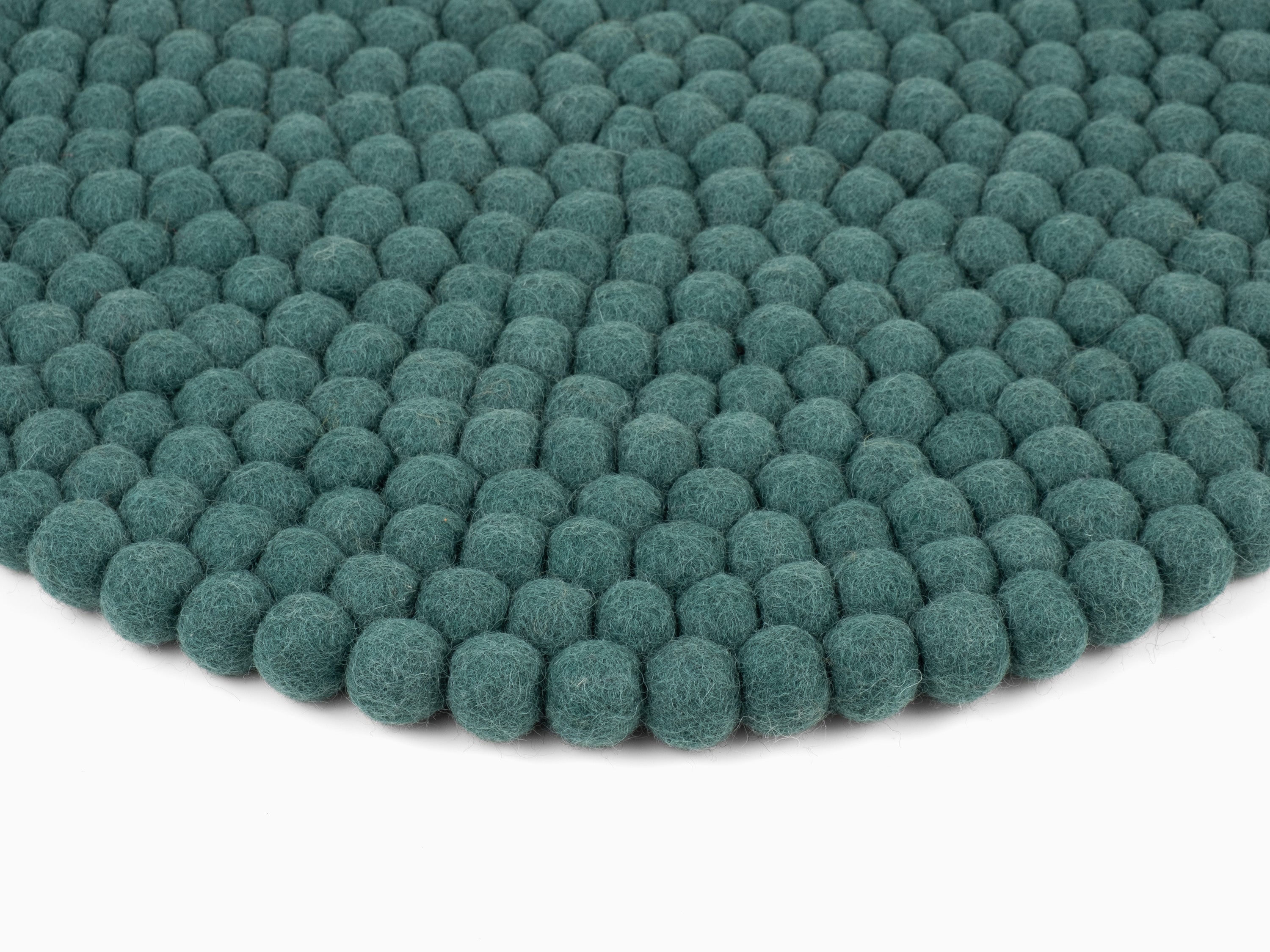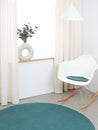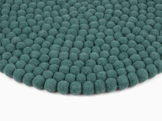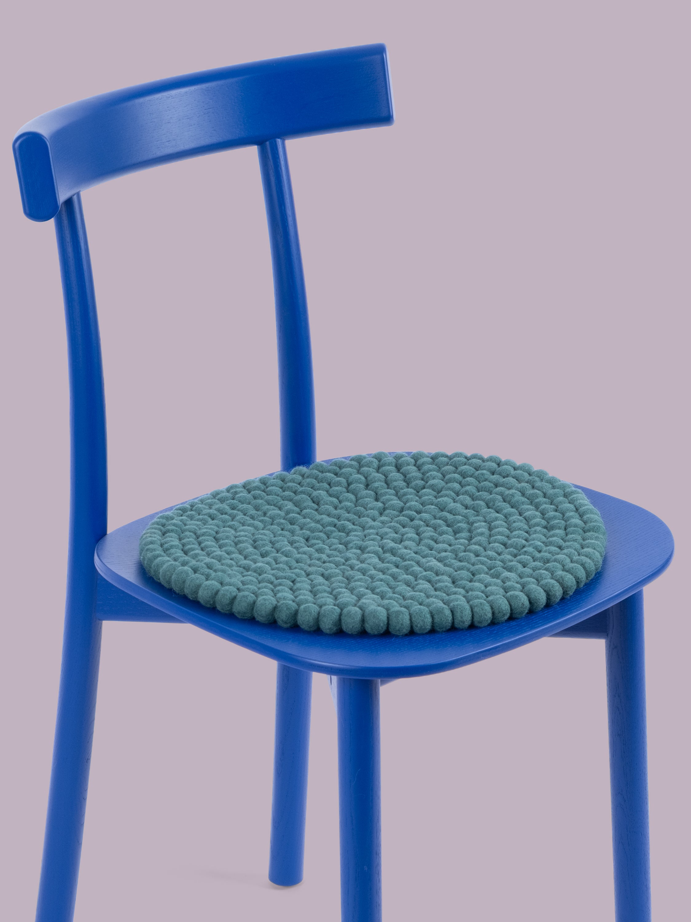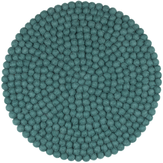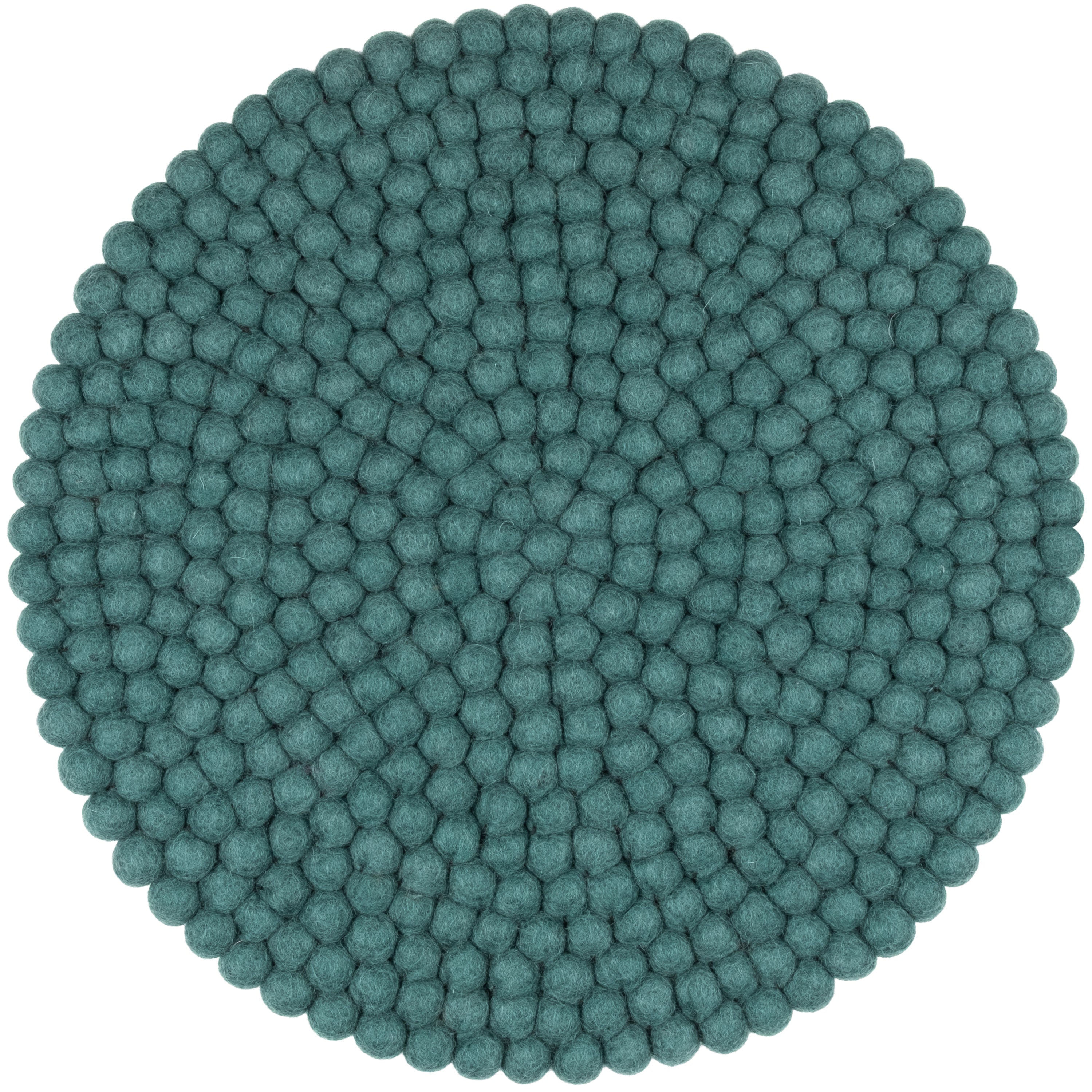 Redondo, cojín de asiento azul petróleo de lana virgen pura.