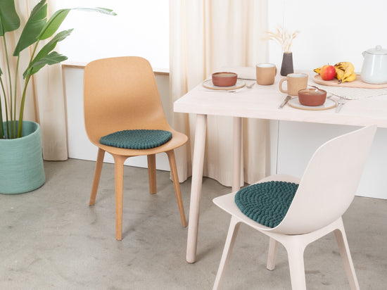 El cojín de asiento azul petróleo Noah aporta calidez y suavidad a tu silla favorita. Fabricado con lana virgen pura, hecho a mano en Nepal y producido en condiciones justas. Los cojines de asiento myfelt son repelentes al agua y la suciedad y se pueden utilizar por ambos lados.