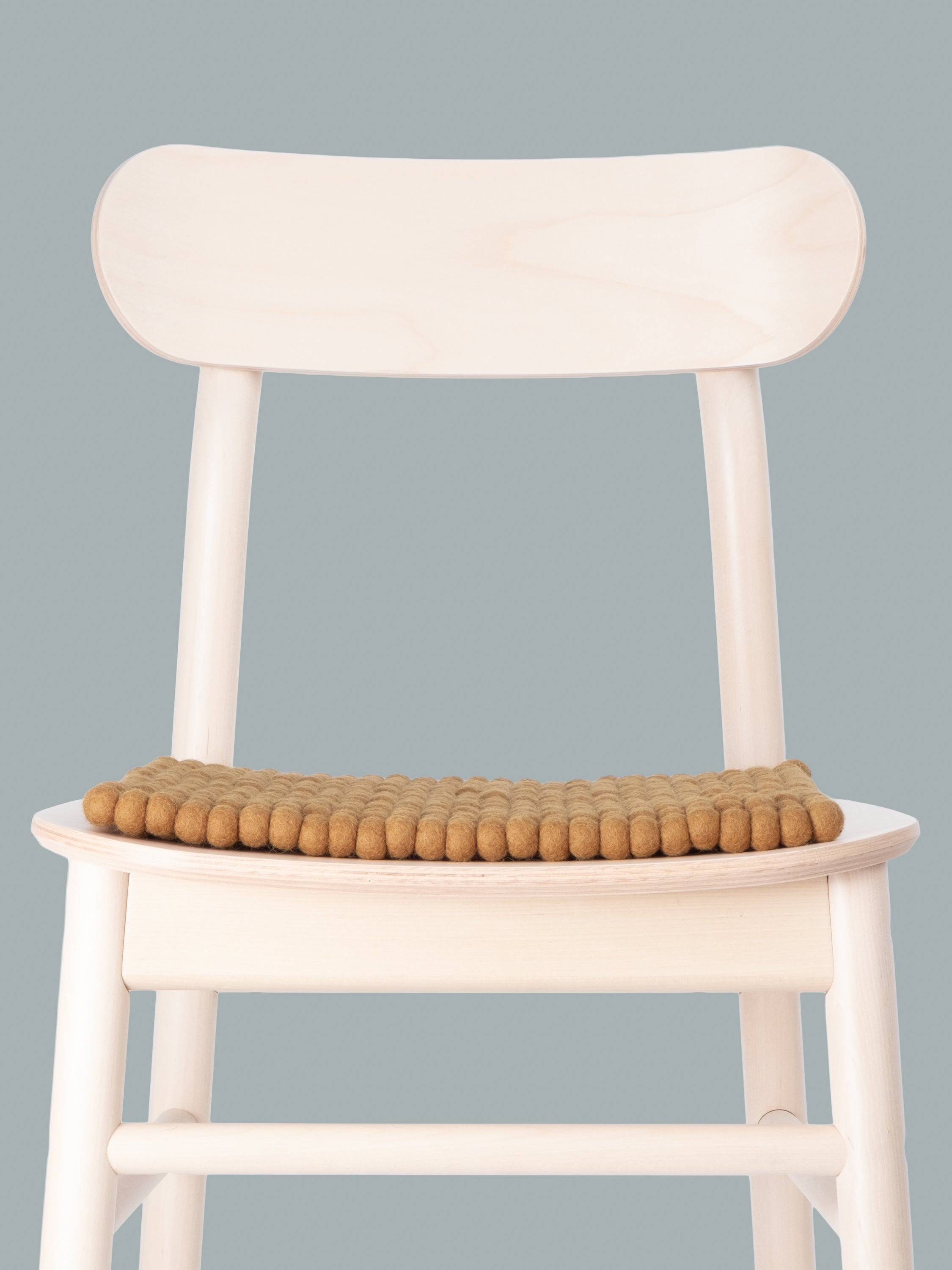 El cojín de asiento color caramelo Omar aporta calidez y suavidad a tu silla favorita. Fabricado con lana virgen pura, hecho a mano en Nepal y producido en condiciones justas. Los cojines de asiento myfelt son repelentes al agua y la suciedad y se pueden utilizar por ambos lados.
