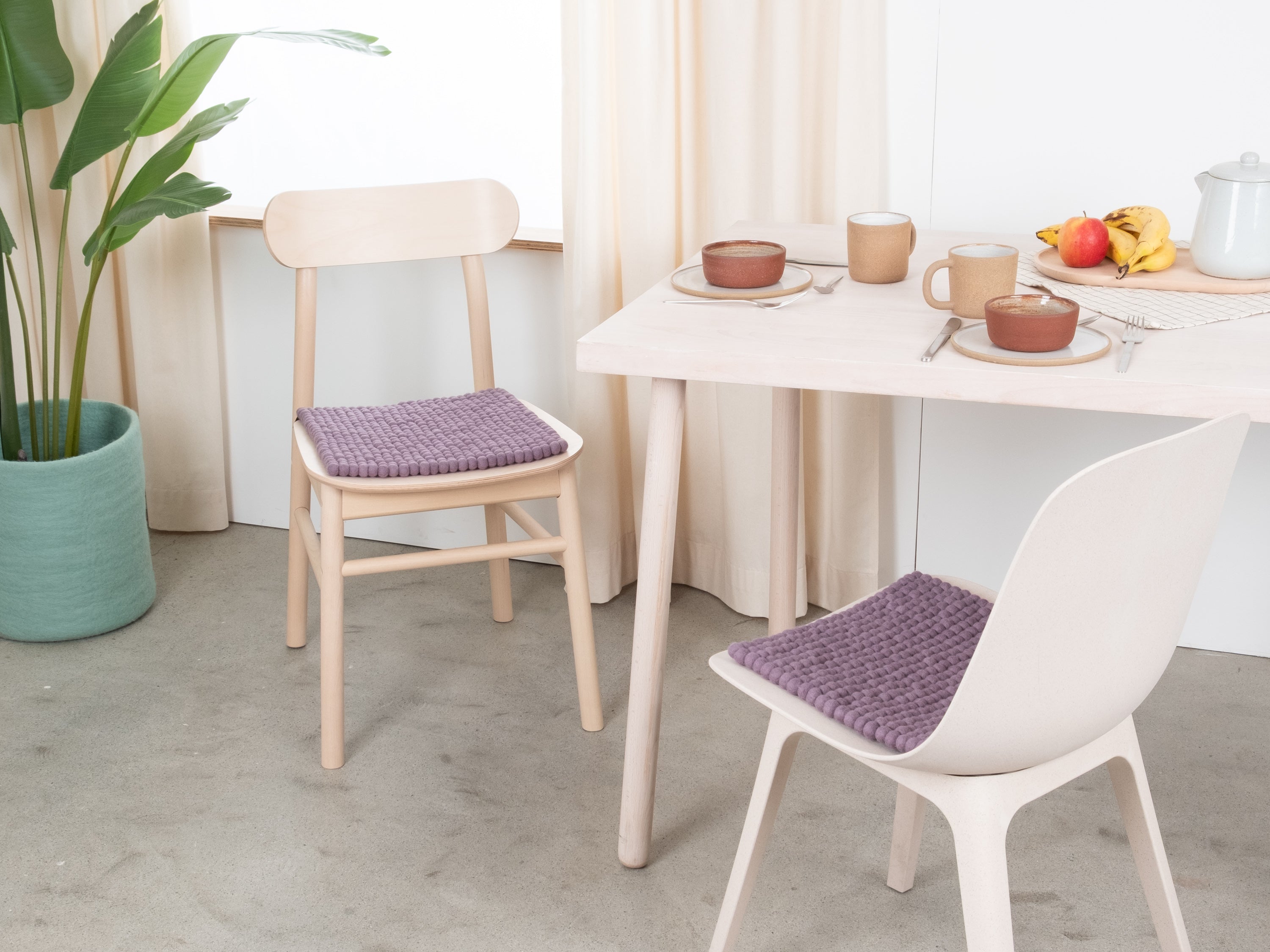 El cojín de asiento gris lila Tove aporta calidez y suavidad a tu silla favorita. Fabricado con lana virgen pura, hecho a mano en Nepal y producido en condiciones justas. Los cojines de asiento myfelt son repelentes al agua y la suciedad y se pueden utilizar por ambos lados.