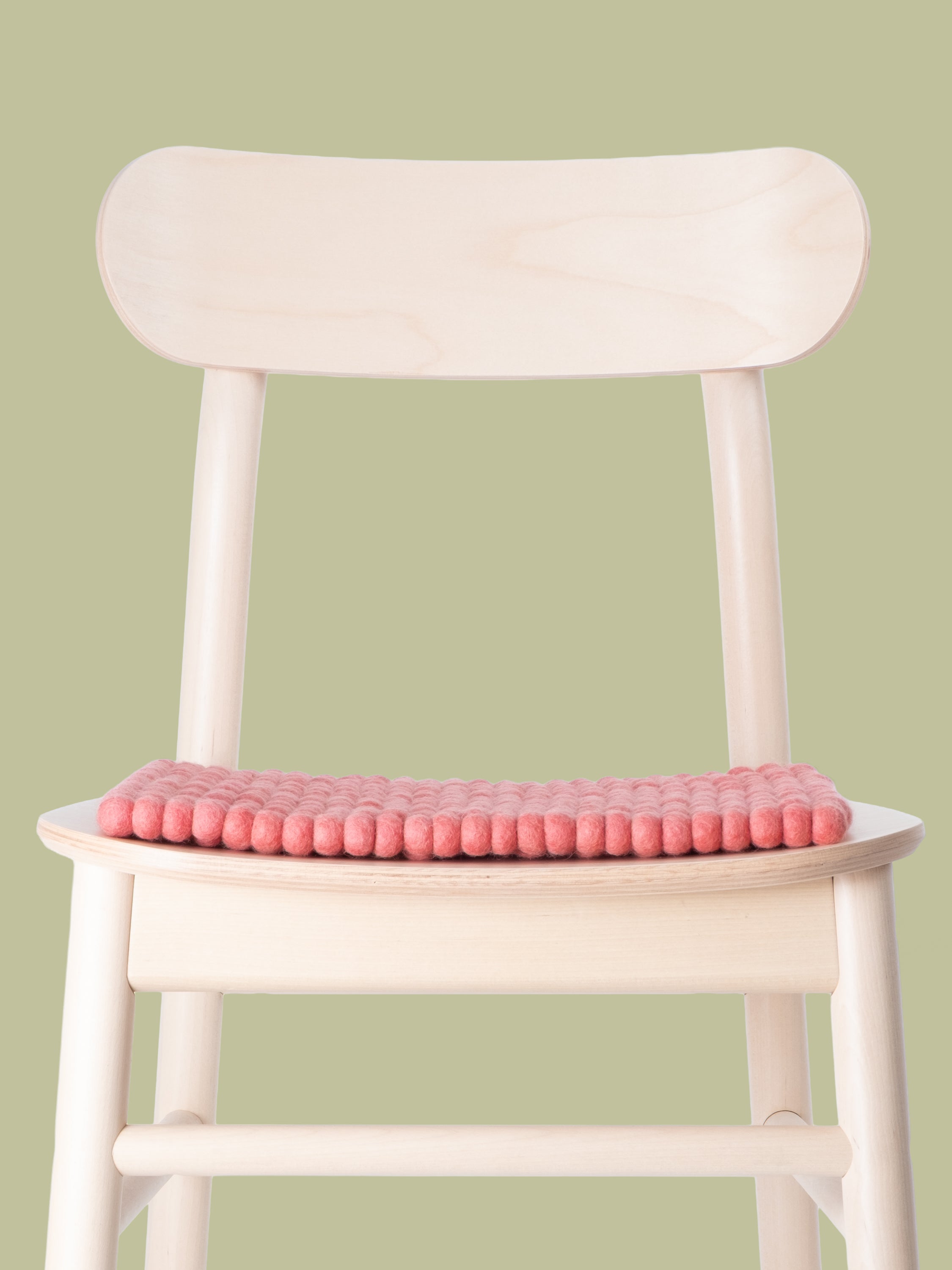 El cojín de asiento color coral Vera aporta calidez y suavidad a tu silla favorita. Fabricado con lana virgen pura, hecho a mano en Nepal y producido en condiciones justas. Los cojines de asiento myfelt son repelentes al agua y la suciedad y se pueden utilizar por ambos lados.