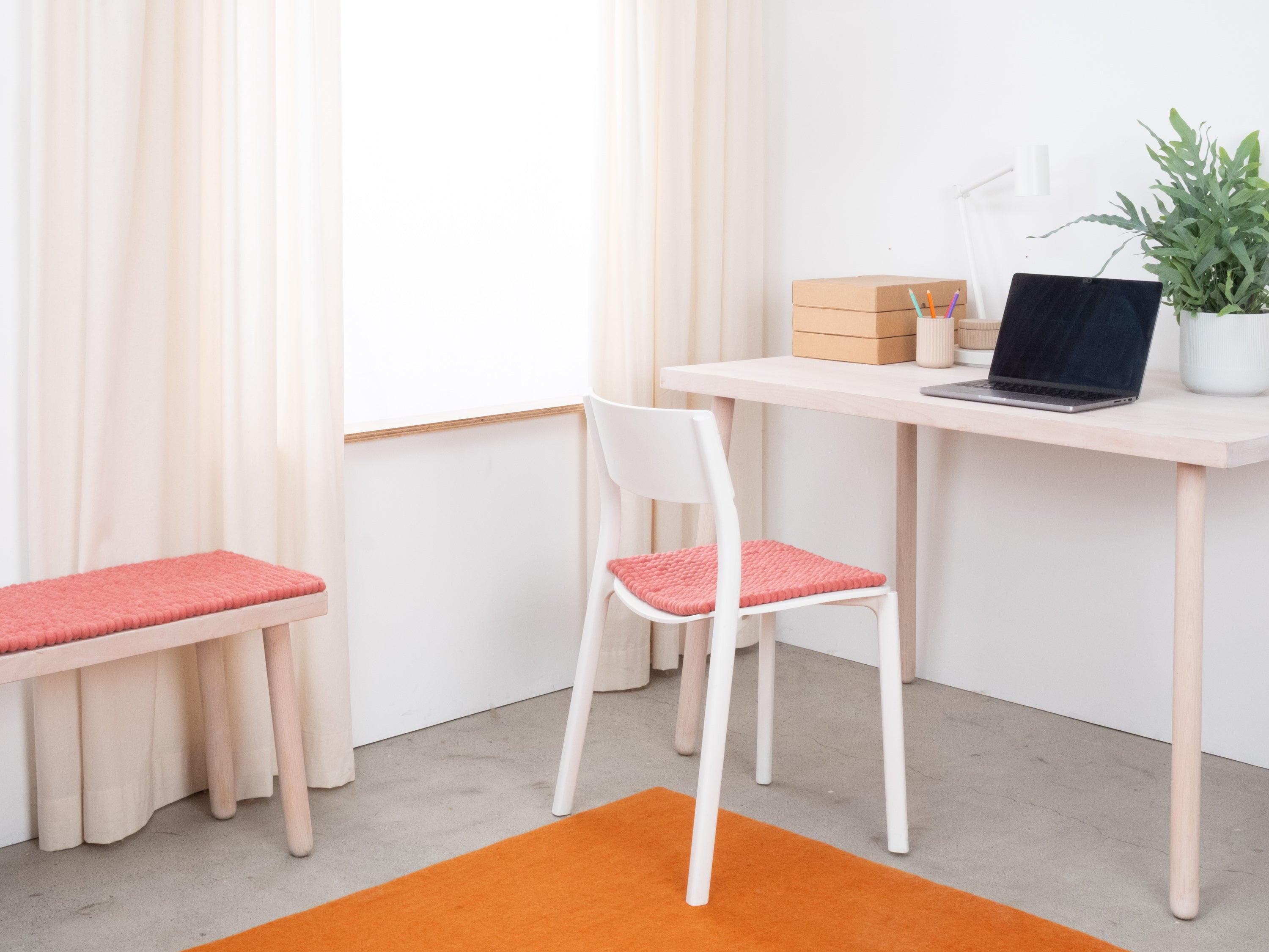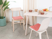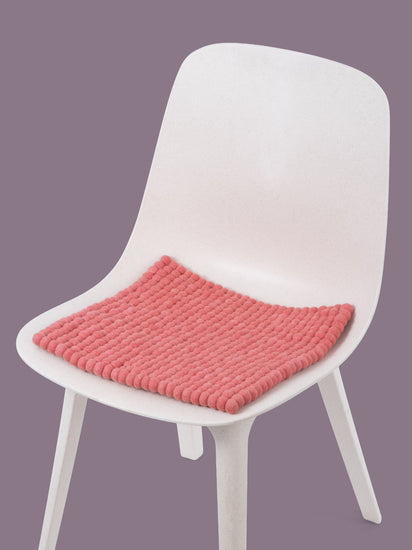 Cuadrado, cojín de asiento color coral de lana virgen pura.