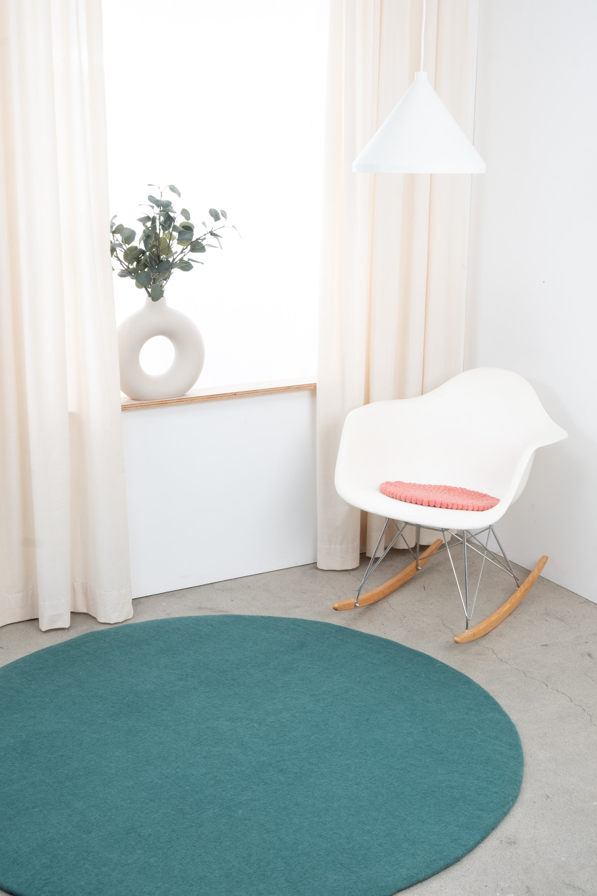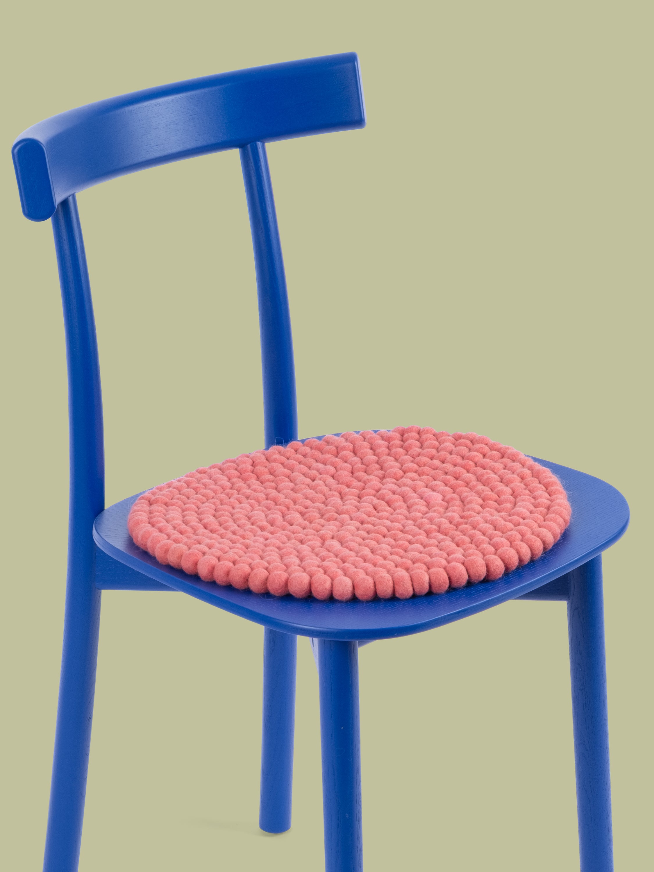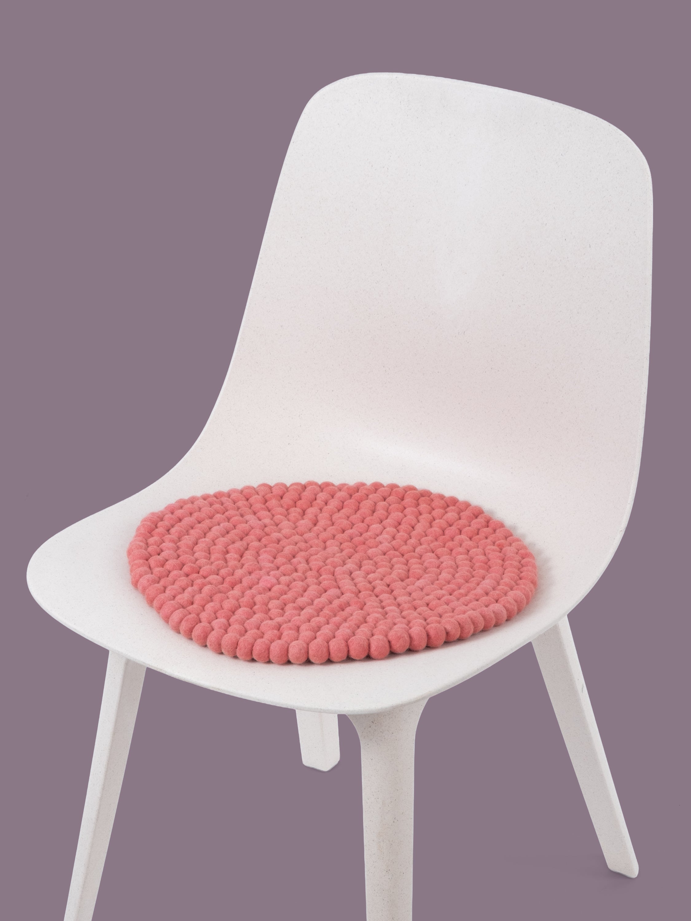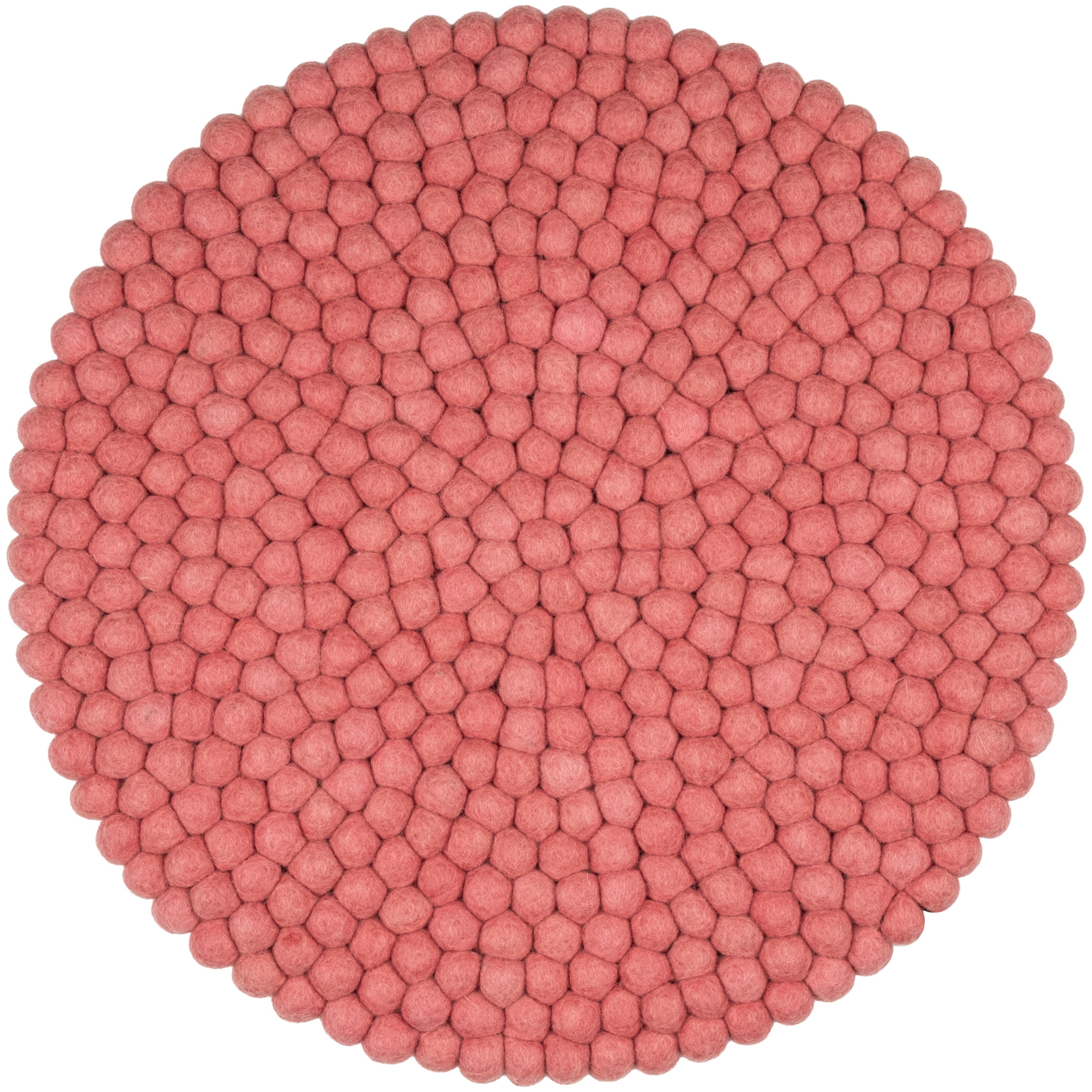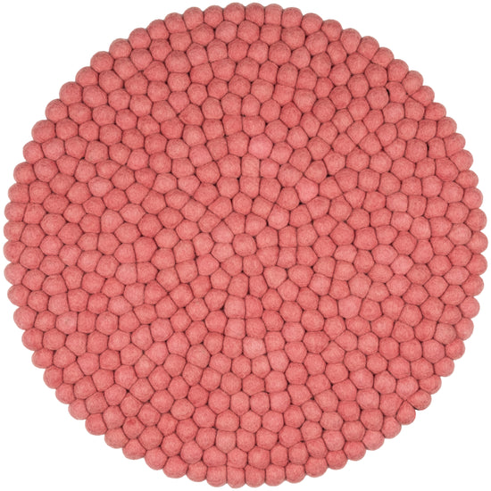 Redondo, cojín de asiento color coral de lana virgen pura.