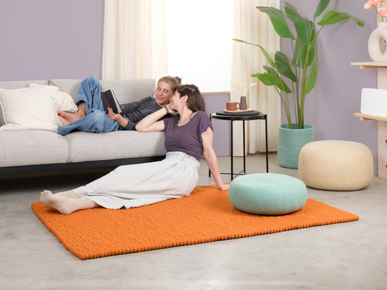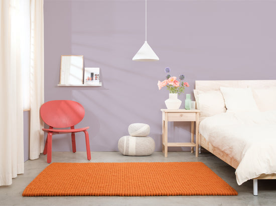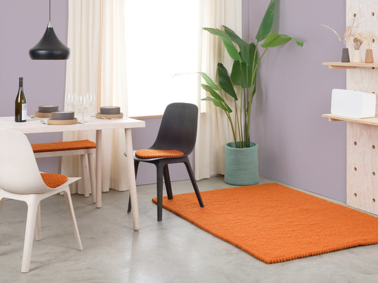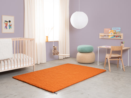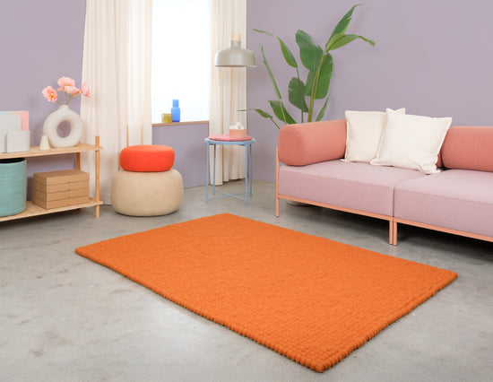 Afra introduce un naranja cálido en la estancia. Acogedora y llena de energía sin resultar estridente. Perfecta para calentar espacios fríos o añadir acentos. Robusta, fácil de cuidar y agradable al pisar. Hecha a mano en Nepal – 100 % lana virgen.