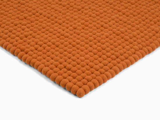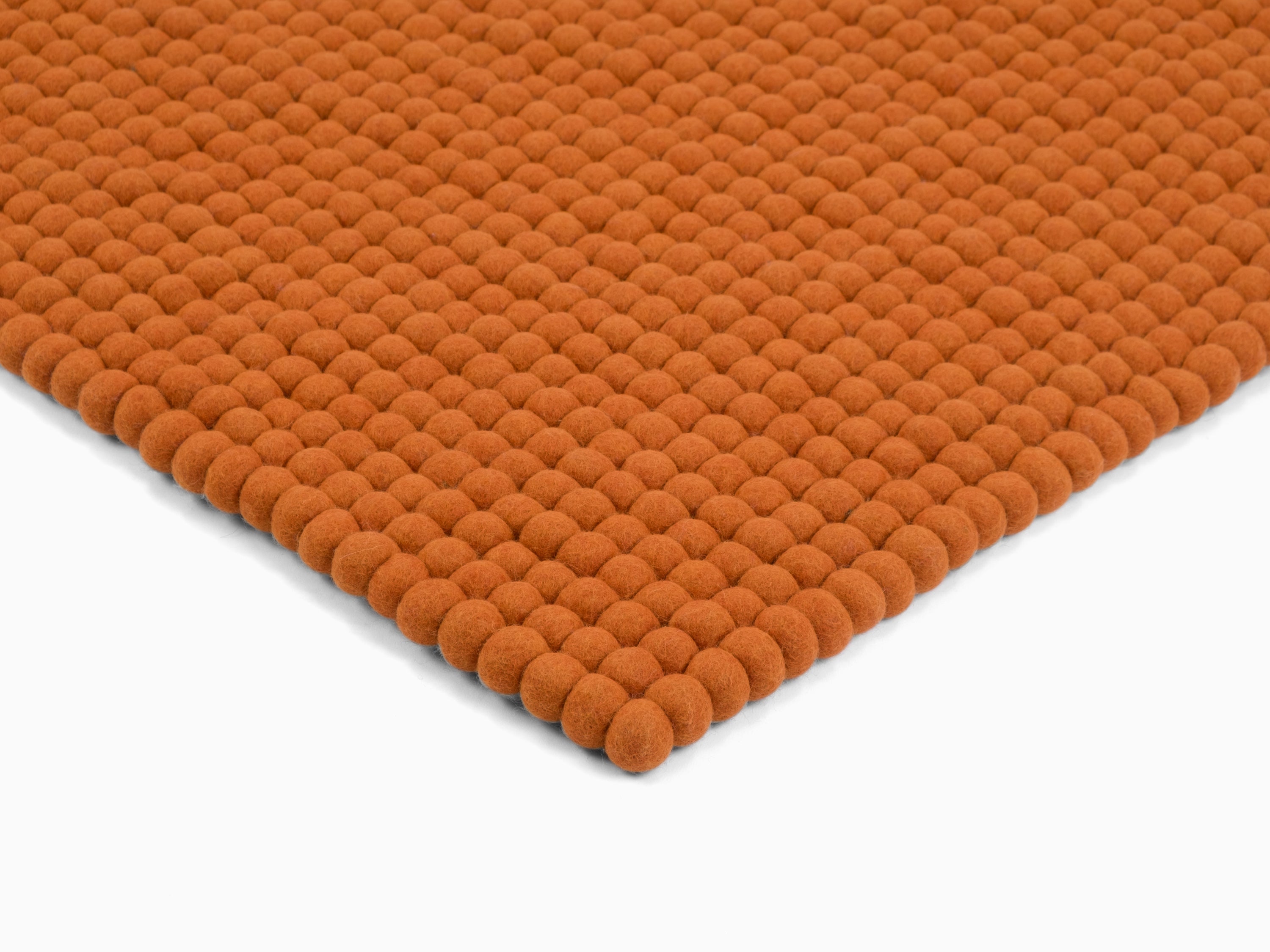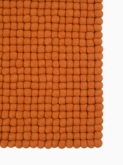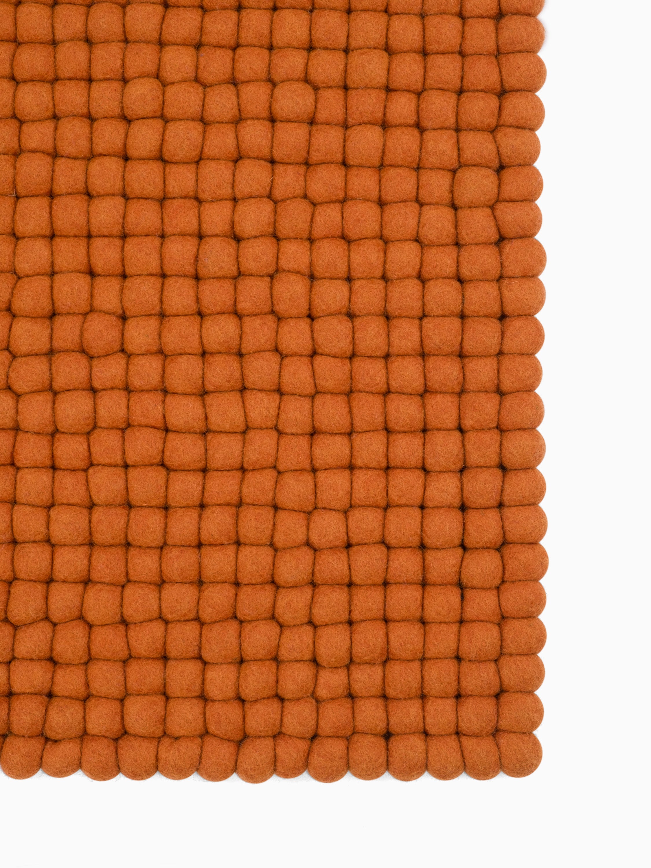 Alfombra de bolas de fieltro rectangular, hecha de pura lana virgen.