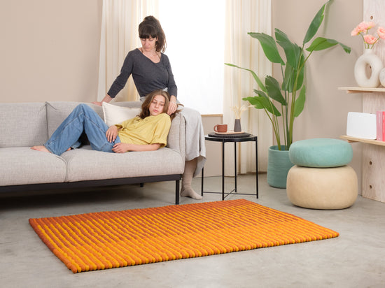 Naranja dorado. Ámbar. Un toque de brillo. Dawn es el primer rayo de luz sobre tierra cálida. Una alfombra que ilumina los espacios. Para quienes tienen los pies en la tierra, pero la cabeza mirando al sol.