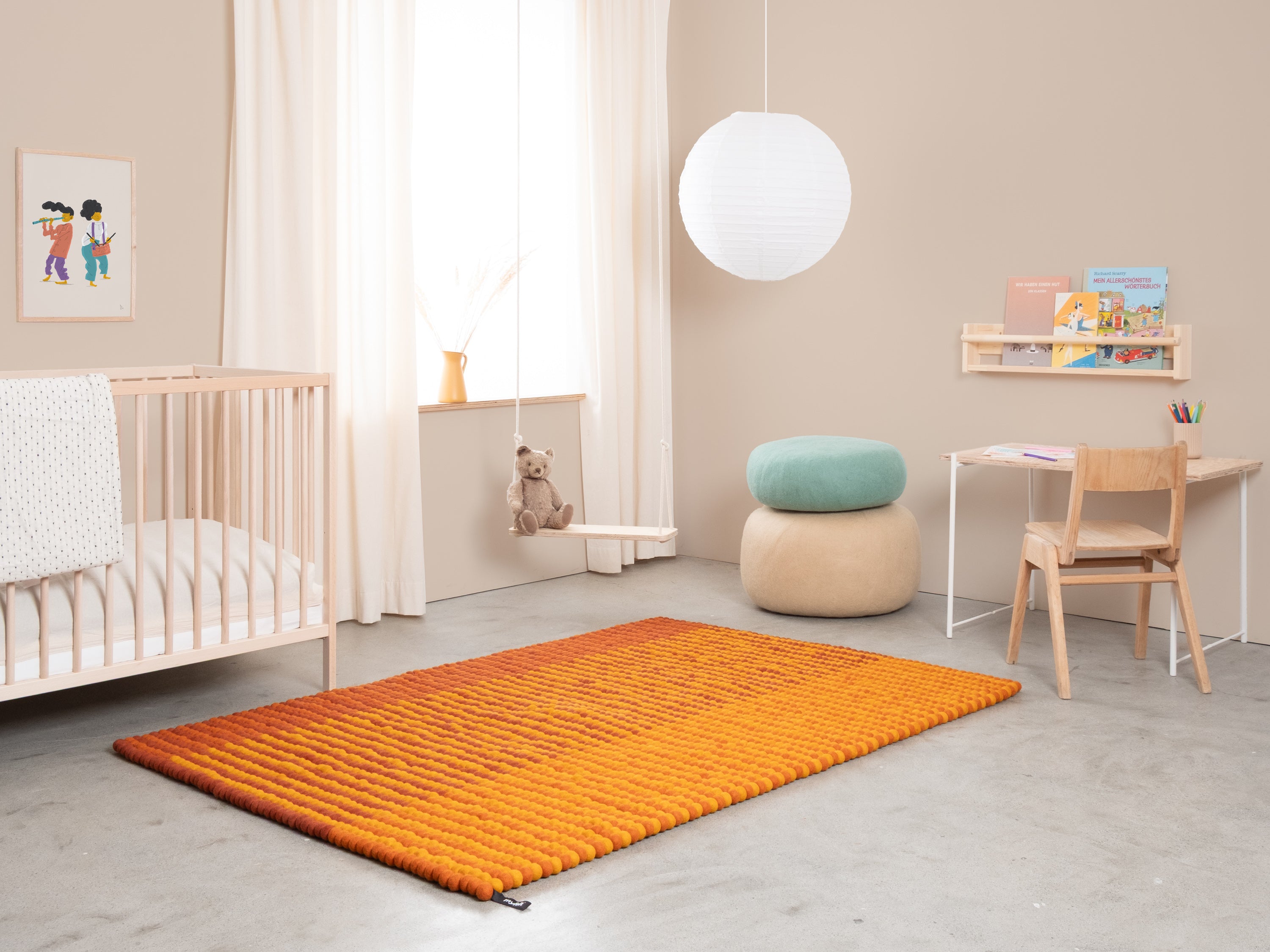 Alfombra de bolas de fieltro