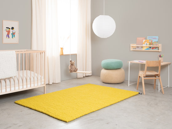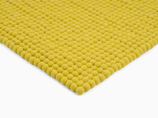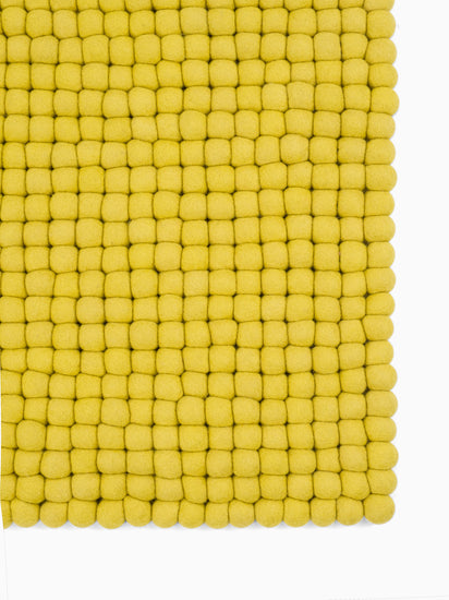 Alfombra rectangular de bolas de fieltro, hecha de pura lana virgen.