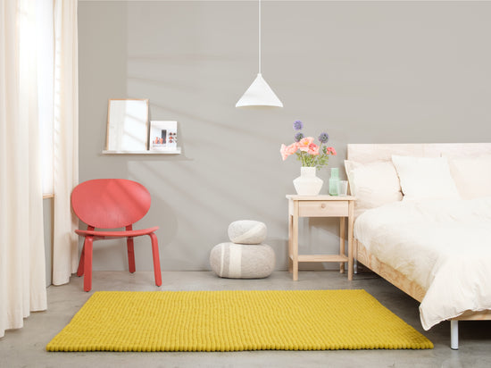 Kata es una alfombra de bolas de fieltro en un fresco verde amarillento. Brillante, vital y llena de energía, aporta movimiento a la habitación. Ya sea como acento alegre en la sala de estar o como punto de luz en el espacio de trabajo. Kata aporta vitalidad y ligereza. Suave, resistente y fácil de mantener. Hecha a mano en Nepal con 100 % pura lana virgen.