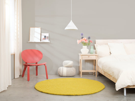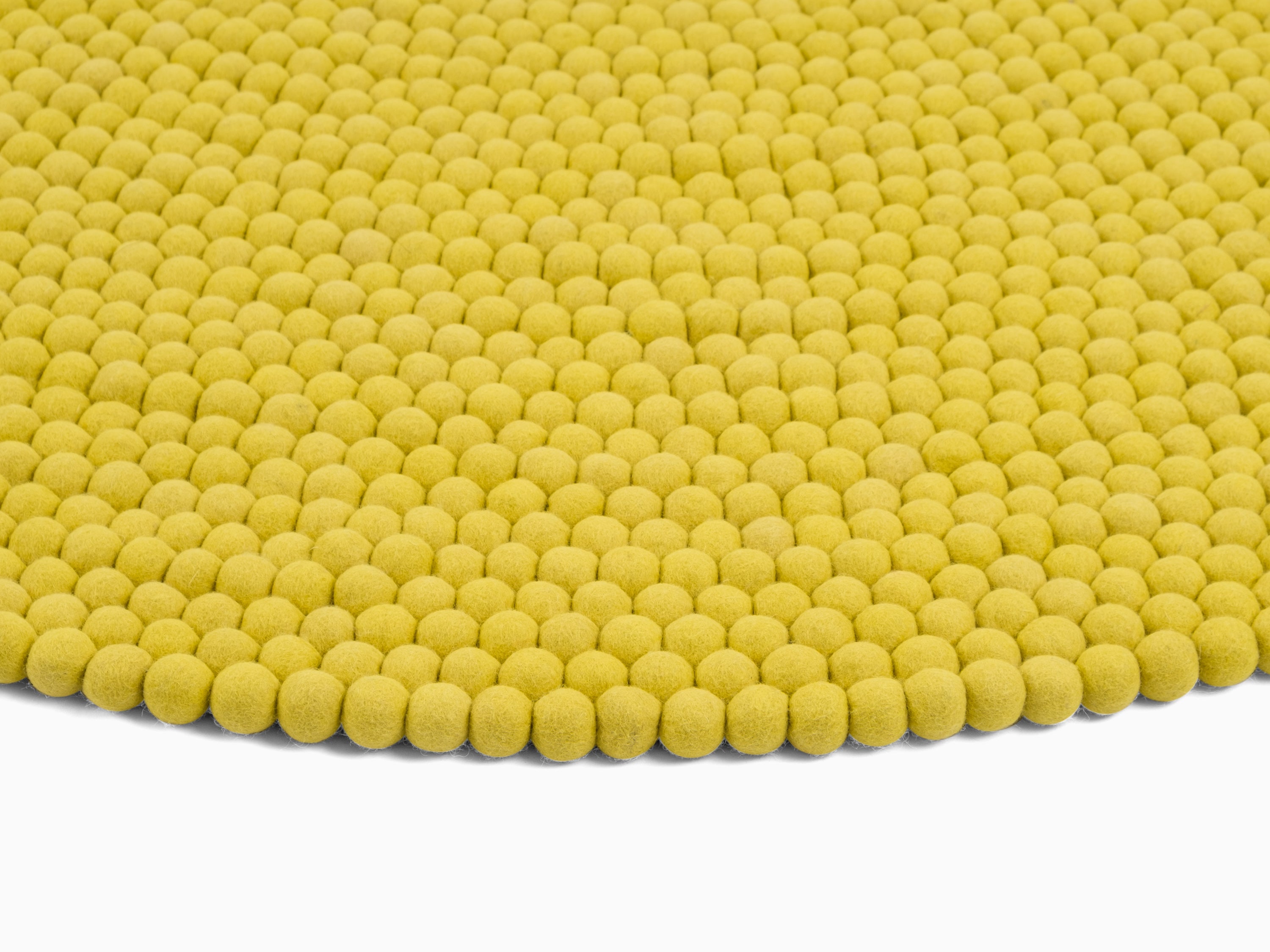 Kata es una alfombra de bolas de fieltro en un fresco verde amarillento. Brillante, vital y llena de energía, aporta movimiento a la habitación. Ya sea como acento alegre en la sala de estar o como punto de luz en el área de trabajo. Kata aporta vitalidad y ligereza. Suave, resistente y fácil de mantener. Hecha a mano en Nepal con 100 % pura lana virgen.